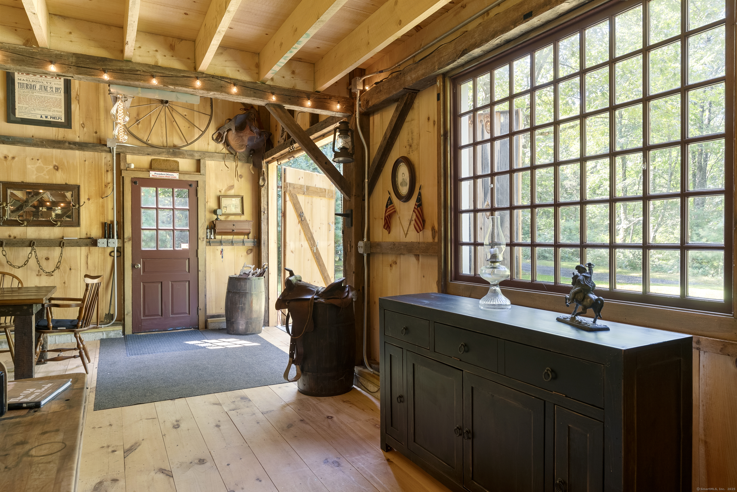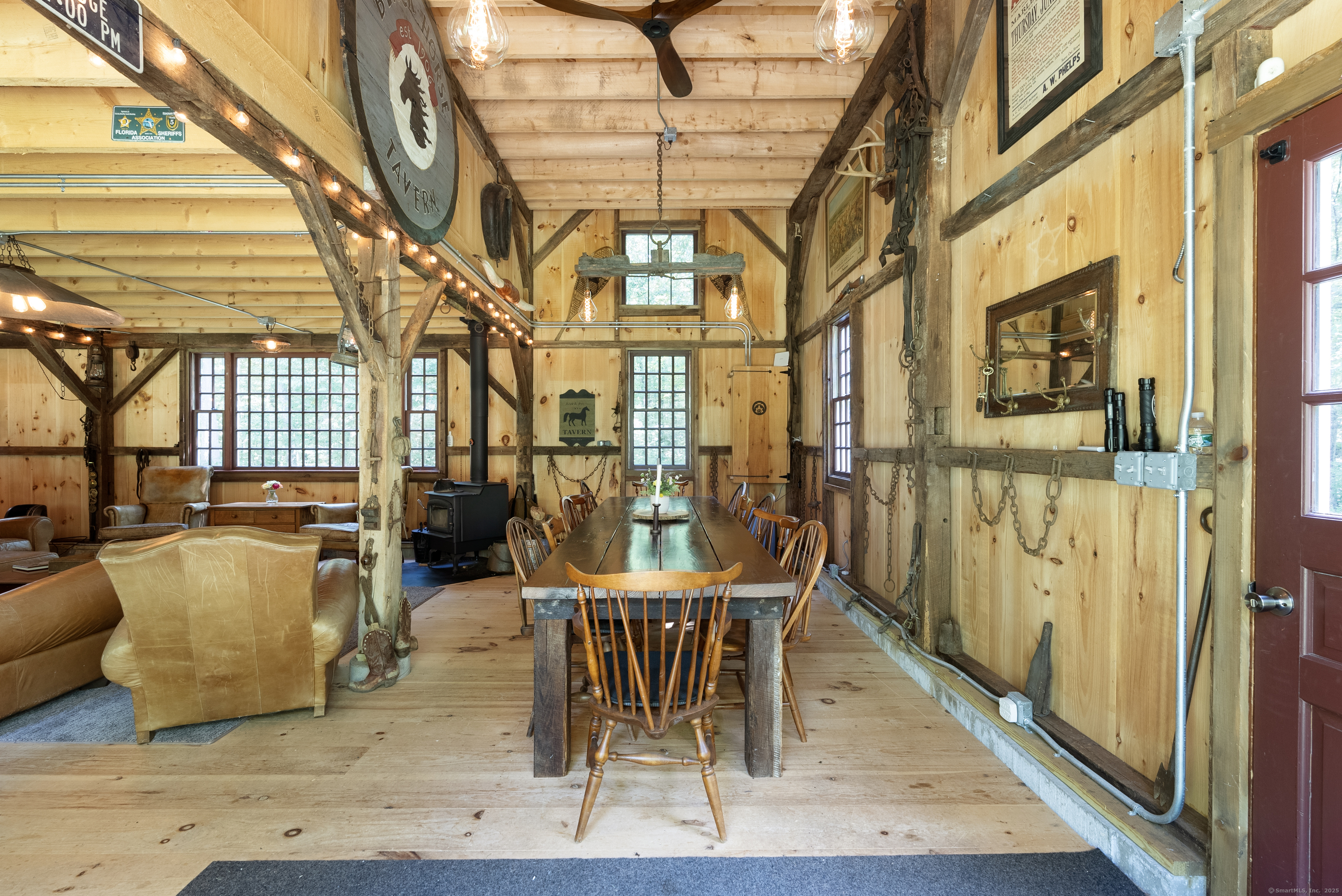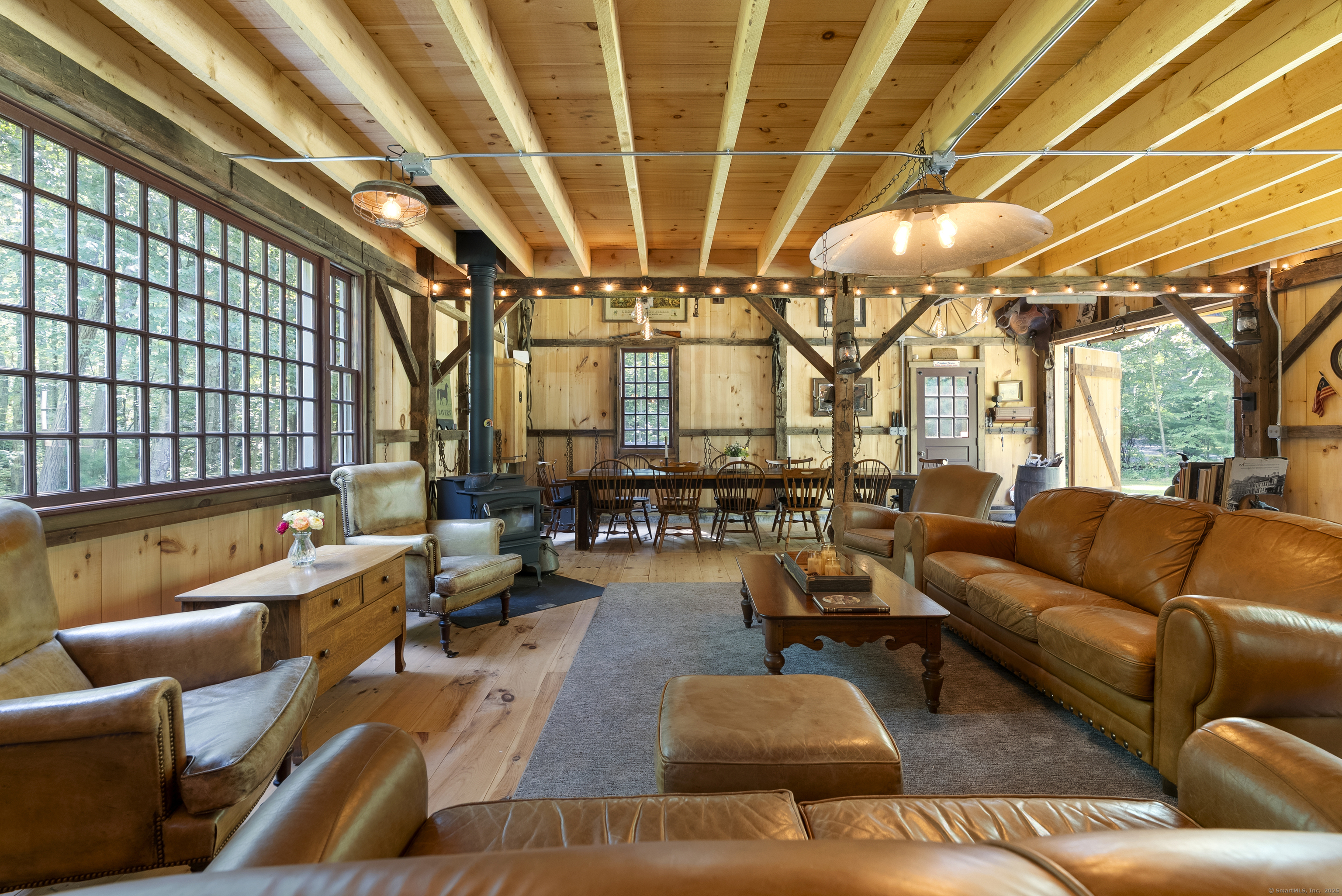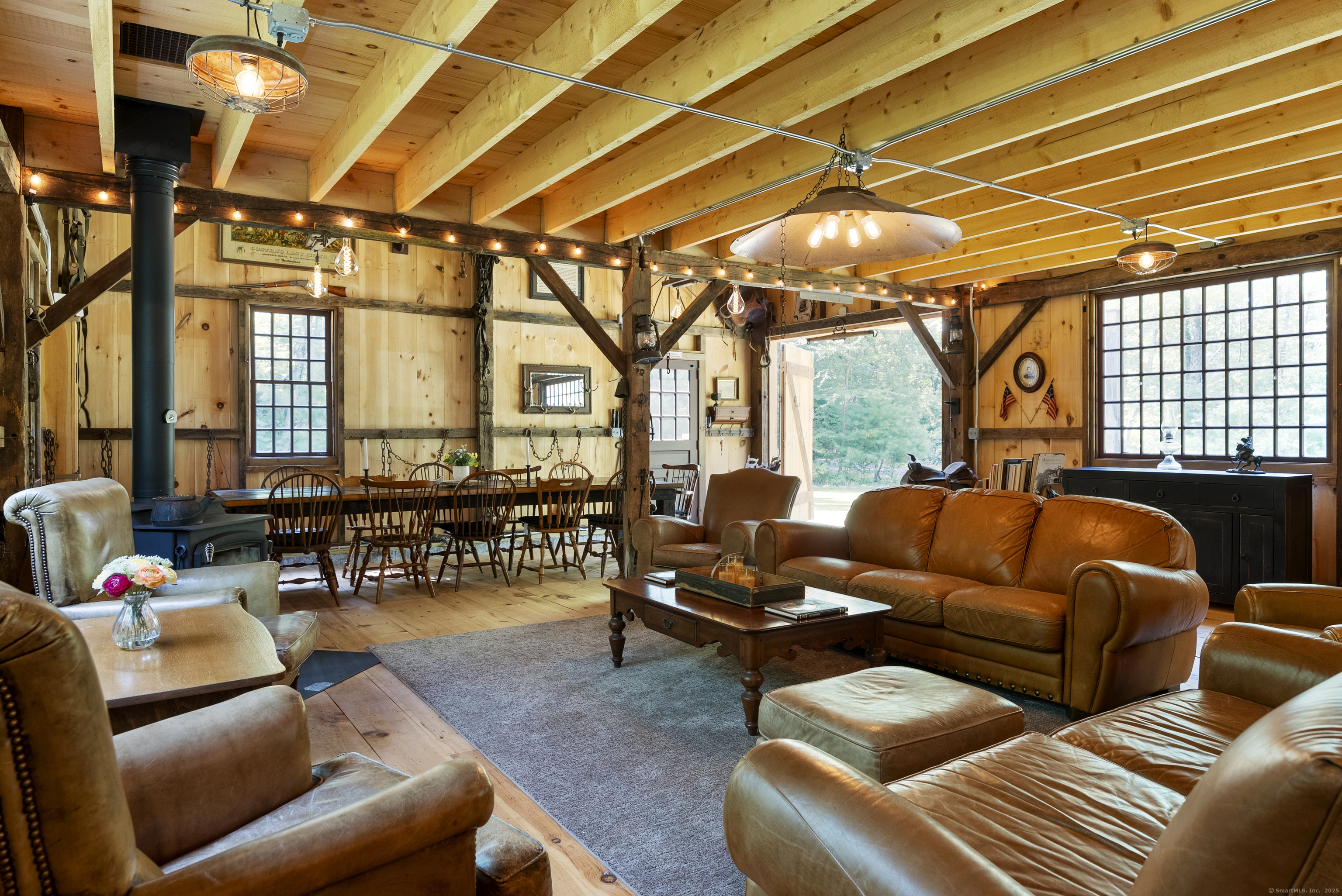 A rare chance to claim your own private sanctuary in Colchester. Set on over 23 acres and bordered by more than 85 acres of preserved town and state land, this remarkable property offers unmatched privacy and a deep connection to nature. Nearly two miles of groomed trails wind through the grounds, ideal for biking, hiking, and exploring, alongside a fishing pond, brook, and natural waterfall. A dedicated shooting range with berm and a stunning antique post-and-beam barn elevate the retreat into something truly extraordinary. Originally built around 1880 as a 30x24 carriage shed, the barn has been thoughtfully repurposed and modernized while honoring its heritage. The restoration preserved original oak and chestnut beams with mortise-and-tenon joinery, seamlessly blending them with today's design and construction. Over two years were devoted to bringing this vision to life, including curated antiques that remain with the property. Conceived as a timeless family gathering place, the retreat embodies enduring charm and effortless seclusion. Whether hosting friends, enjoying the trails, or simply unwinding in complete privacy, this one-of-a-kind estate invites you to create lasting memories in a setting like no other.