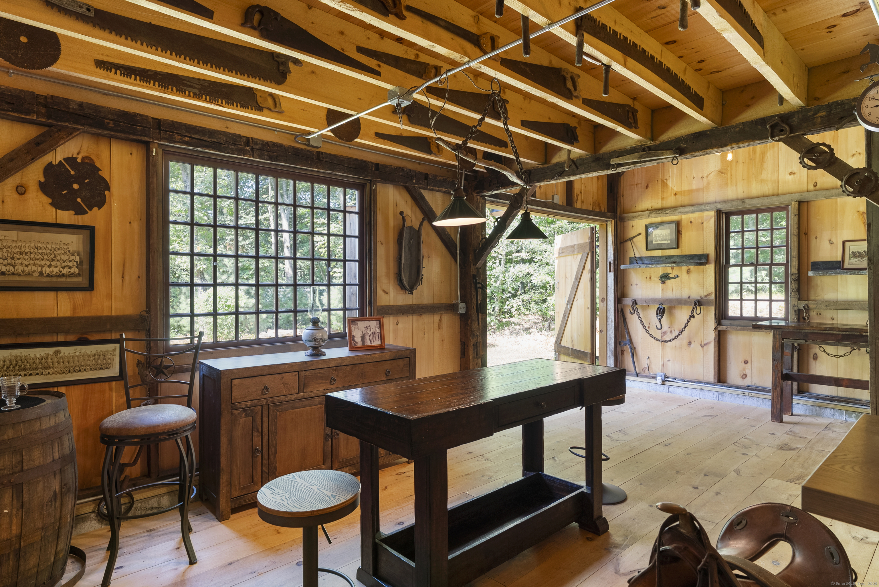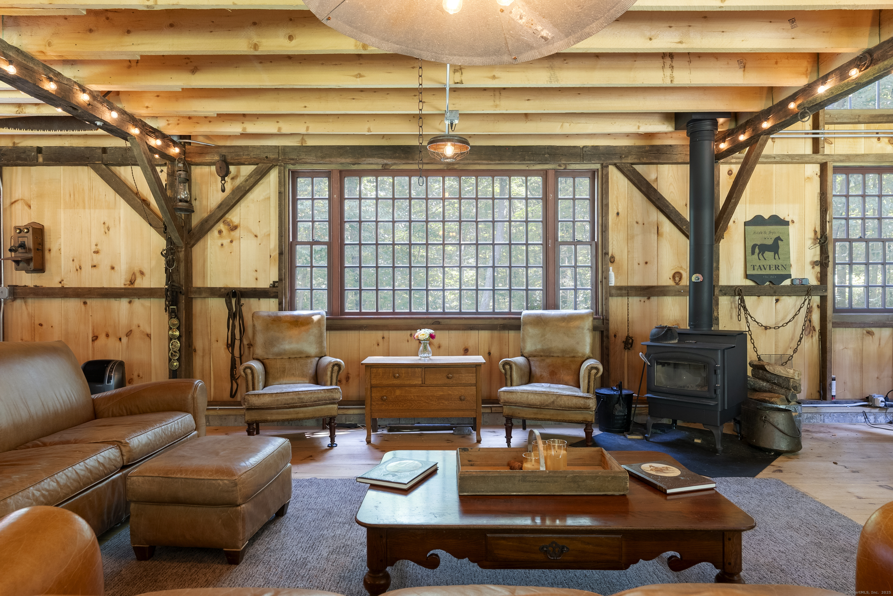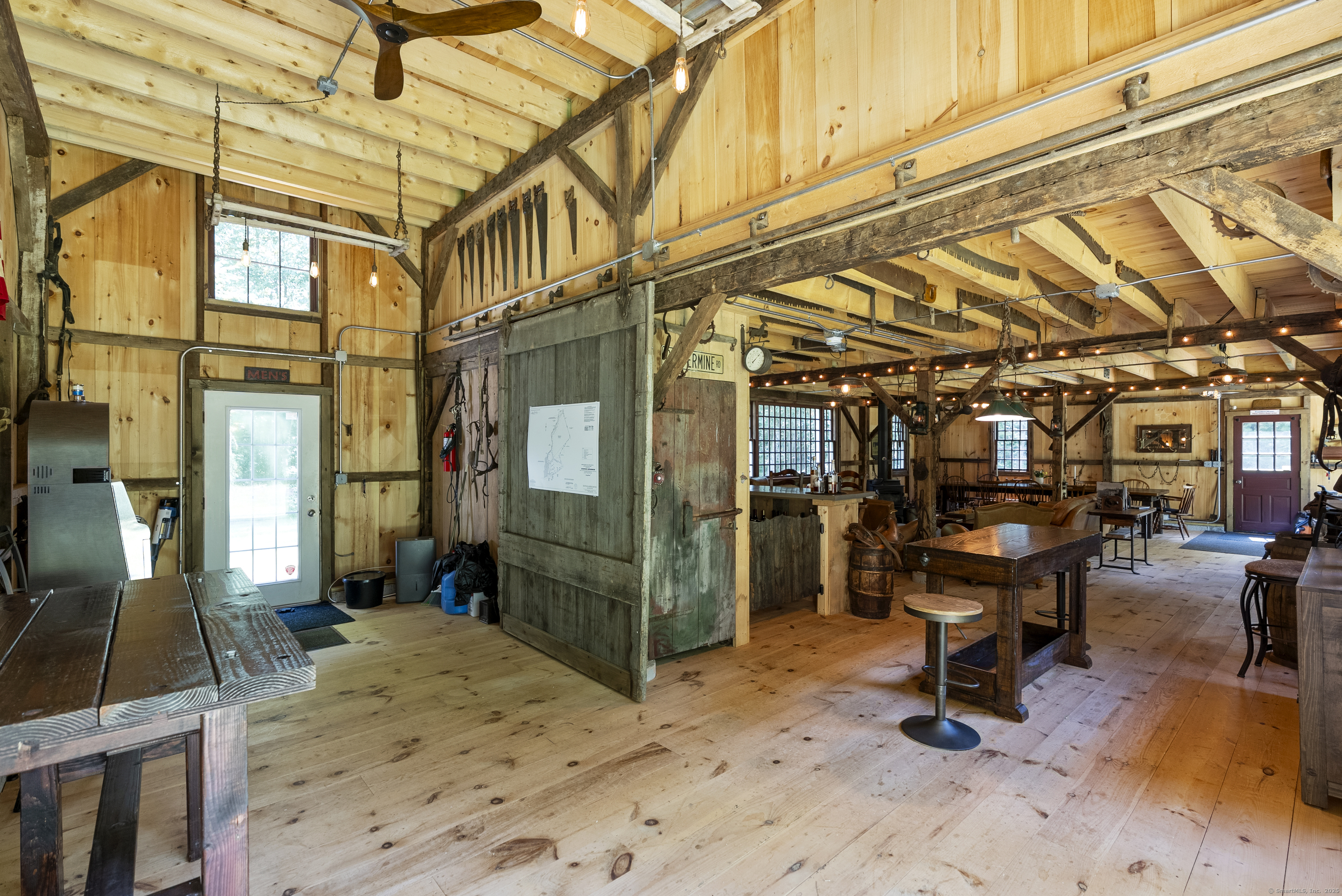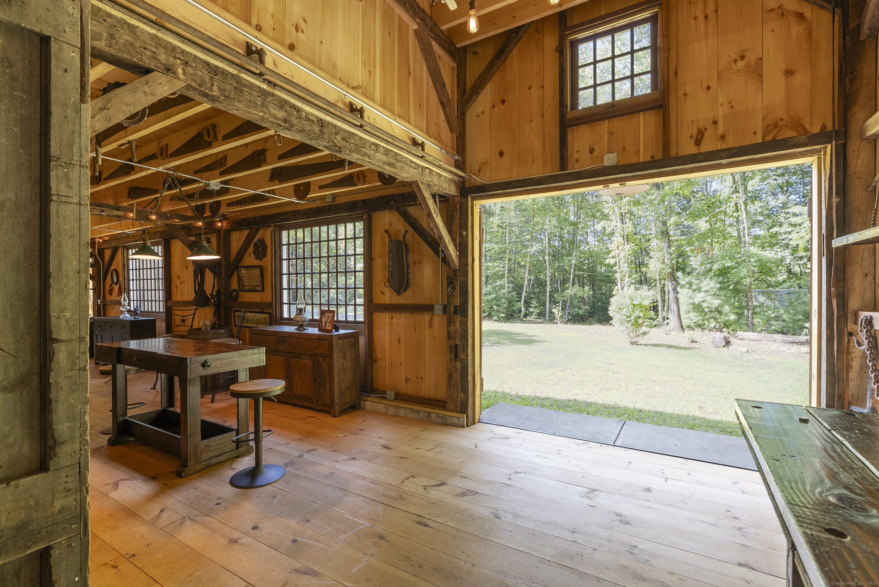 A rare chance to claim your own private sanctuary in Colchester. Set on over 23 acres and bordered by more than 85 acres of preserved town and state land, this remarkable property offers unmatched privacy and a deep connection to nature. Nearly two miles of groomed trails wind through the grounds, ideal for biking, hiking, and exploring, alongside a fishing pond, brook, and natural waterfall. A dedicated shooting range with berm and a stunning antique post-and-beam barn elevate the retreat into something truly extraordinary. Originally built around 1880 as a 30x24 carriage shed, the barn has been thoughtfully repurposed and modernized while honoring its heritage. The restoration preserved original oak and chestnut beams with mortise-and-tenon joinery, seamlessly blending them with today's design and construction. Over two years were devoted to bringing this vision to life, including curated antiques that remain with the property. Conceived as a timeless family gathering place, the retreat embodies enduring charm and effortless seclusion. Whether hosting friends, enjoying the trails, or simply unwinding in complete privacy, this one-of-a-kind estate invites you to create lasting memories in a setting like no other.