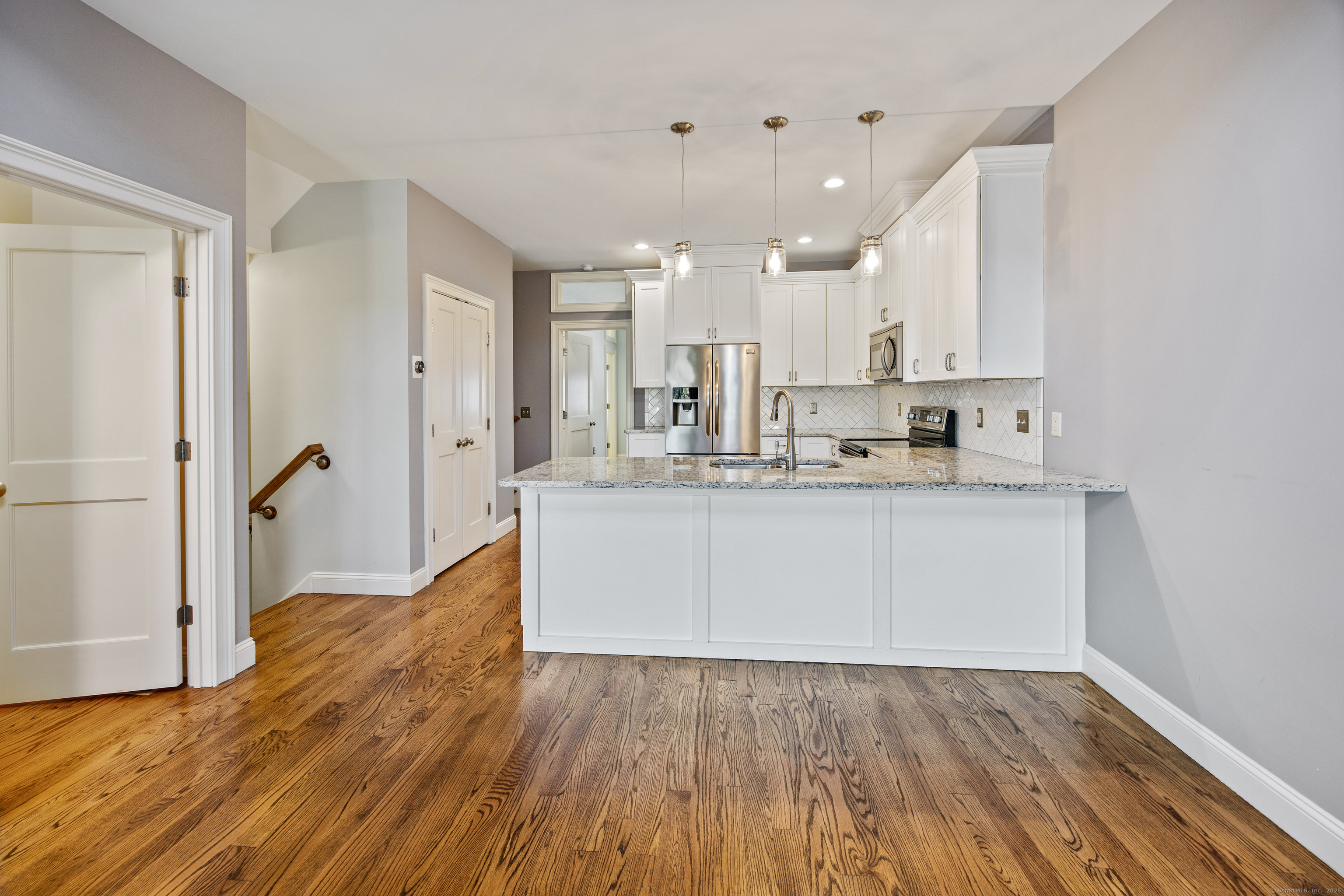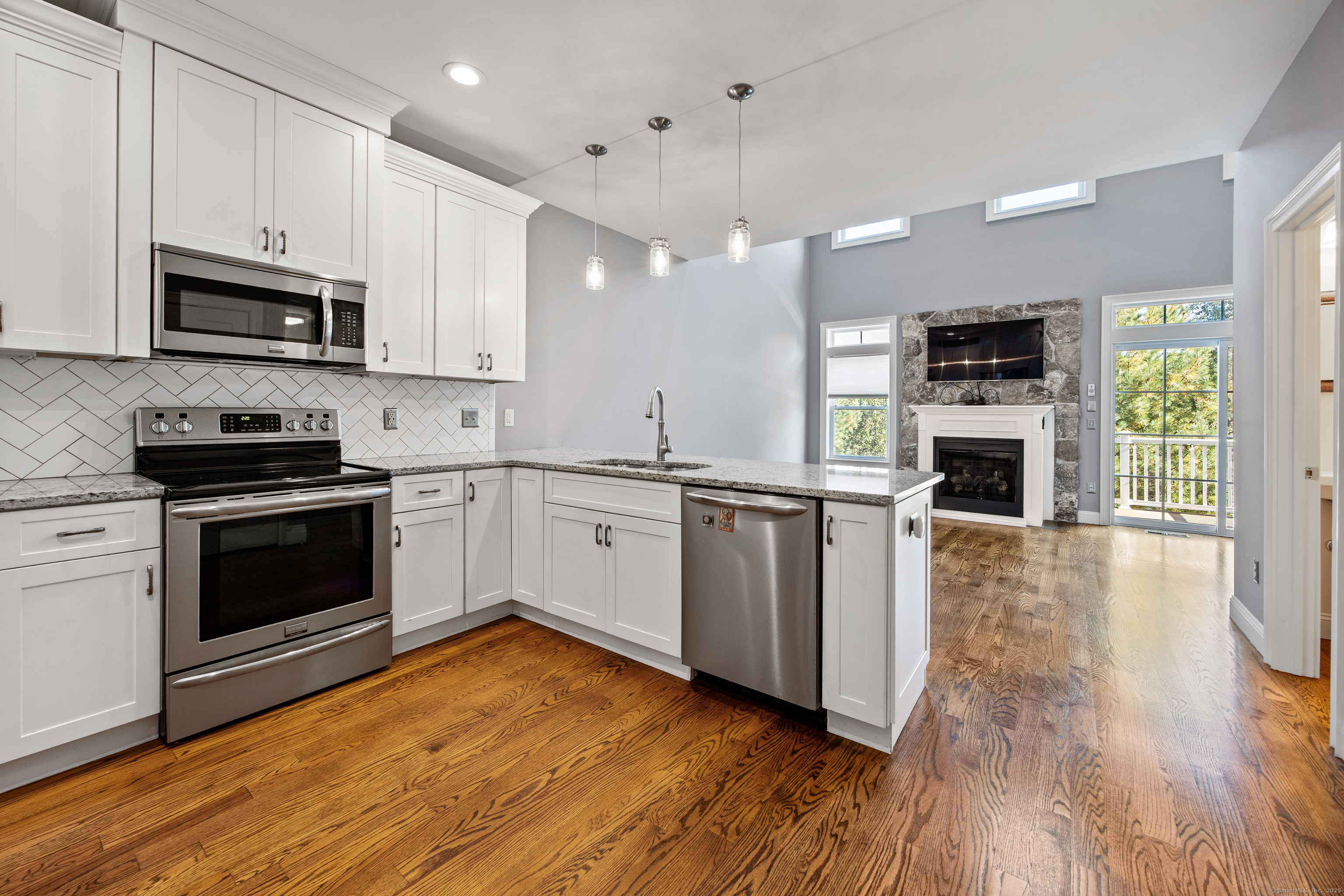 This condo checks EVERY box! 3 Village Xing is a sun-filled townhome that greets you with a stunning open layout, where gleaming hardwood floors flow seamlessly through the spacious living and dining areas. The heart of the home is a bright, updated kitchen featuring granite countertops, stainless steel appliances, and a premium induction stovetop, perfect for the home chef. A custom gourmet pantry provides an abundance of organized storage, making both entertaining and everyday living effortless. The living room is a true showstopper, centered around a cozy fireplace with a gorgeous stone accent wall, creating an inviting and warm ambiance. Upstairs, the generously sized bedroom feels like a private retreat. The primary suite boasts a custom-designed California closet for unparalleled organization, as well as a heated bathroom floor for year-round comfort. Beyond the main living space, this home offers incredible versatility. A dedicated flex space on the lower level provides a quiet, versatile area for working from home, a gym, or an additional living room. Additional features include an upgraded HVAC system for year-round climate control and a full-size Electrolux washer/dryer, making laundry a breeze. Enjoy your morning coffee or evening breeze on the private deck, or take a stroll through this quiet, walkable neighborhood. The attached garage isn't just for parking; it offers extra storage space for all your belongings. Whether you're seeking a serene year-round or the