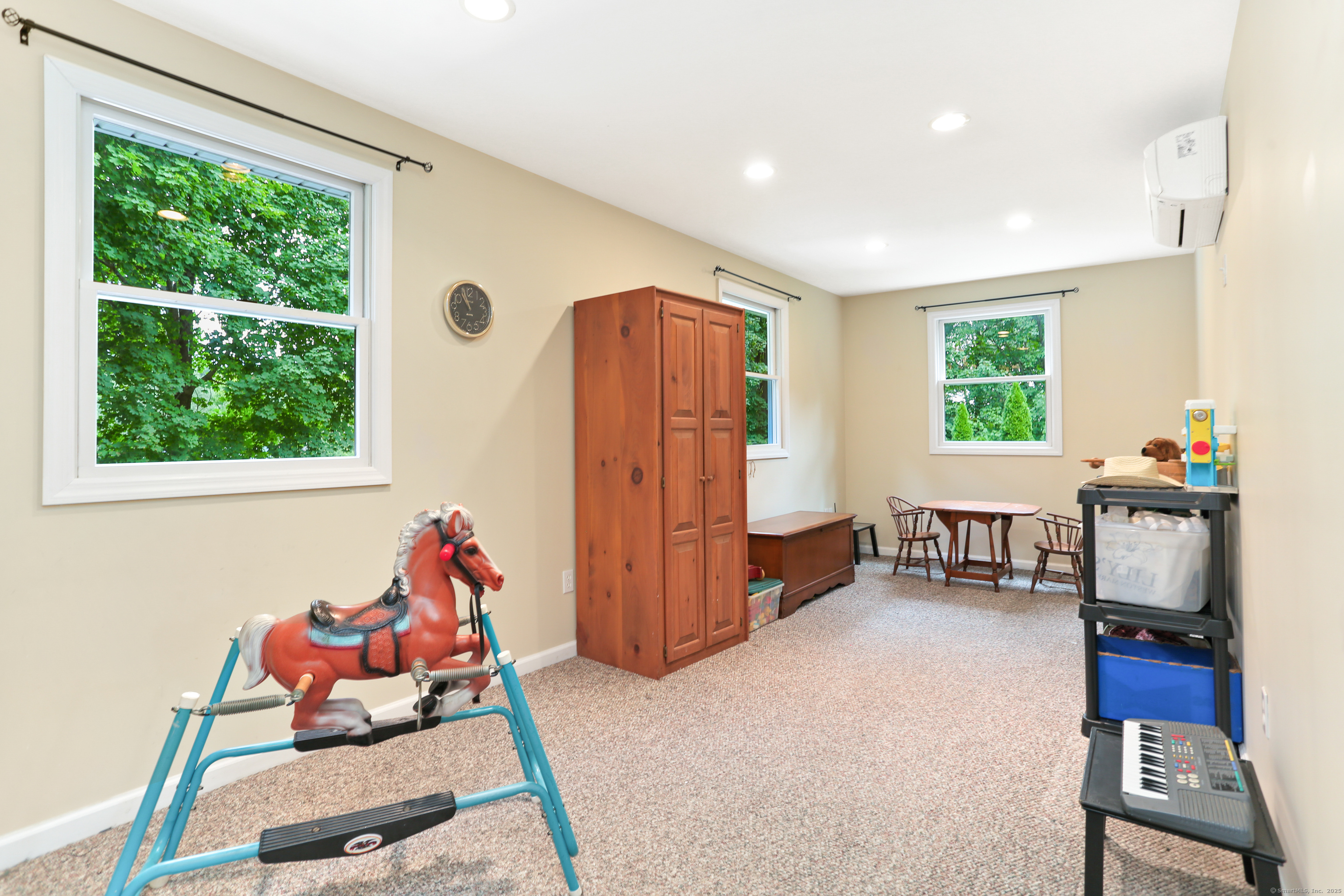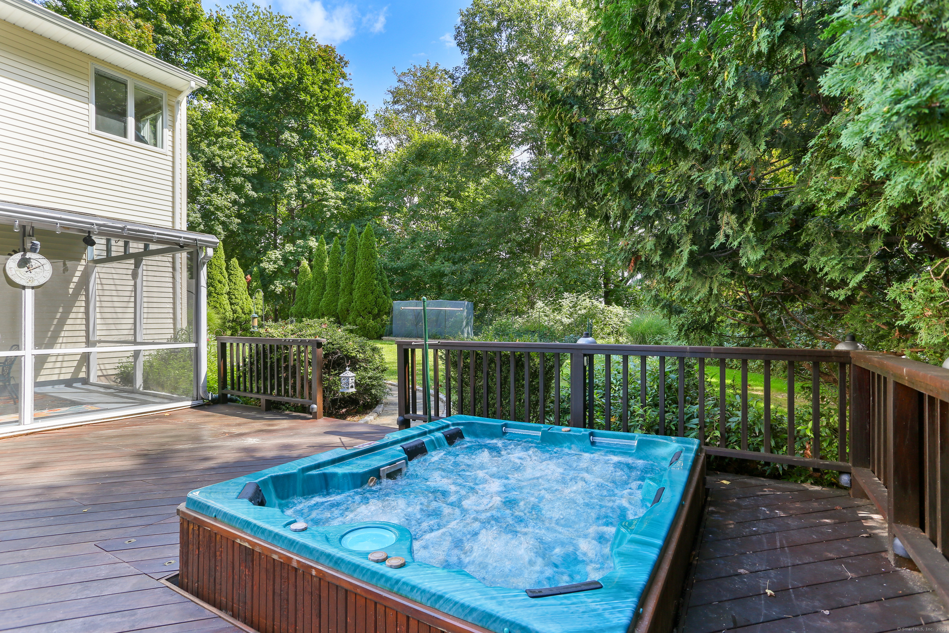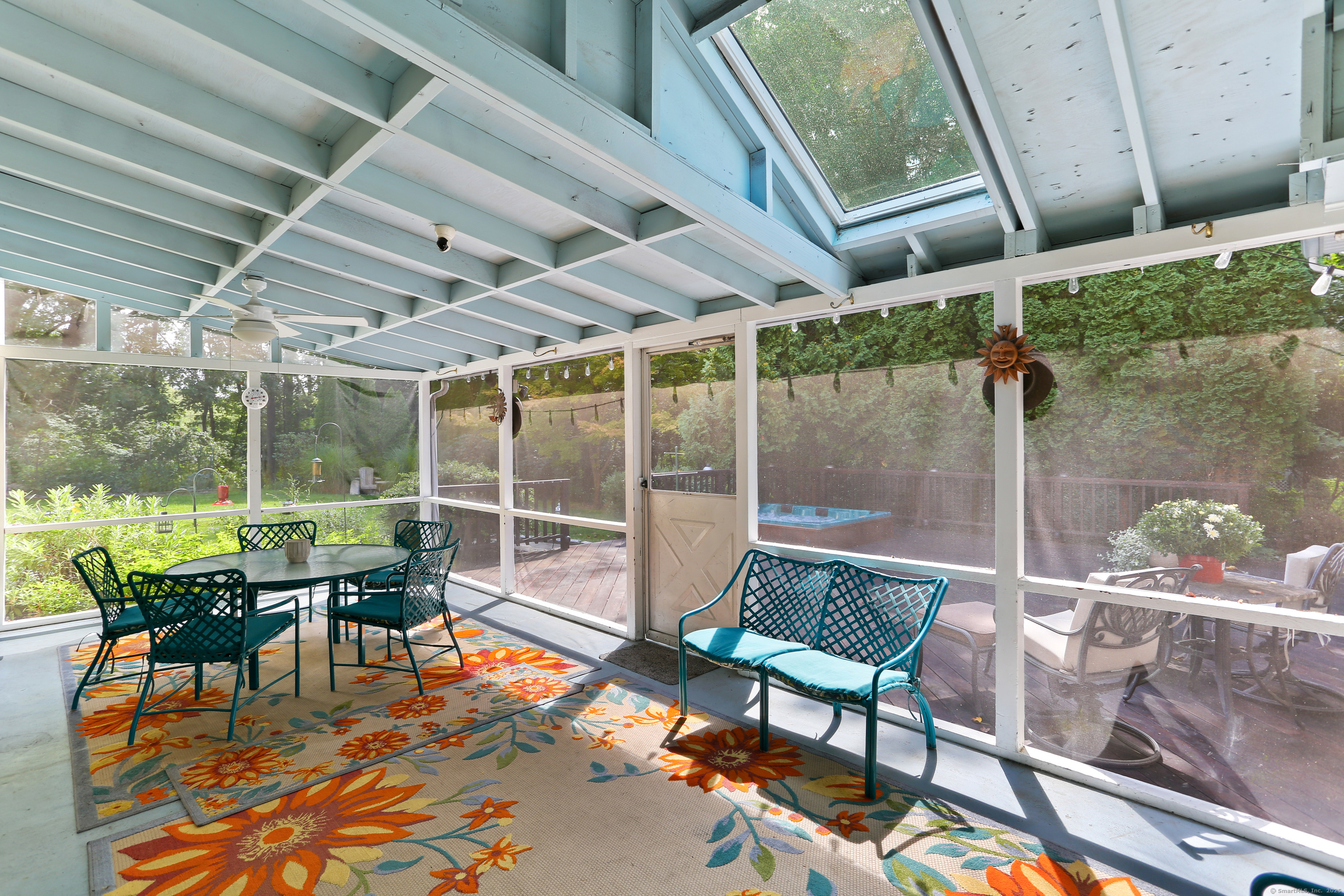 This beautiful ranch has been expanded with a second floor that includes an office space, a playroom and a huge (ready to finish) space that would make a great primary suite! With 2,126 sq ft of living space as well as an additional 1642 sq ft in the lower level there is plenty of room for everyone. Situated on 0.71 acres with lush landscaping and privacy screening trees, the property features an Outdoor Oasis with huge screened porch, teak deck and hot tub. The main floor includes the primary bedroom with private bath, two additional bedrooms with a large hall bathroom with double sinks, living room with oversized fireplace, dining room with charming original built ins, eat in kitchen and mud room. Hardwood floors throughout the main living areas create a warm and inviting atmosphere. The lower level provides additional recreation space with a second fireplace and ample room for games, lounging, workouts or storage. 2 exterior sheds (one with electricity, heat and a/c) complete the property. This impeccably maintained and versatile home is "move in ready" or can be customized to suit your lifestyle.