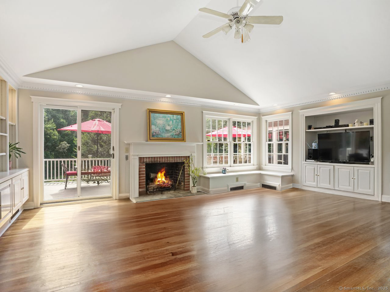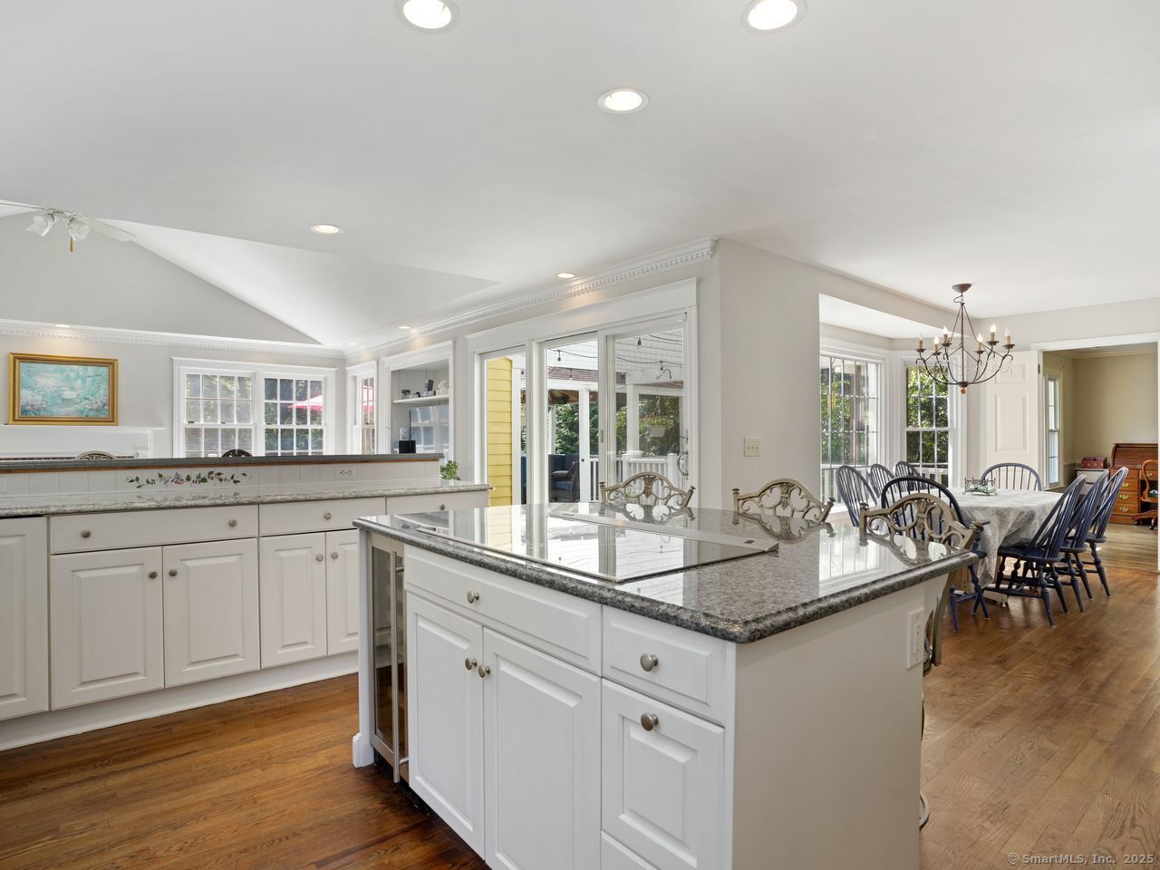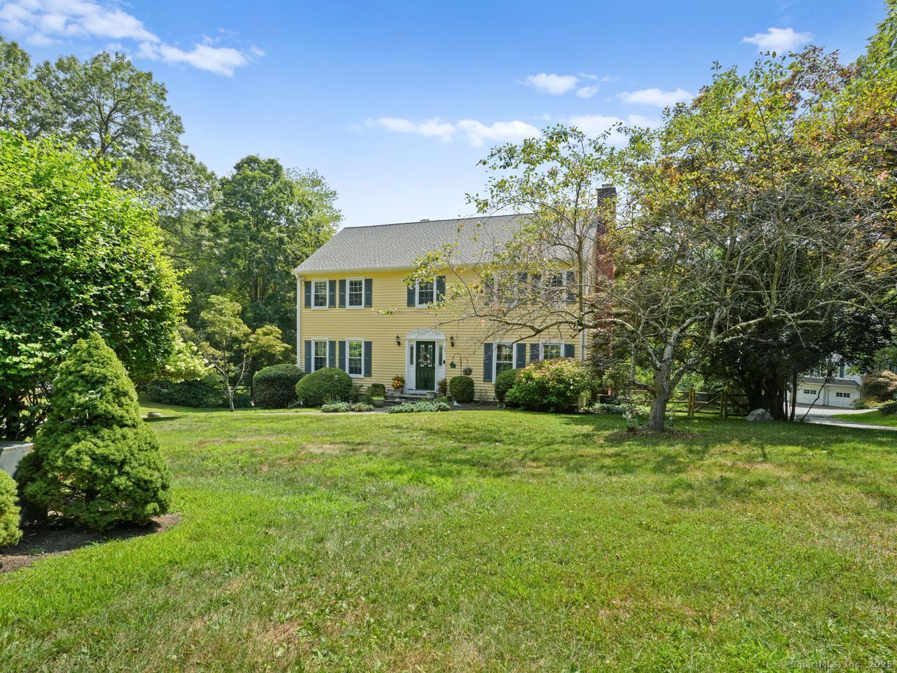 Storybook Saltbox Colonial in North Stamford Nestled on a quiet cul-de-sac, this enchanting 4-bedroom, 2.5-bath saltbox colonial blends timeless character with thoughtful updates. Lovingly maintained, the home welcomes you with formal living and dining rooms that flow seamlessly into a beautifully remodeled kitchen featuring a granite island, stainless steel appliances, and a cozy family room with soaring cathedral ceilings. French doors open to an expansive wraparound deck overlooking a picturesque, level, fenced-in yard-ideal for entertaining or peaceful retreat on 1.65 Acres. Upstairs, you'll find four generously sized bedrooms, including a serene primary suite with cathedral ceilings, a full ensuite bath, and tranquil views of the lush backyard. The full basement offers flexible storage space and access to a rare 4-car-plus garage. With a brand-new roof, central A/C, and a location that combines privacy with convenience, this home truly checks every box.