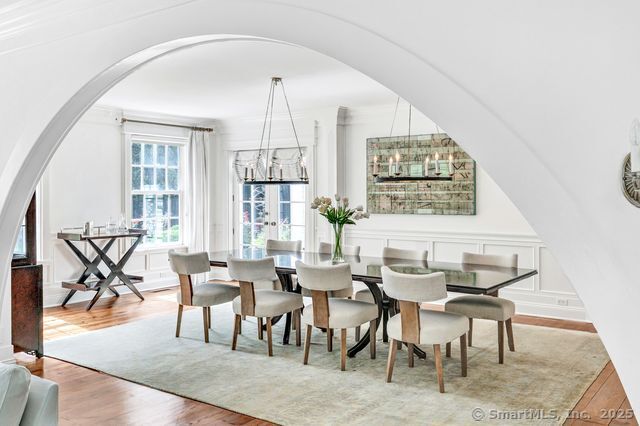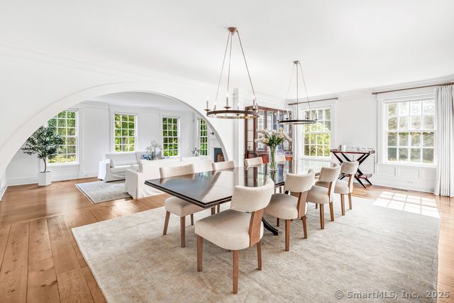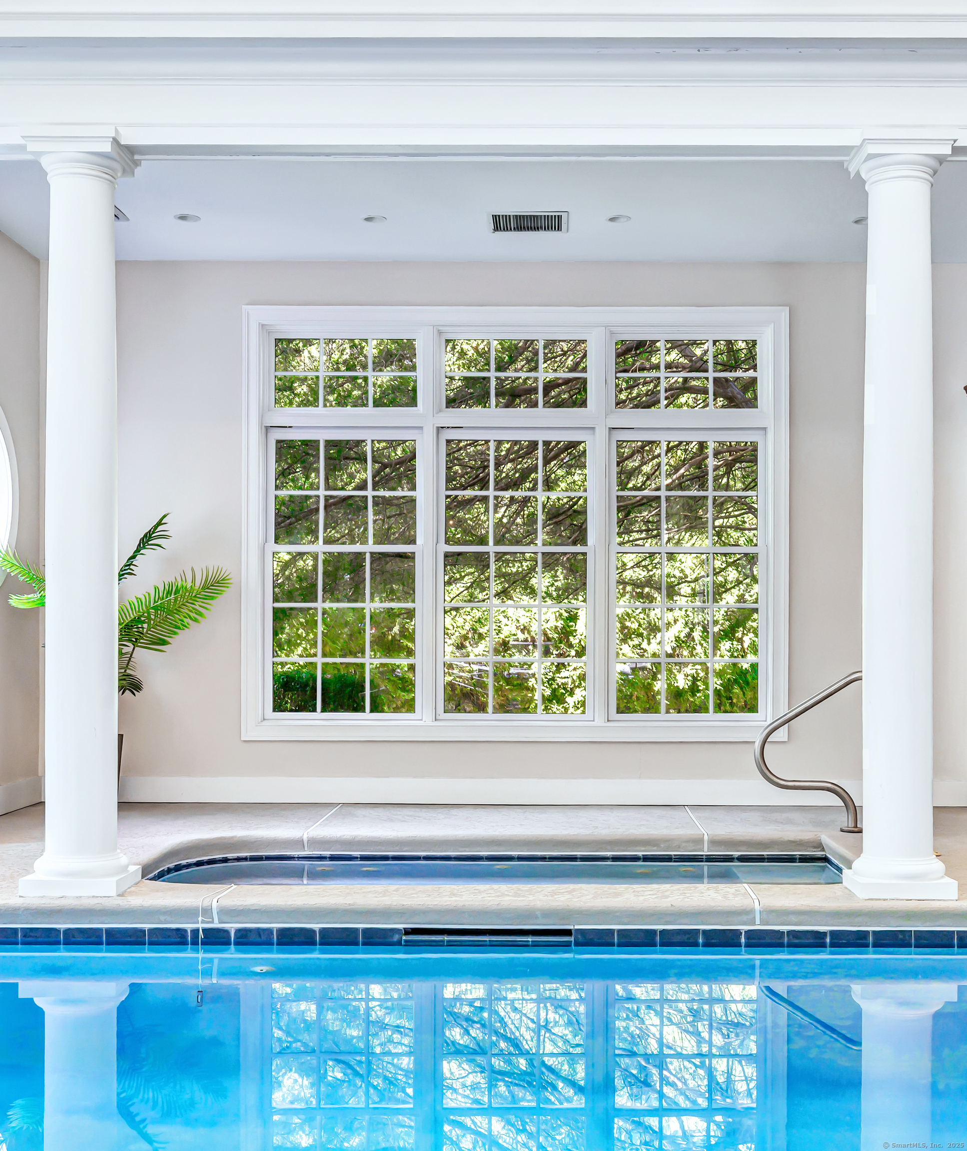 Welcome to 111 Sturges Highway, the pinnacle of refined elegance and timeless design. A circular drive framed by majestic stone walls sets a distinguished tone upon arrival, while a second driveway provides access from a coveted quiet street. Graceful columns evoke the grandeur of a Southern mansion, while sweeping lawns and specimen plantings create a park-like setting that ensures privacy and tranquility throughout the grounds. Inside, luxury abounds. Sunlit interiors framed by French doors and expansive windows capture serene views of the outdoor oasis. The spacious, open layout balances sophistication with comfort, beginning w/ a recently renovated custom Chef's Kitchen and a striking curved archway that seamlessly defines the transition between the Living and Dining Rooms. The home's remarkable scale continues throughout: a vaulted Primary Suite with fireplace & luxury bath offers a true retreat, complemented by 3 additional spacious Bedroom Suites & a 2nd floor Family Room. A striking Office w/ fireplace is ideal for work or study, while a private Home Gym overlooks the magnificent heated indoor Pool and Spa. Each space is enriched with superior craftsmanship, intricate millwork, and architectural details impossible to replicate. Designed for both grand entertaining and intimate living, this exceptional residence offers the ultimate layout for modern lifestyles-complete with a year-round country club atmosphere and endless opportunities to gather, relax, and recharge!