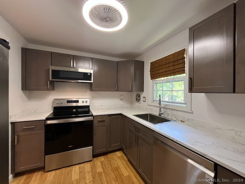 Why buy when you can rent? Modern, sun-filled, and spacious apartment nestled in the heart of Farmington. Step outside for gorgeous views of Dunning Lake Beach and Picnic Pavilion at Winding Trails. This immaculate and turn-key condo features a fully remodeled kitchen with newer cabinetry, appliances, lighting, and flooring. The kitchen opens to a spacious living room area--perfect space for entertaining family and friends or for enjoying a quiet evening on the couch. A good-size bedroom and fully remodeled bathroom complete the main level. Both laundry and additional storage located in the lower level--be sure to ask listing agents for more info. Also just steps from Farmingdale's private community pool for hours of enjoyment and relaxation. Condo is freshly painted and boasts new flooring throughout. Heat and hot water included AND tons of parking available anytime! Tenant to pay for credit, background, eviction check-ask listing agents for more info. Don't miss your chance to enjoy living in the heart of Farmington near golfing, restaurants, shopping, the library, and the Farmington Valley Rails to Trails for fitness and fun.