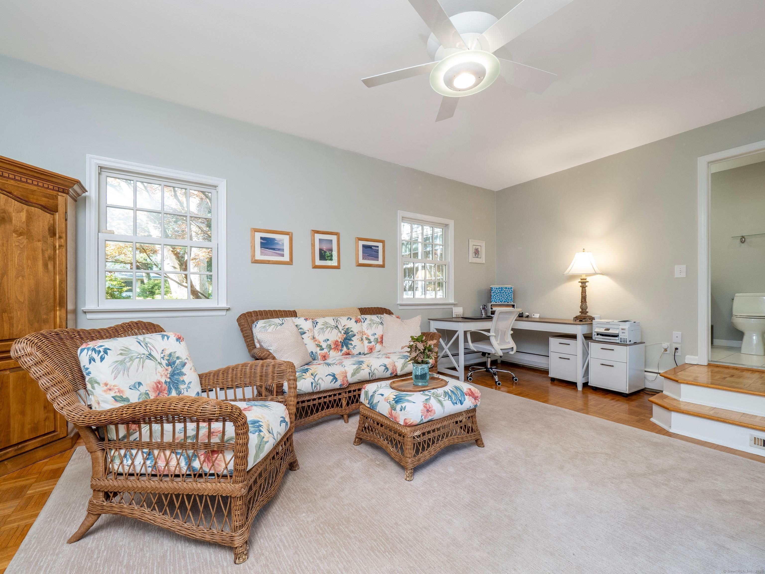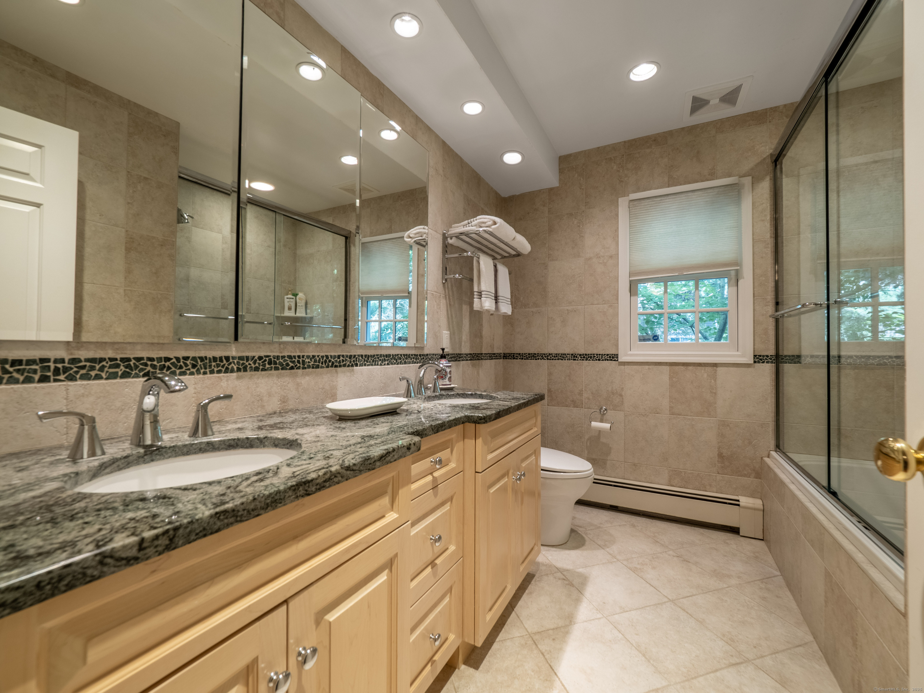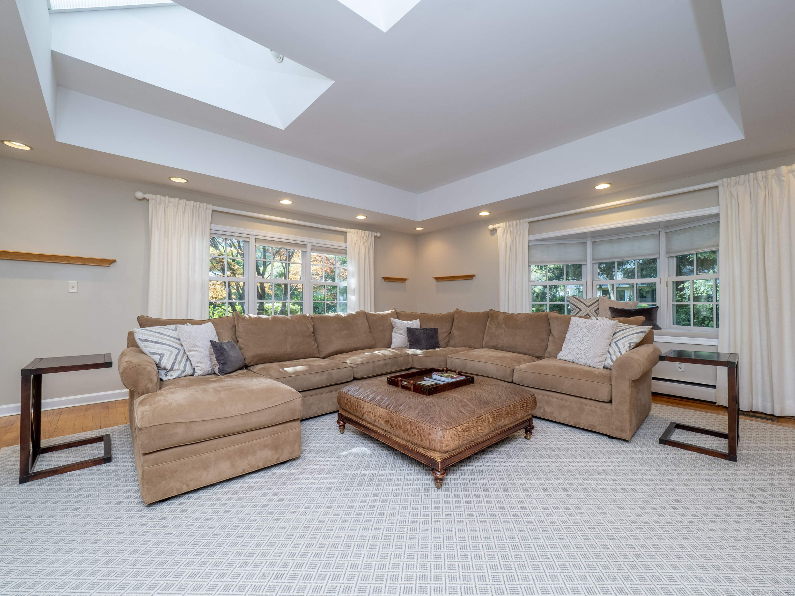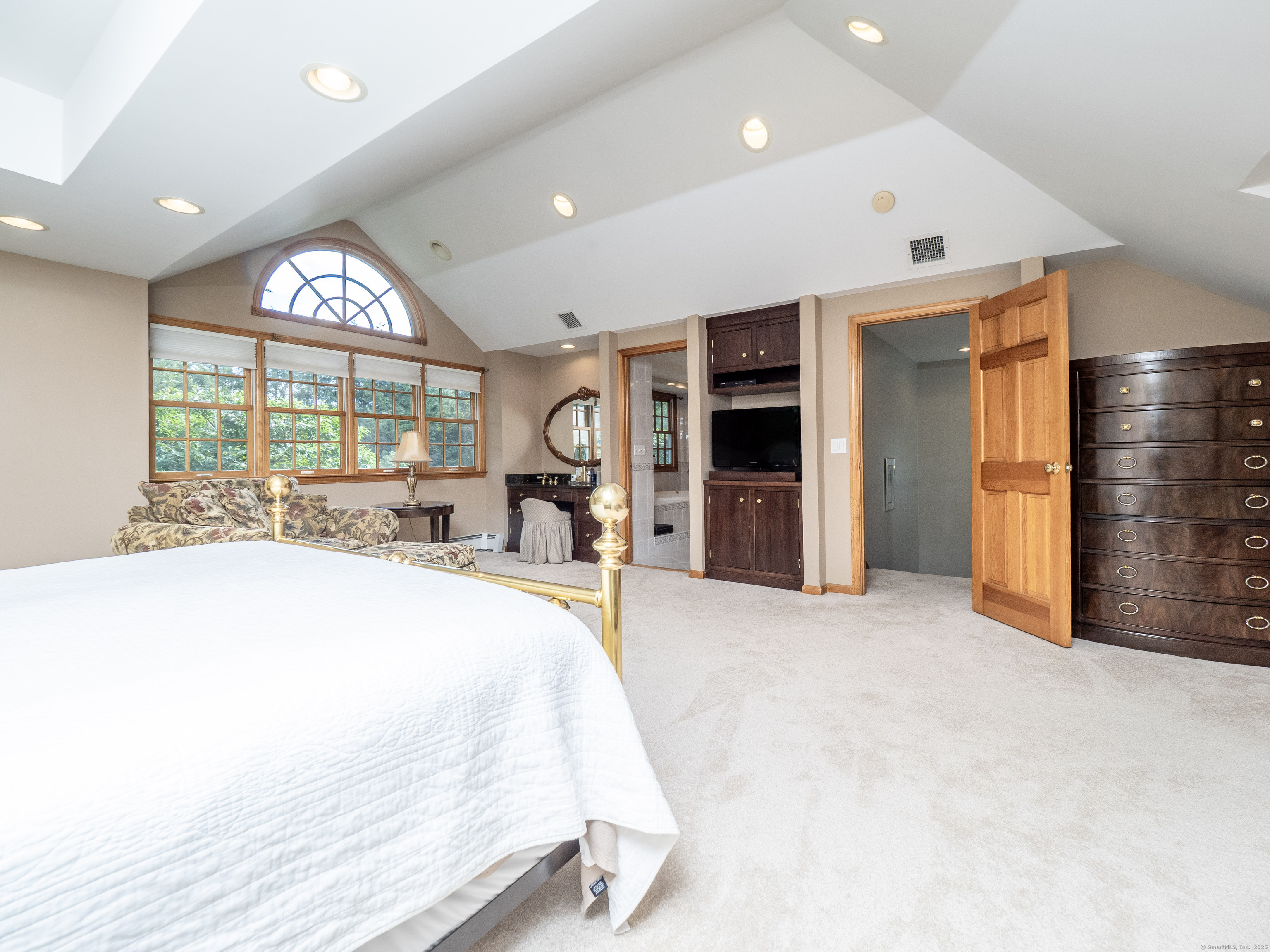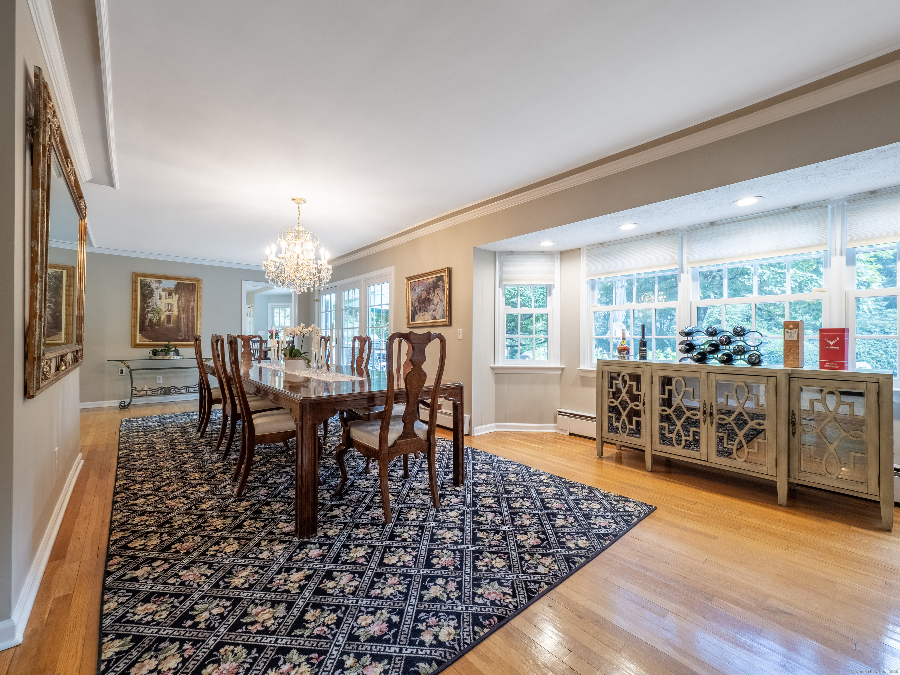 Welcome to 9 Singing Woods Road, a stunning Silvermine 4-5 bedroom home where lush grounds, elegant interiors, and a resort-style pool create the perfect retreat. Set on a professionally landscaped acre, enjoy a heated in-ground gunite pool and open-concept living designed for both relaxation and entertaining. Inside, host elegant dinner parties in the formal dining room. The living room invites conversation, and the family room is a perfect place to relax. The inviting eat-in kitchen boasts stone countertops and radiant heated floors. A sunroom with French doors overlooks the pool, while a massive stone patio with built-in grill and refrigerator sets the stage for effortless outdoor living. An integrated audio system carries music inside and out. Upstairs, the private primary suite spans the entire level with a spacious bedroom, walk-in closet, and spa-inspired bath featuring a jetted tub, oversized glass shower, and radiant heated floors. A full-size office-equal in scale to the bedroom-opens to a rooftop deck with views of the pool and backyard. Additional highlights include two fireplaces, a large finished basement, and an expanded three-car garage (two in tandem). Freshly painted and meticulously maintained, the home offers Hardie board siding, a new roof, and public water. Just a short stroll from GrayBarns, minutes to both I-95 and Merritt, this exceptional residence blends timeless style with modern comfort.