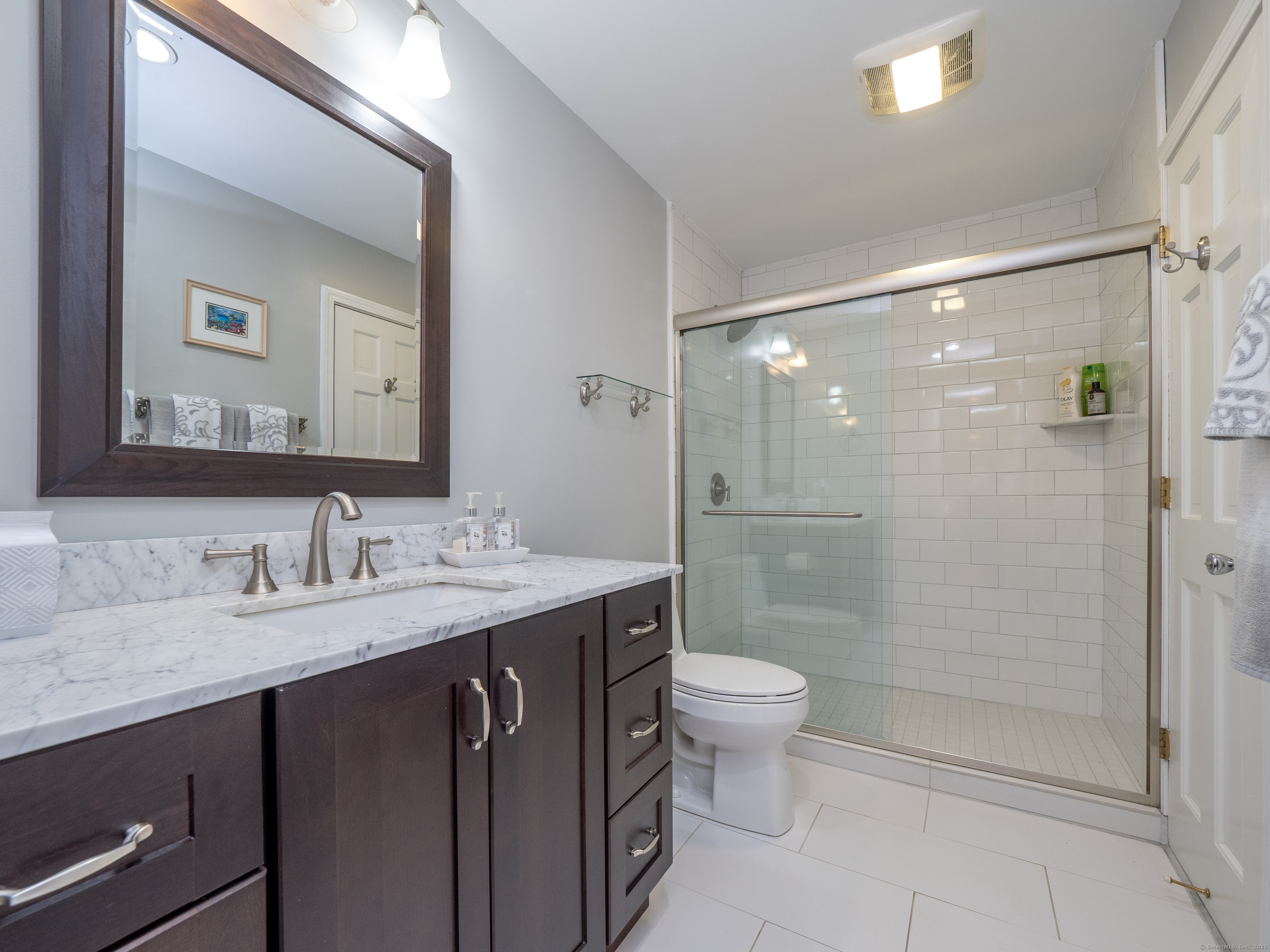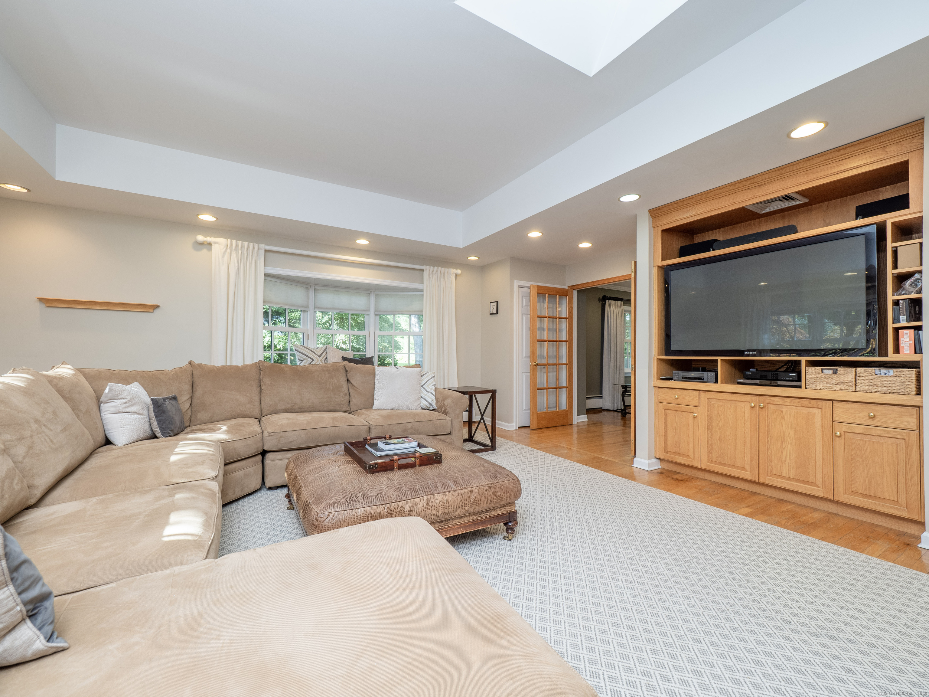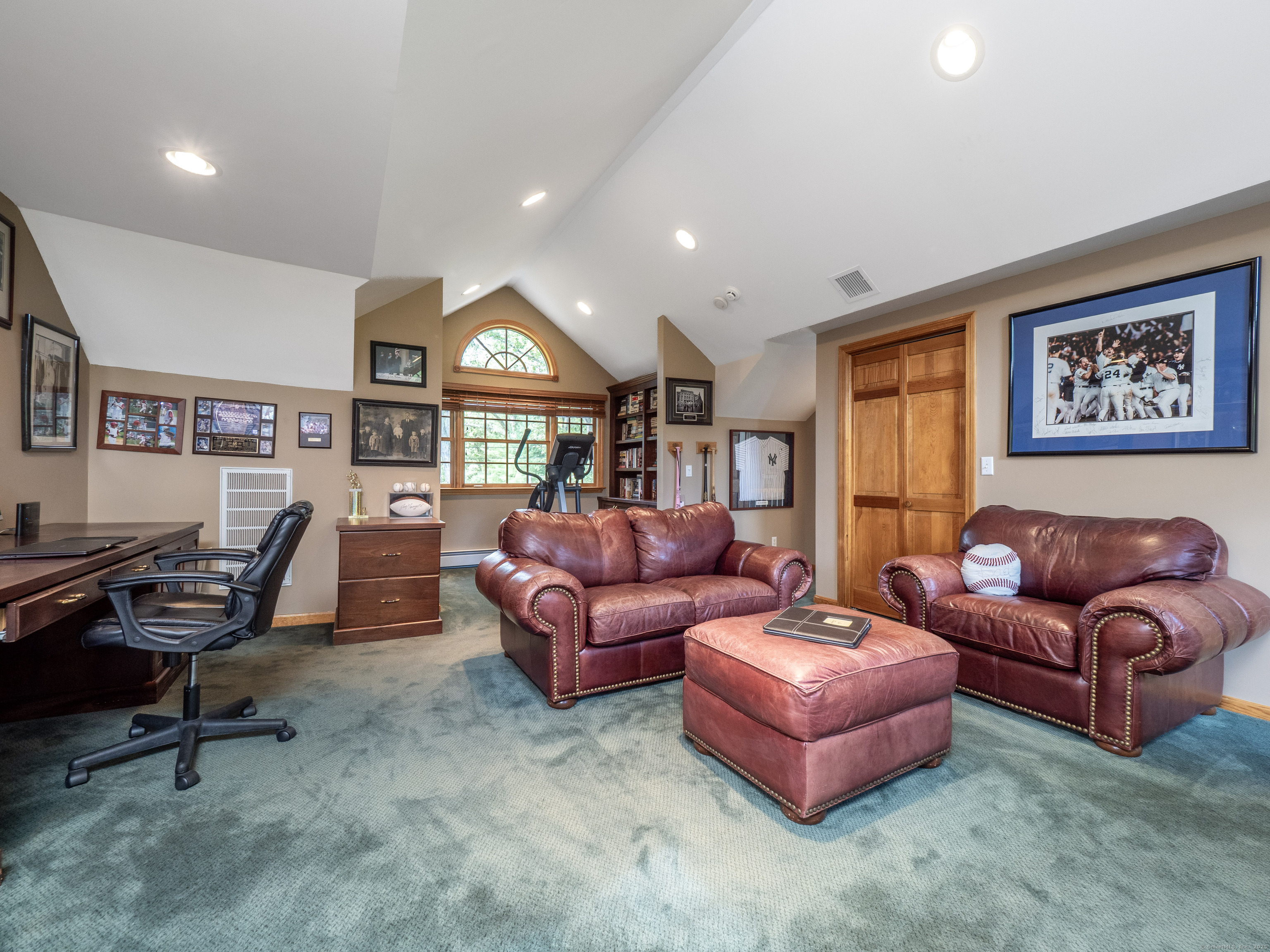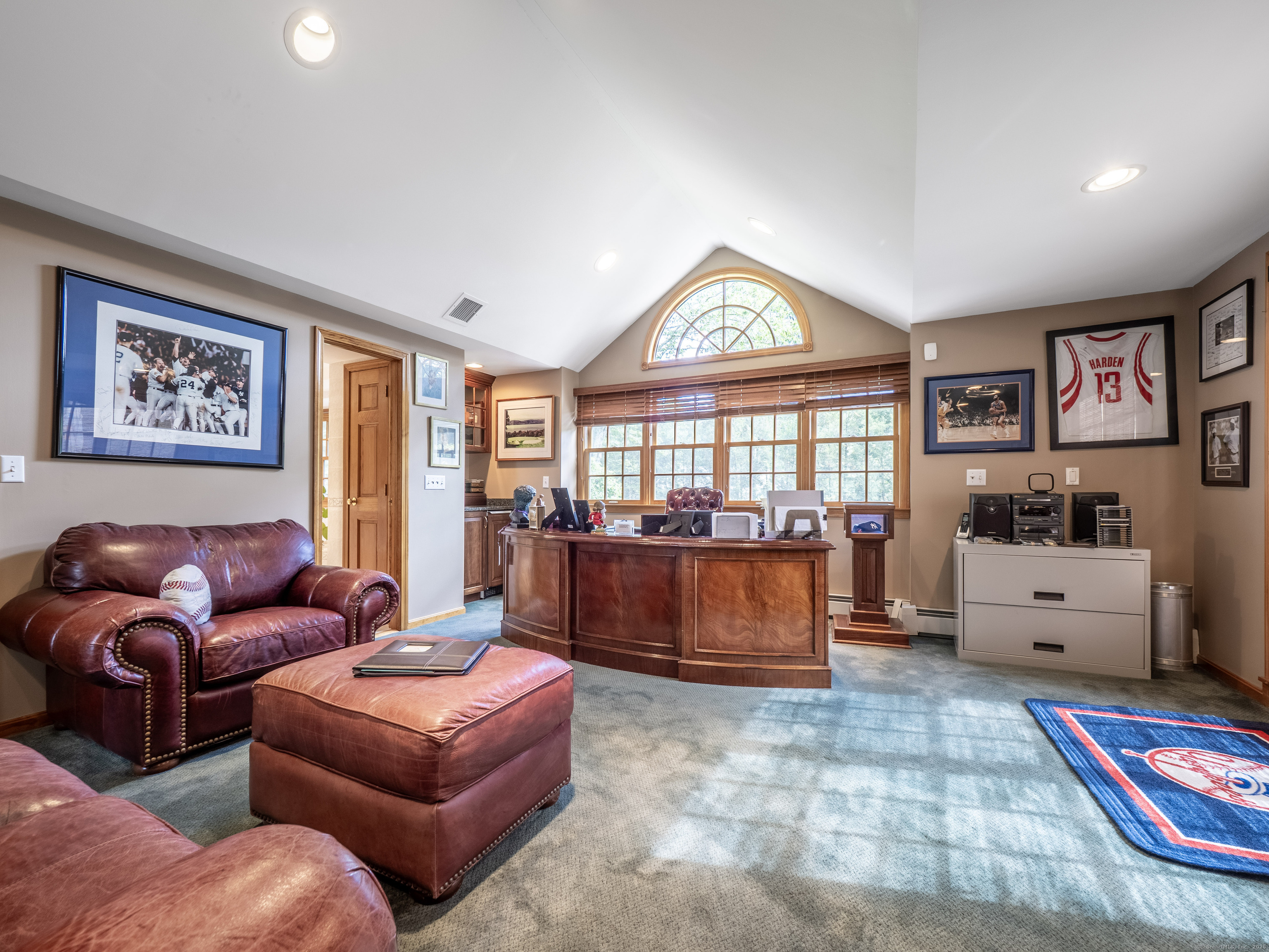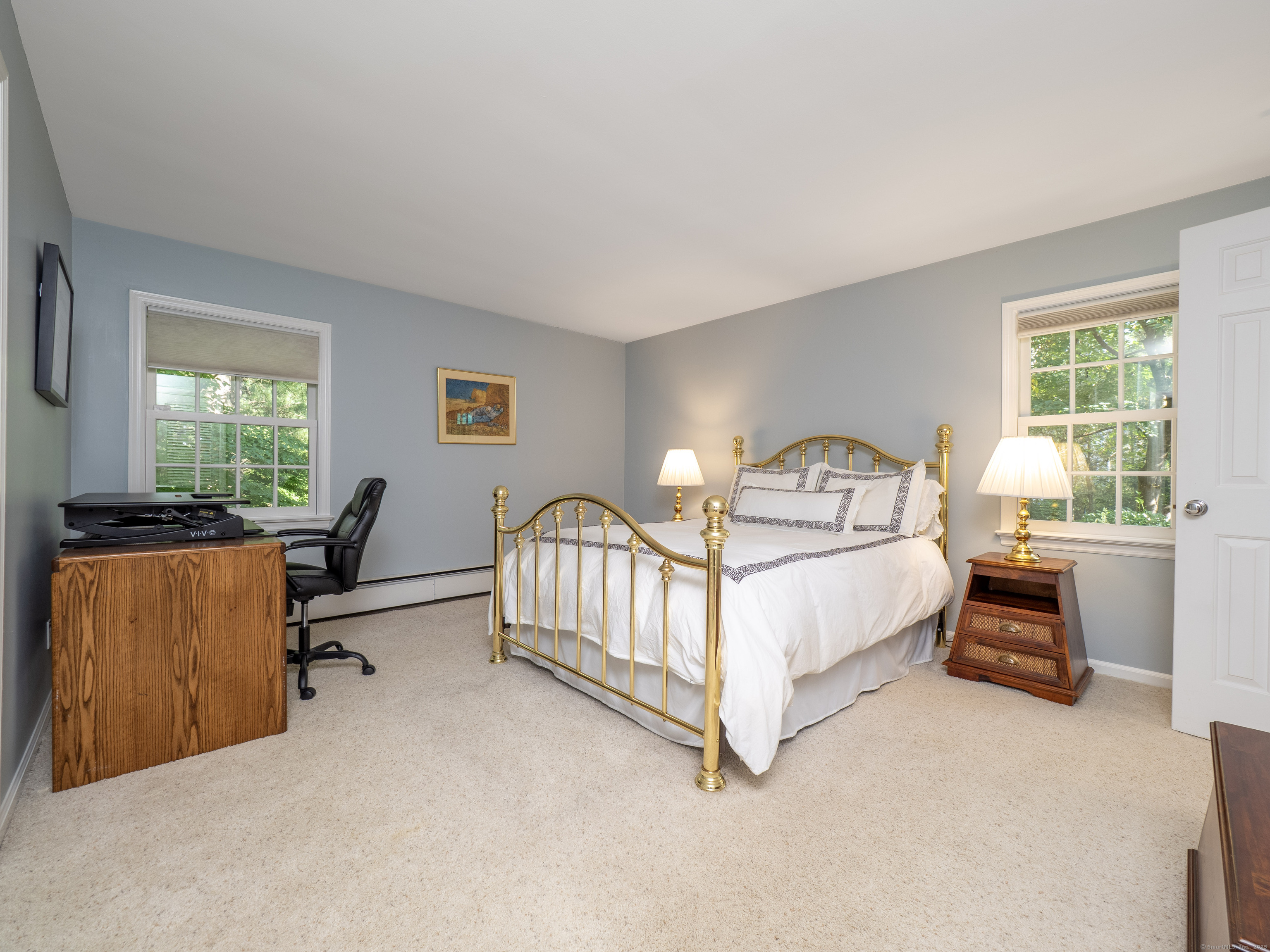 Welcome to 9 Singing Woods Road, a stunning Silvermine 4-5 bedroom home where lush grounds, elegant interiors, and a resort-style pool create the perfect retreat. Set on a professionally landscaped acre, enjoy a heated in-ground gunite pool and open-concept living designed for both relaxation and entertaining. Inside, host elegant dinner parties in the formal dining room. The living room invites conversation, and the family room is a perfect place to relax. The inviting eat-in kitchen boasts stone countertops and radiant heated floors. A sunroom with French doors overlooks the pool, while a massive stone patio with built-in grill and refrigerator sets the stage for effortless outdoor living. An integrated audio system carries music inside and out. Upstairs, the private primary suite spans the entire level with a spacious bedroom, walk-in closet, and spa-inspired bath featuring a jetted tub, oversized glass shower, and radiant heated floors. A full-size office-equal in scale to the bedroom-opens to a rooftop deck with views of the pool and backyard. Additional highlights include two fireplaces, a large finished basement, and an expanded three-car garage (two in tandem). Freshly painted and meticulously maintained, the home offers Hardie board siding, a new roof, and public water. Just a short stroll from GrayBarns, minutes to both I-95 and Merritt, this exceptional residence blends timeless style with modern comfort.