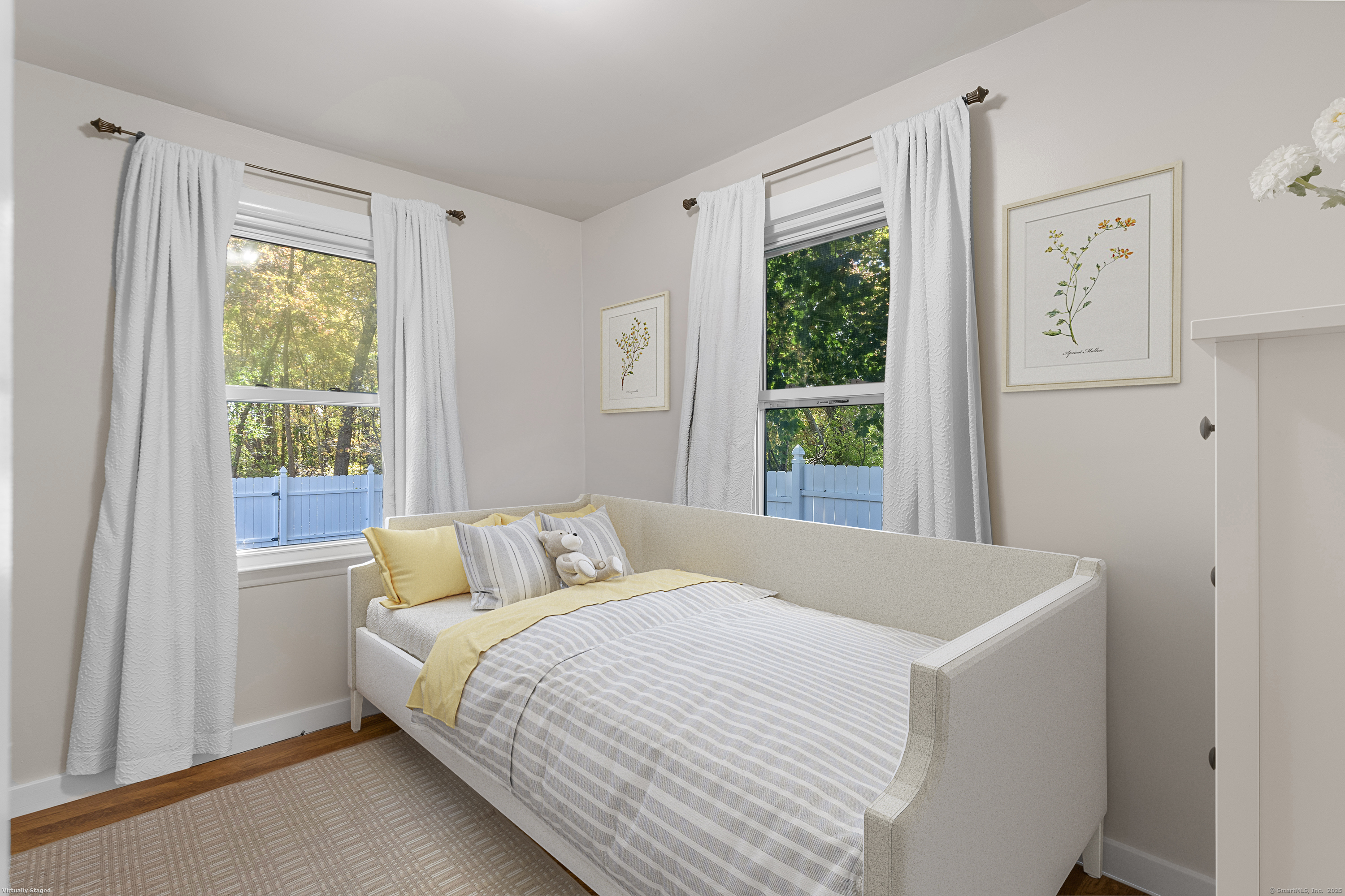 Welcome to 55 Augusta Street! This charming 2-bedroom ranch-style home offers warmth, comfort, and thoughtful finishes throughout. Inside you will find a cozy living room highlighted by a wood-burning fireplace, hardwood floors, and a large window that fills the space with natural light. The kitchen offers plenty of space with stainless steel appliances and granite-tiled countertops. Adjacent to the kitchen, the spacious dining room features cathedral ceilings with a large bay window, creating an airy and inviting atmosphere. French doors off the dining room open to a fully fenced, private backyard-perfect for outdoor entertaining. The main level includes an updated full bathroom and two bedrooms for convenient one-level living. Downstairs, the partially finished basement provides additional flex space-ideal for a home office, playroom, or workout area. A newly installed basement waterproofing system and hot water heater offer added peace of mind. Don't miss the opportunity to make this delightful home yours! *****Multiple offers have been received, requesting Best and Final by Tuesday, 10/28, at 9:00 a.m.*****