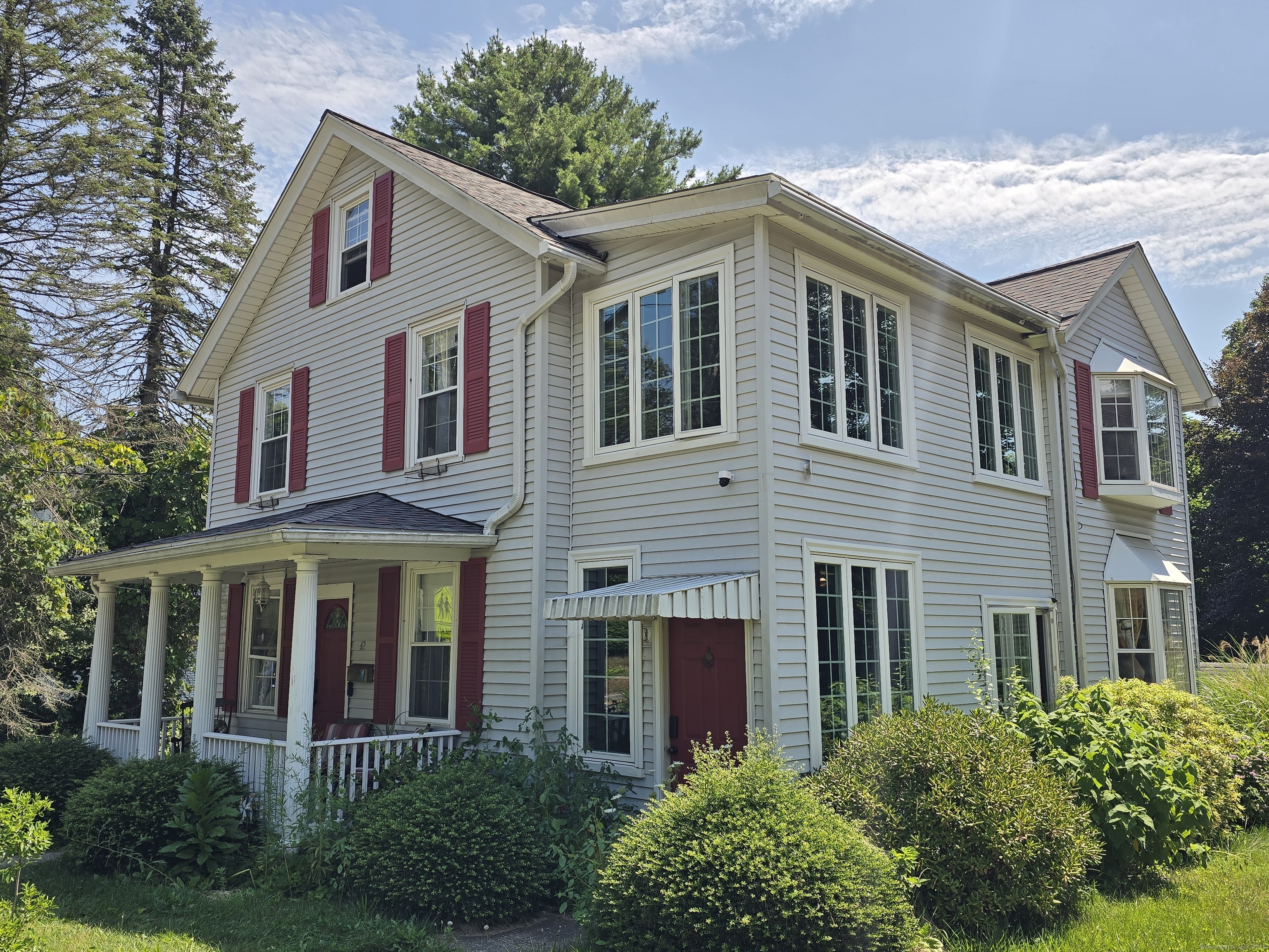 Discover this charming colonial nestled in a serene setting, offering the perfect blend of character and modern updates. Set on nearly half an acre, the property provides plenty of room for gardening, entertaining, and outdoor activities. Inside, custom wide trim and natural light highlight the home's warm and inviting feel. The spacious kitchen is fully equipped with stainless steel appliances and opens to an enclosed sunroom leading to a Trex deck that overlooks a tranquil, private yard. Listed as a 2-bedroom, the home offers bonus rooms, a walk-up finished attic, and a partially finished basement-providing flexibility to create up to 4 bedrooms or customize spaces to fit your needs. The master suite features a full bath with a whirlpool tub and a cozy sitting area, while the second bedroom includes built-ins and access to an enclosed porch. Additional updates include a new roof, new central air and natural gas units, upgraded electrical, and EV charging in the 2-car detached garage with attached shed/barn. Enjoy peaceful mornings on the balcony, afternoons in the garden, and evenings relaxing in your private oasis. This well-maintained home combines timeless colonial charm with modern comfort, making it an ideal retreat.