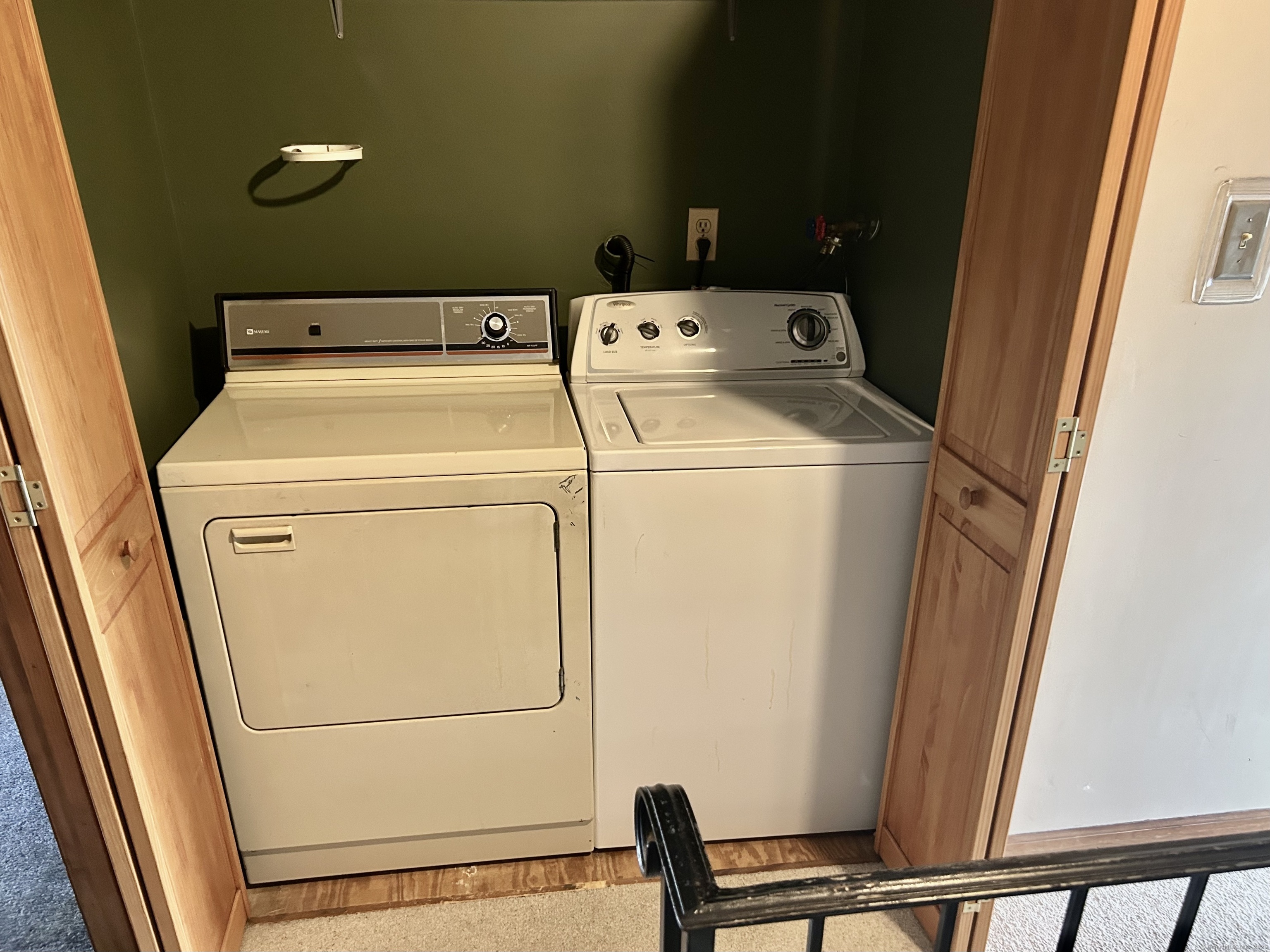 Aspetuck Village spacious 2 bedroom 2 bath condo; a convenient and quiet location only 5 minutes to New Milford town green! Open floor plan with bright kitchen, oversized dining/living room with sliders to patio area for grilling. Two large bedrooms upstairs with walk in closet, jack and jill bathroom and convenient upper level laundry. This unit comes with a large one car garage with plenty of storage. The complex is investor friendly and has lots of guest parking. Price reflects the need for some updating, but this unit has been owner occupied for 40+ years and well maintained. It is being sold AS IS. Roof and siding were replaced in 2023 and hot water heater in 2024.