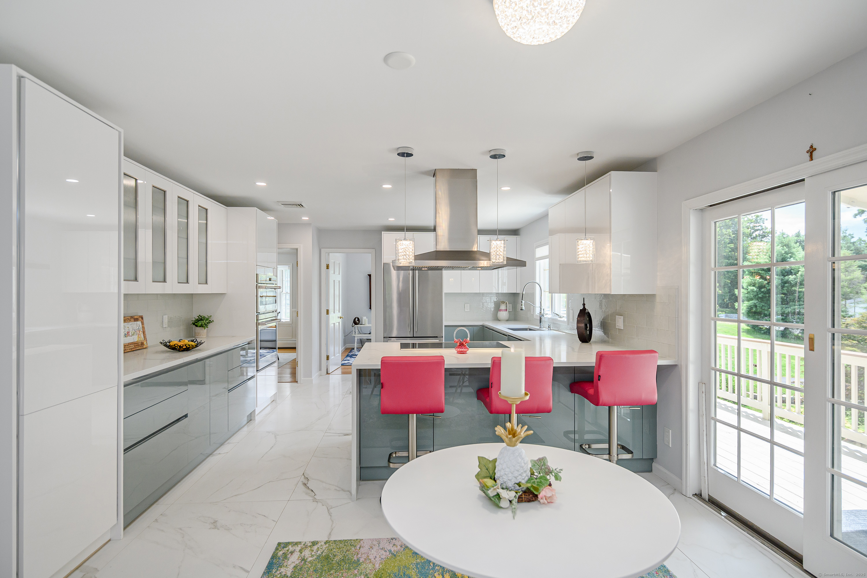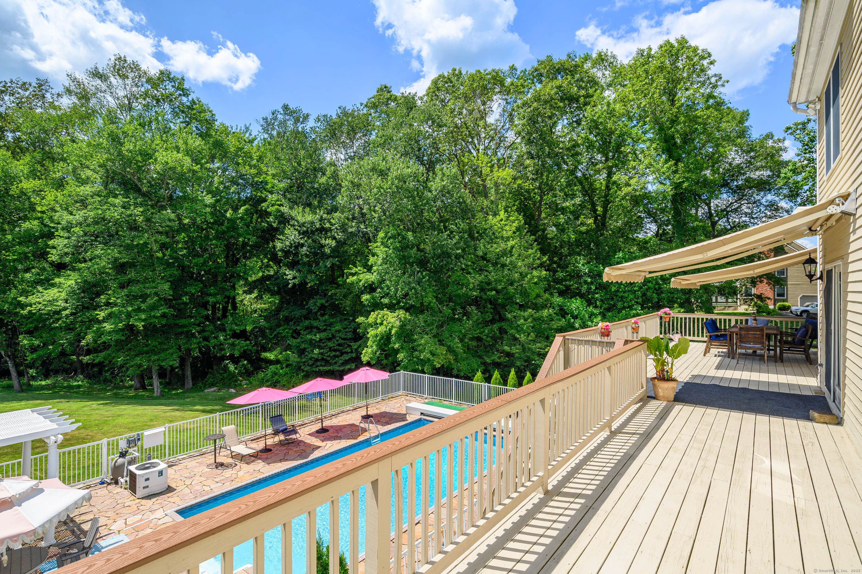 Discover refined living in this beautifully renovated four-bedroom, two full and three half-bath Colonial, perfectly positioned on a quiet cul-de-sac. This exceptional home seamlessly blends classic charm with contemporary luxury, featuring extensive updates throughout including brand new roof. The main level welcomes you with new porcelain tile flooring in the entry, leading to an upgraded kitchen showcasing high-end appliances. A newly appointed half bath features premium Kohler fixtures, Milano vanity, and electric mirror. The living and dining rooms are enhanced with fresh crown molding, while a stunning new chandelier graces the foyer. Recessed lighting illuminates the family and living areas, and hardwood floors flow throughout all bedrooms. The walk-out finished basement offers additional living space with fresh paint and quality laminate flooring. Outside, the oversized saltwater pool becomes the centerpiece of outdoor entertaining, complete with automatic cover and elegant new stone wall surround. A welcoming stone walkway leads from the street, complementing the home's curb appeal. Additional amenities include a spacious attic and two-car garage, making this home as practical as it is beautiful. New Roof June 2025. Wired for Interlock Generator.
