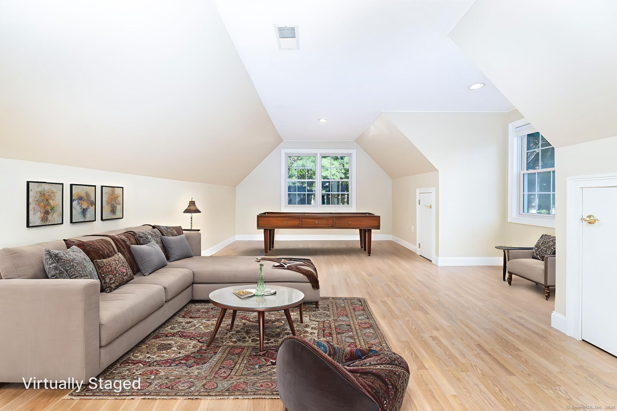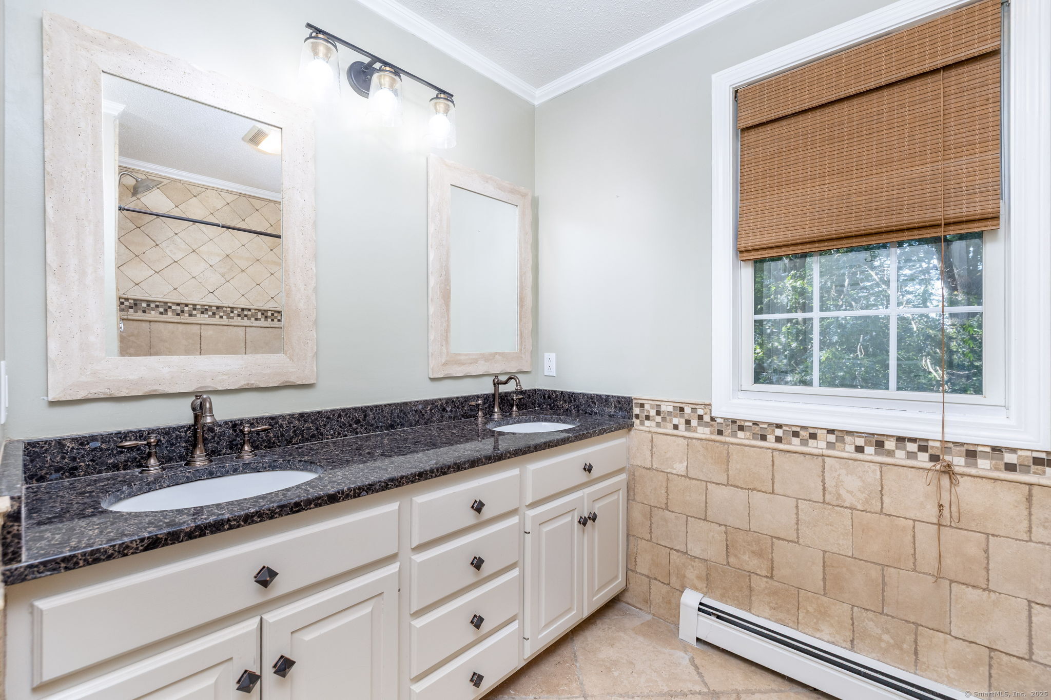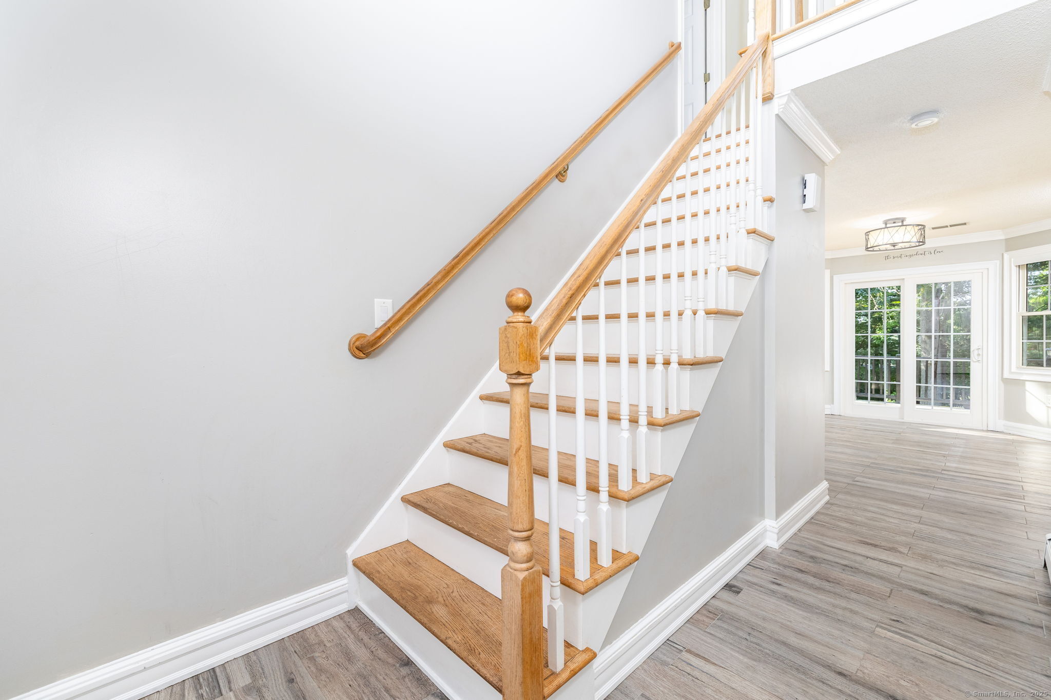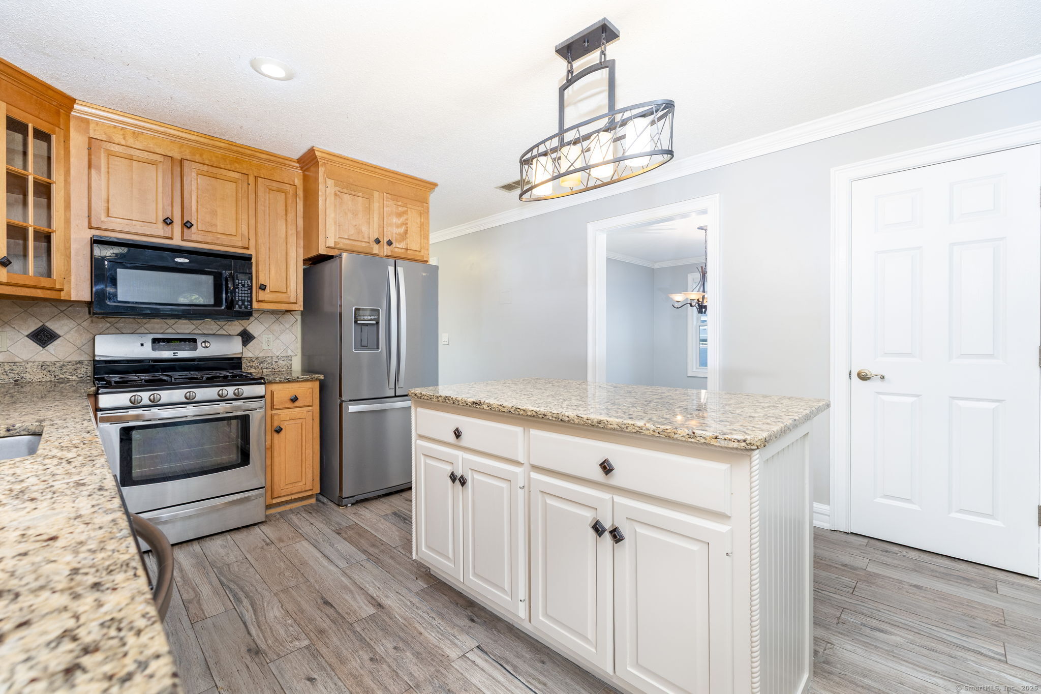 Nestled on a lush .43-acre lot, this stunning 3-bedroom, 2.5-bath Colonial, spanning 2,243 sq ft with an additional 900+ sq ft unfinished walk-out lower level, is a masterpiece of elegance and modern comfort. Freshly painted with new flooring gracing the main level, this home exudes timeless elegance with thick crown moulding adorning every room. The front-to-back living room captivates with abundant natural light, a cozy gas fireplace crowned by a robust mantle and seamless flow into the eat-in kitchen. Here, granite countertops gleam atop a spacious island with barstool seating, complemented by stainless steel appliances, pantry and a slider opening to a breathtaking multi-tiered deck. Spanning the back of the home, the deck boasts a relaxing hot tub and a patio with a built-in firepit, perfect for starlit gatherings. A formal dining room and remodeled half bath complete the main floor. Upstairs, the primary suite impresses with a walk-in closet and a full bath featuring a granite double sink and tub-shower combo. Two additional bedrooms, a full bath and a versatile finished bonus room-ideal as a 4th bedroom, rec room, home office or gym-offer endless possibilities. Practicality meets luxury with a 2nd floor laundry room, 2-car attached garage, fenced-in backyard, newer hot water heater, efficient gas heat and central air. This Colonial gem blends sophistication and functionality, ready to welcome its next chapter. Schedule today.