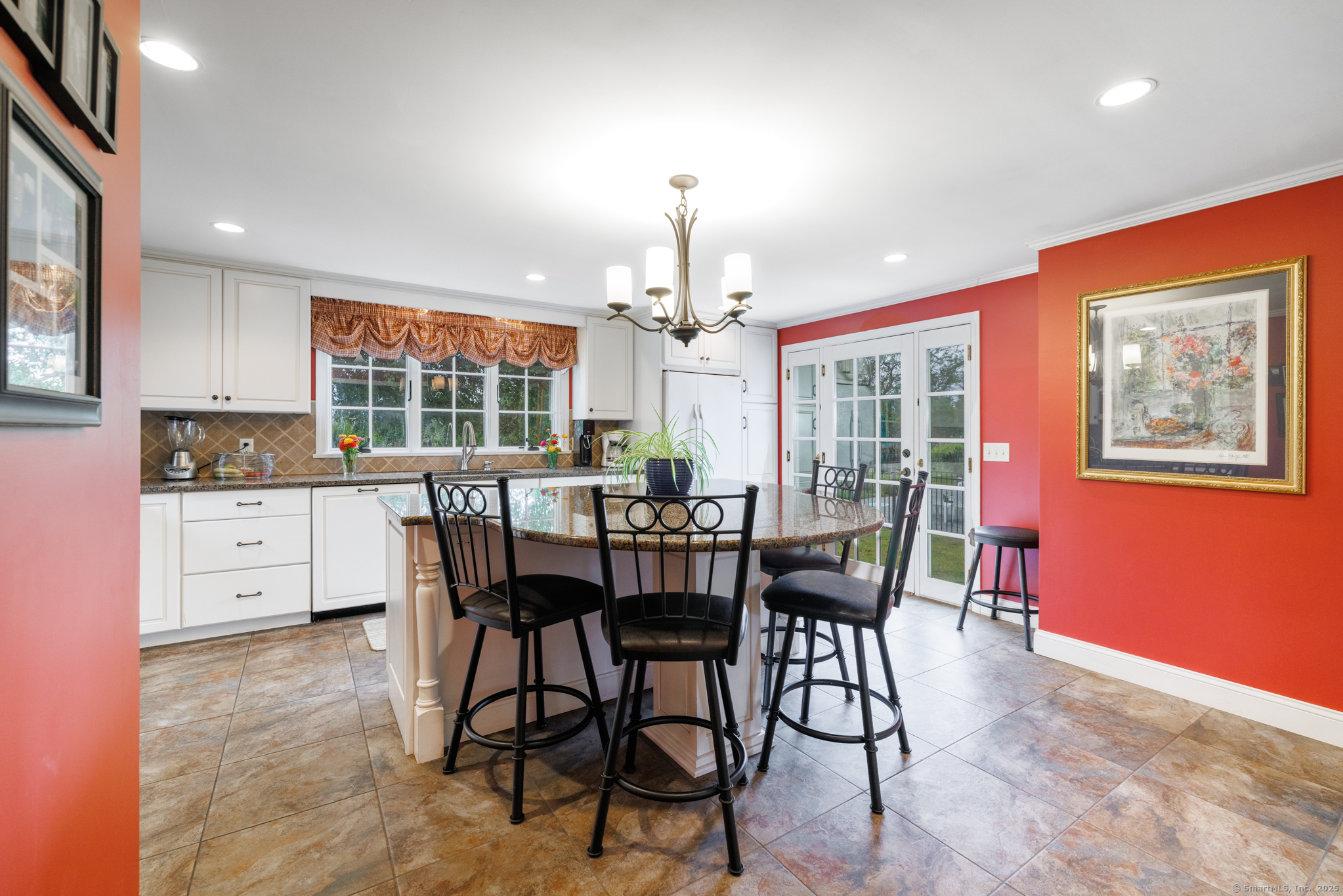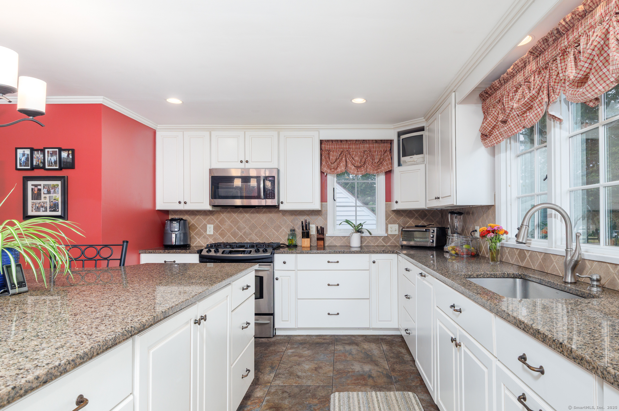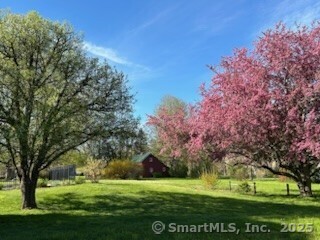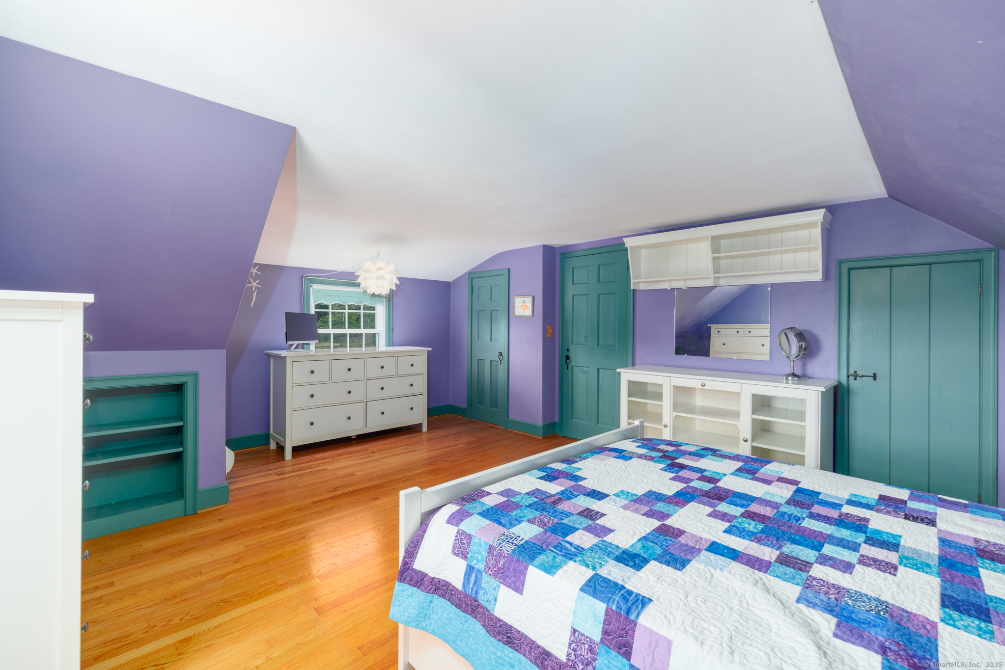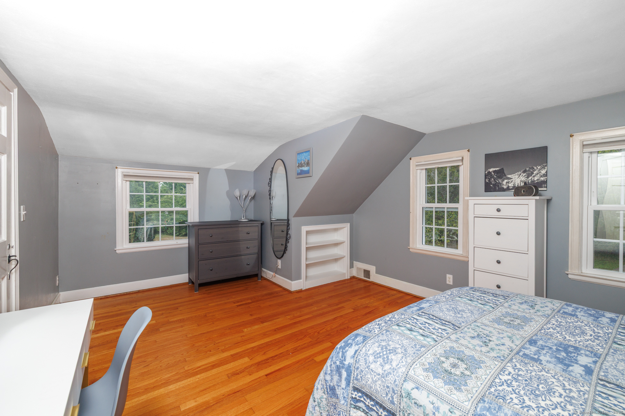 This quintessential "L" shaped Cape Cod Home sits on 2 acres tucked behind a 200ft long stonewall. It's a colonial reproduction, designed by Norris Prentice, a renowned architect once featured in Better Homes and Gardens as well as the Hartford Courant. Centrally located in town yet provides a private setting, it has an understated appearance. Every room is sun-drenched. Front to back living room boasts granite fireplace, large bay window & french doors. Remodeled kitchen features added 18x11 addition, oversized 7x7 granite island, dual fuel oven & access to mudroom, powder room, open-air staircase to lower level game room & French doors to granite patio. The primary bedroom is on the 1st floor with 2 separate closets & its own bath. Two generous bedrooms upstairs share their own bath. All 3 bathrooms have been updated. The home is unique in that it offers 2 HOME OFFICES, one which may be converted to 4th bdrm. Built- ins throughout the house as well hardwood floors. The home's outdoors gives the vibe of being in an oasis, with its privacy, plantings, outbuildings & heated pool with wrap around patio. The grounds provide a 2 story barn, garden shed, pool shed/clubhouse as well as a fire-pit hidden in a private field found through the opening craved in the arborvitae. The plantings were chosen so that as one is done blooming another one begins. The heated pool & expansive decking provide for an excellent place to entertain, offering an extended season.