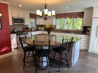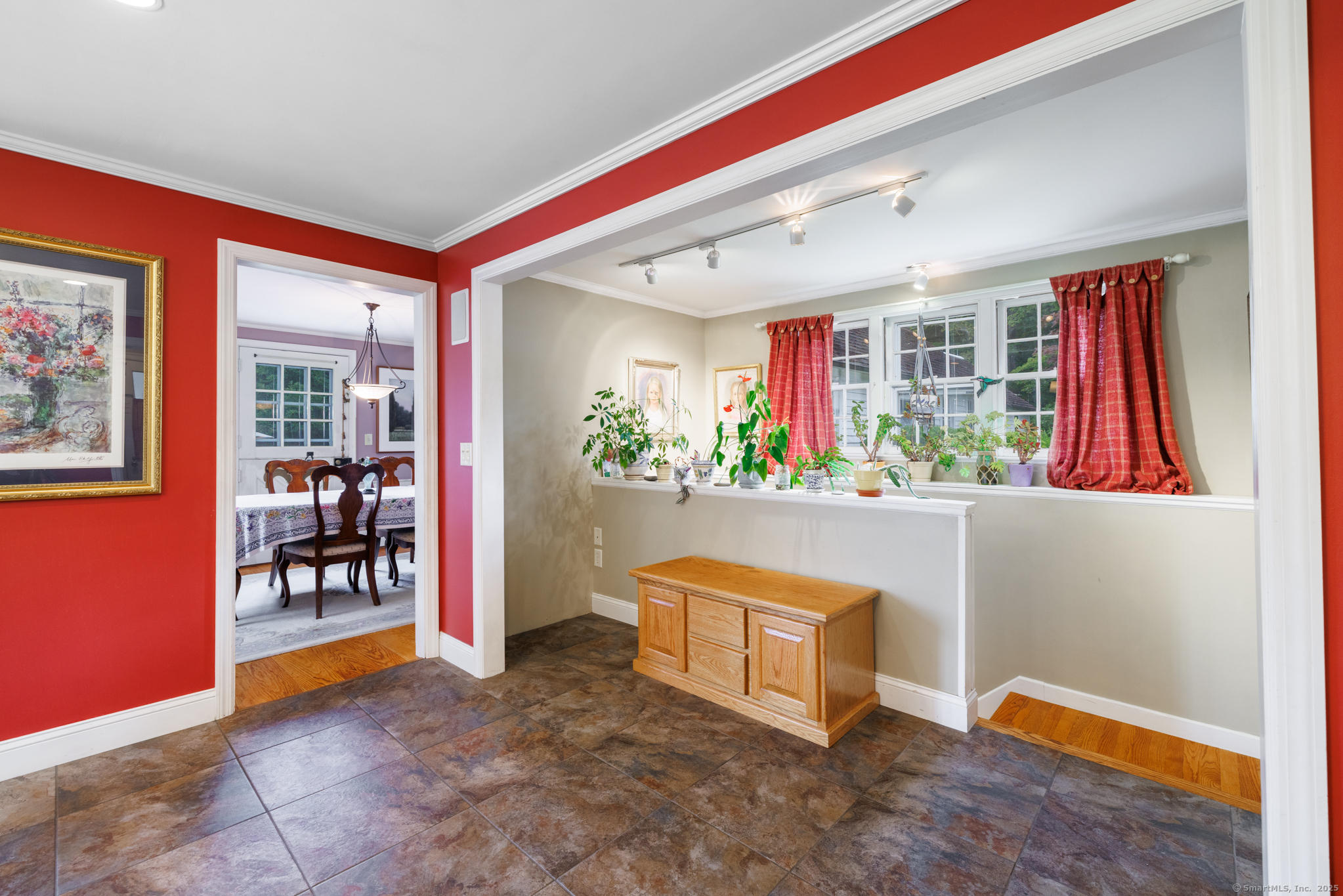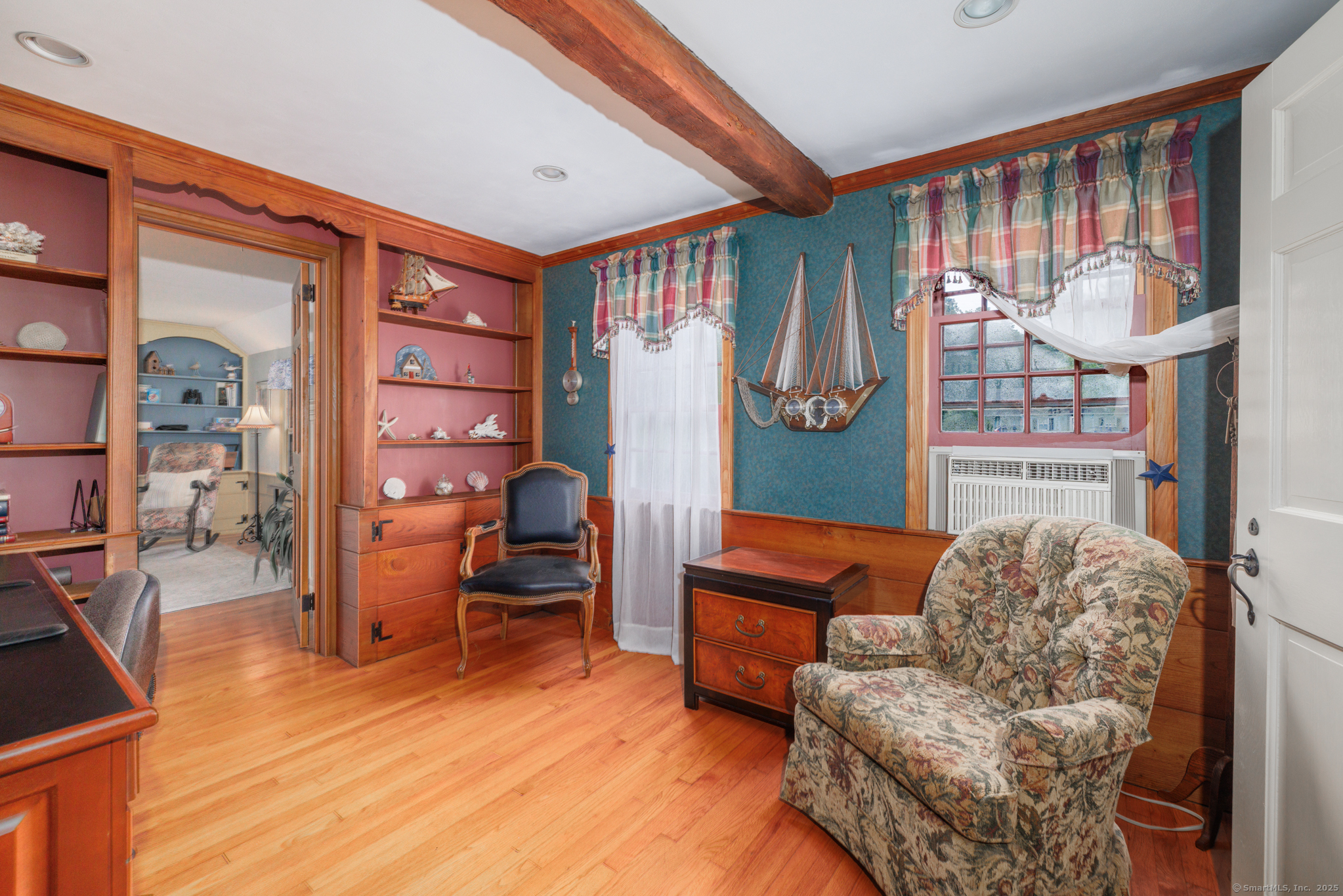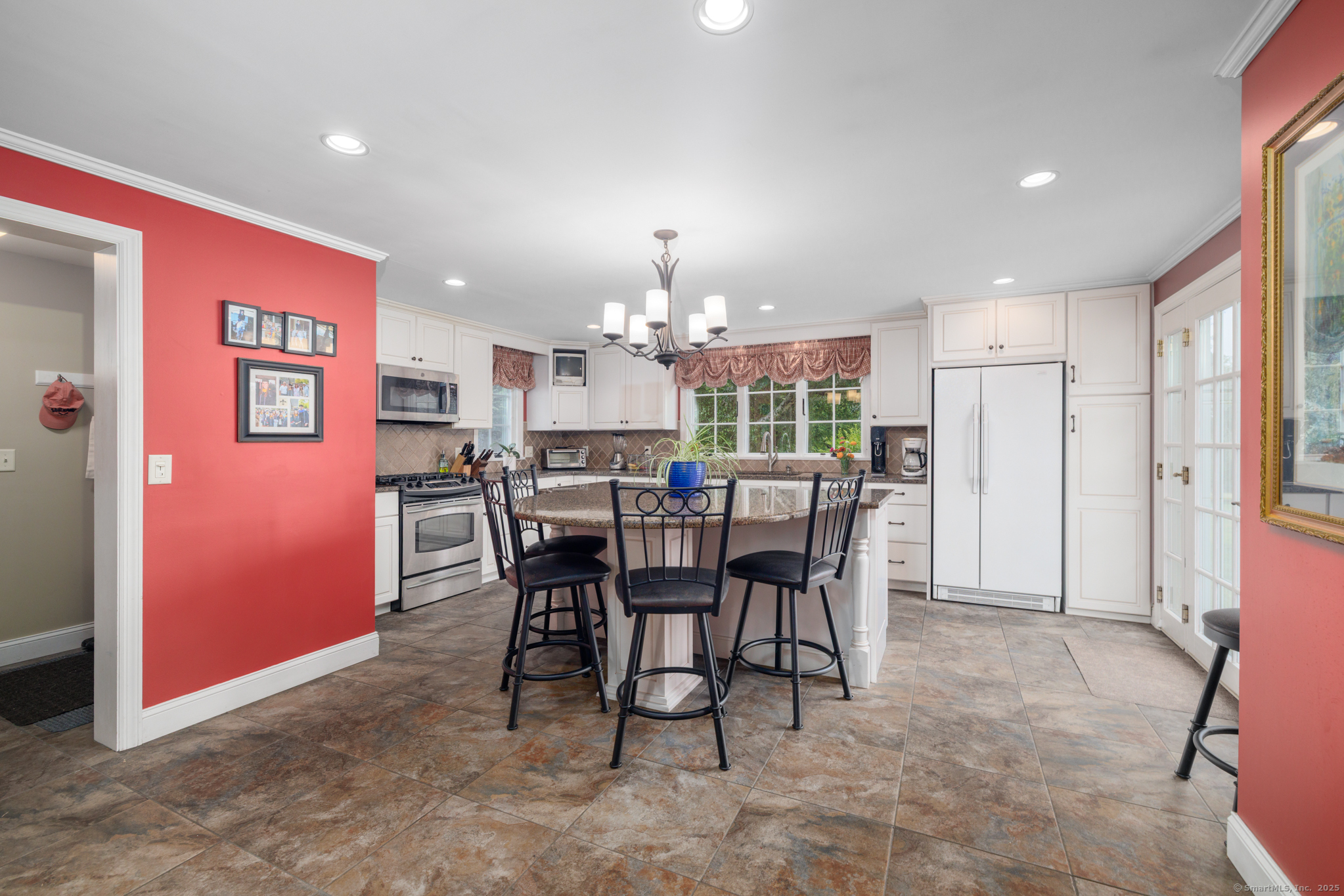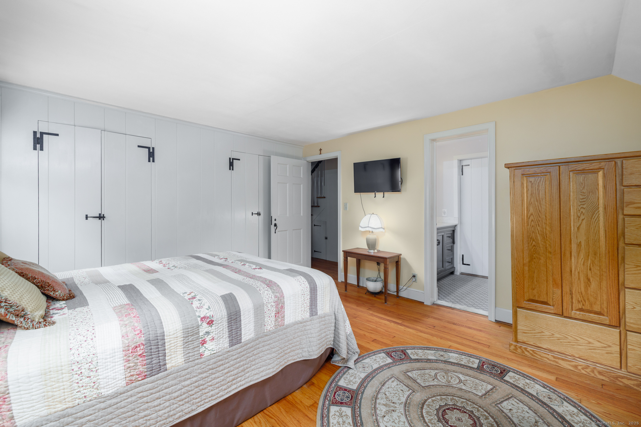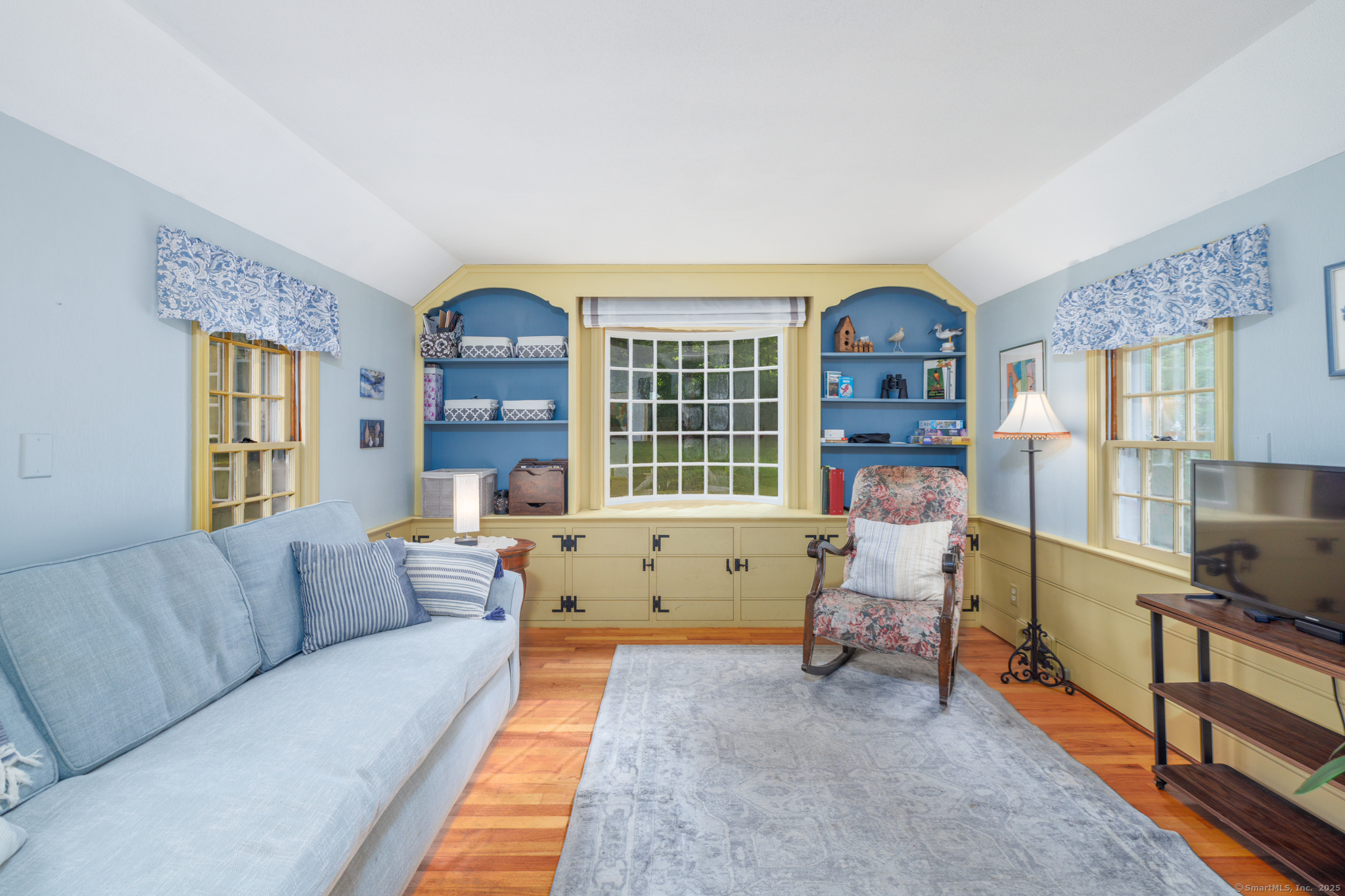 This quintessential "L" shaped Cape Cod Home sits on 2 acres tucked behind a 200ft long stonewall. It's a colonial reproduction, designed by Norris Prentice, a renowned architect once featured in Better Homes and Gardens as well as the Hartford Courant. Centrally located in town yet provides a private setting, it has an understated appearance. Every room is sun-drenched. Front to back living room boasts granite fireplace, large bay window & french doors. Remodeled kitchen features added 18x11 addition, oversized 7x7 granite island, dual fuel oven & access to mudroom, powder room, open-air staircase to lower level game room & French doors to granite patio. The primary bedroom is on the 1st floor with 2 separate closets & its own bath. Two generous bedrooms upstairs share their own bath. All 3 bathrooms have been updated. The home is unique in that it offers 2 HOME OFFICES, one which may be converted to 4th bdrm. Built- ins throughout the house as well hardwood floors. The home's outdoors gives the vibe of being in an oasis, with its privacy, plantings, outbuildings & heated pool with wrap around patio. The grounds provide a 2 story barn, garden shed, pool shed/clubhouse as well as a fire-pit hidden in a private field found through the opening craved in the arborvitae. The plantings were chosen so that as one is done blooming another one begins. The heated pool & expansive decking provide for an excellent place to entertain, offering an extended season.