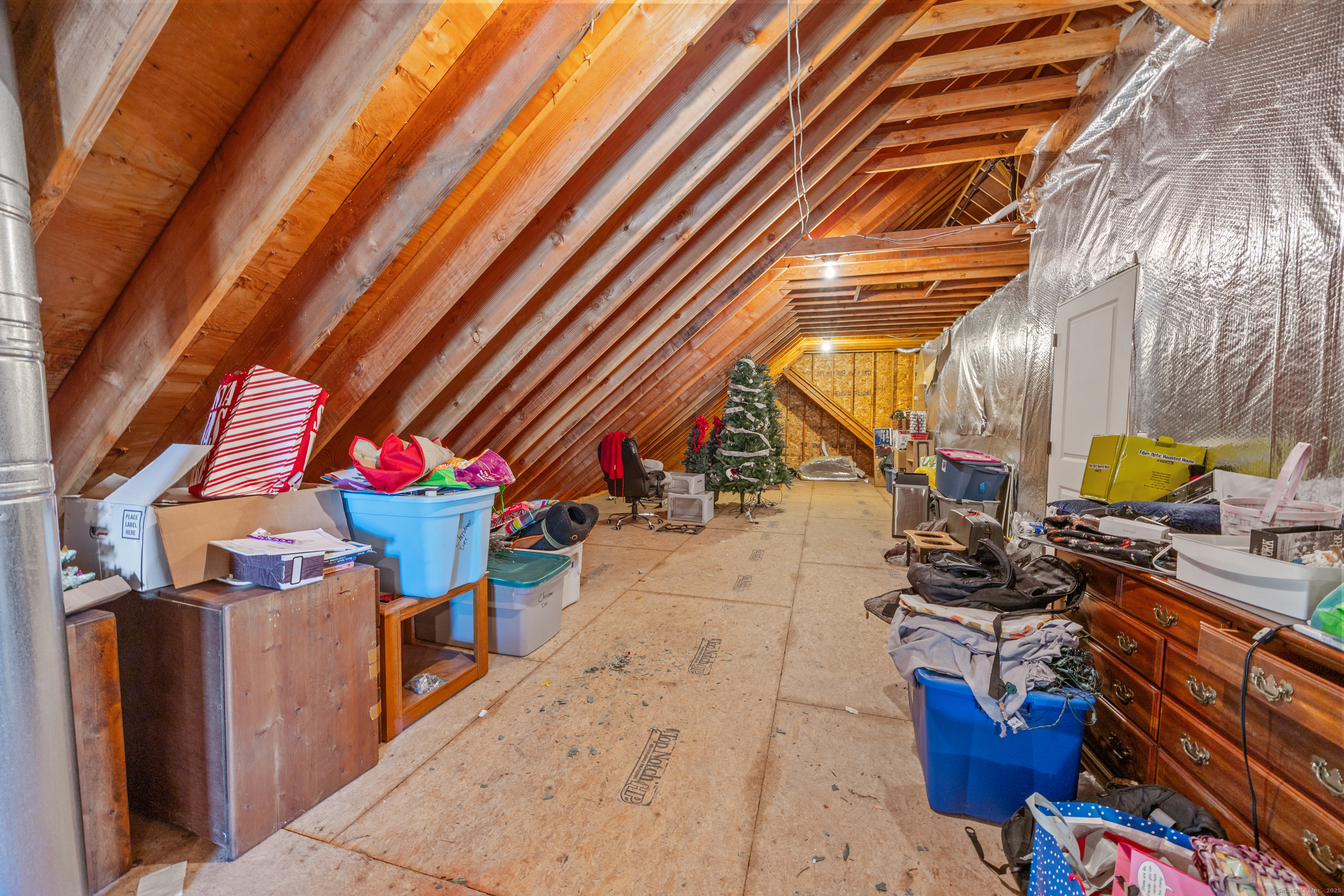 Attic : Unfinished, Storage Space, Floored, Walk-In