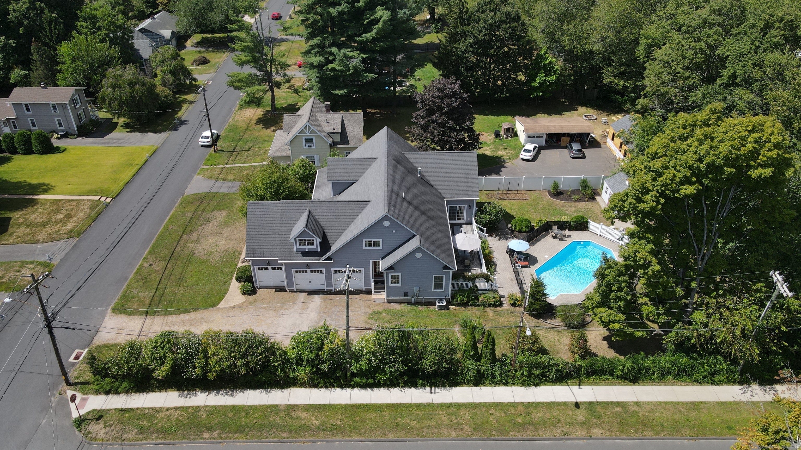 Welcome to 73 Grove Avenue, where space, privacy, and potential come together in one remarkable package. Offering 3,549 sq. ft. in the heart of Forestville, this home is being sold as-is, but the opportunities it holds are endless. Summer living is at its best in your own backyard retreat, complete with a sparkling in-ground pool, privacy from mature trees, and oversized sliders from both the living room and the secluded primary suite leading out to the expansive deck. Inside, abundant natural light fills the open layout, highlighting features like the natural gas fireplace that makes the living space warm and inviting. The main level boasts the private primary suite plus two additional bedrooms for easy living. Upstairs, a sprawling bonus room with its own full bath is ideal for guests, an additional bedroom, or a versatile flex space. The partially finished basement offers radiant heated floors and is plumbed for a full bath; just add flooring to complete your vision. Storage is truly unmatched: between the massive basement and the walk-up attic, you'll have more room than you ever thought possible. A spacious three-car garage with radiant floor heating and a shed with electricity round out this unique property. Yes, updates are needed, but the foundation, square footage, and features here are rare. With its resort-style pool, versatile layout, endless storage, and natural light, 73 Grove Avenue is ready for its next chapter.