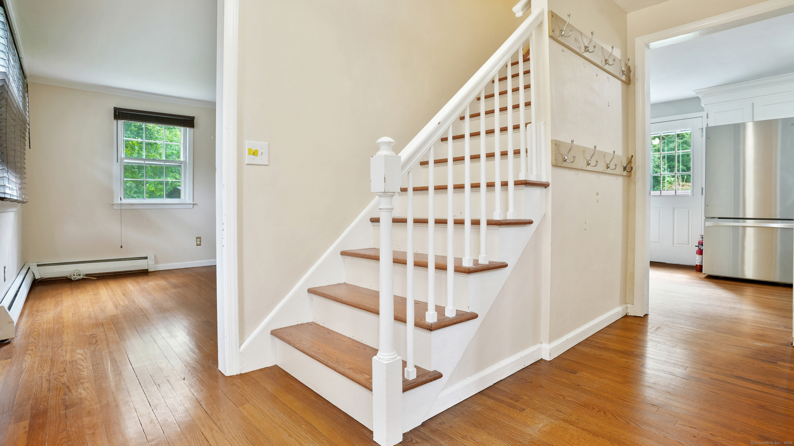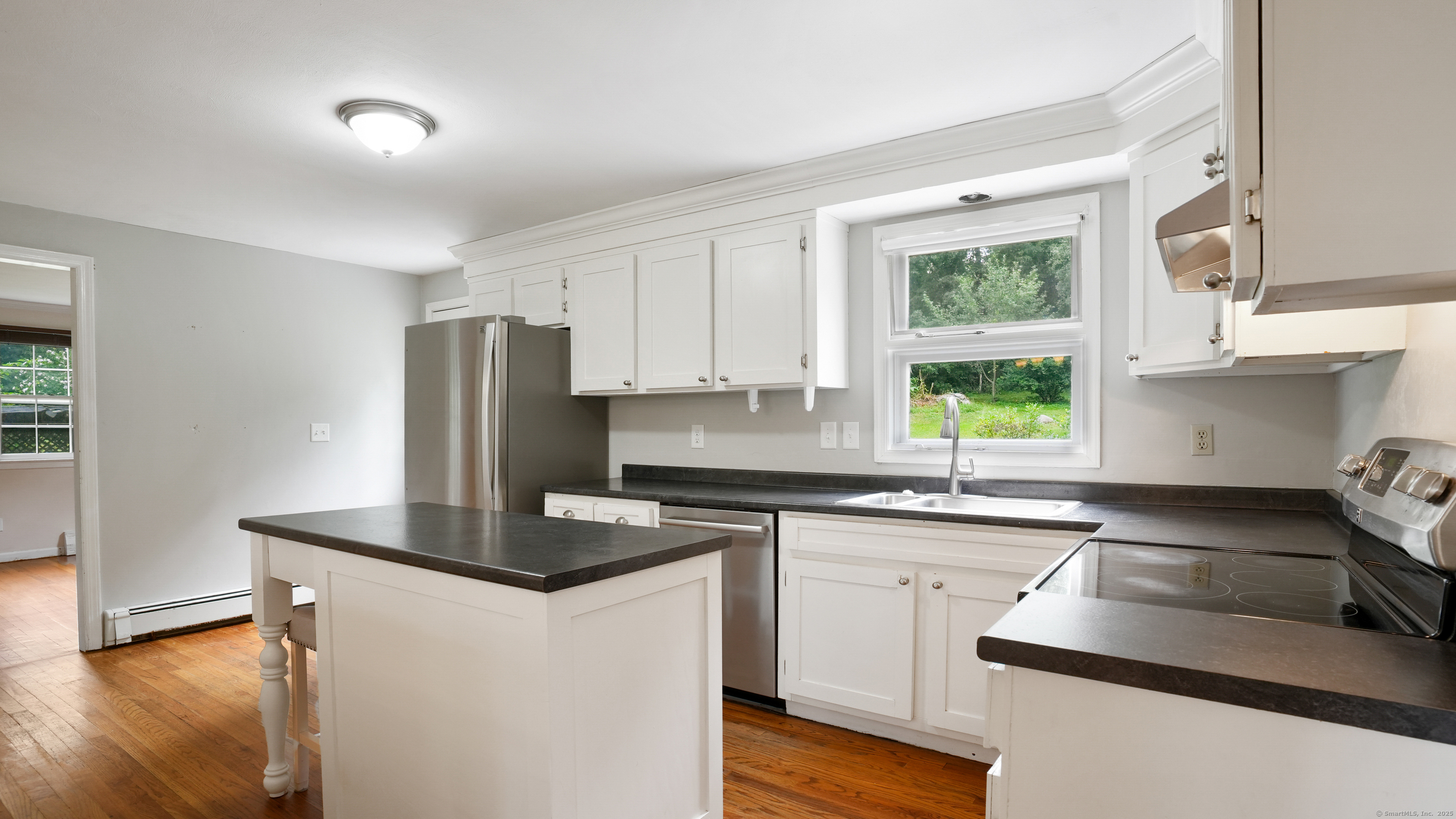 Welcome to 89 Birch Hill Road - a classic colonial brimming with potential and charm. This four-bedroom, one and a half-bath home offers a traditional layout with hardwood floors throughout and a cozy fireplace insert in the living room. The dining room seamlessly flows into the family room and kitchen, creating a spacious and connected main living area ideal for everyday living and entertaining. The kitchen features an island, beautiful crown molding, and stainless steel appliances. A newer LG washer and dryer add modern convenience. Step outside to enjoy the Trex deck, patio, stone walls, and garden area in the backyard - ideal for relaxing, entertaining, or cultivating your own green space. The home's solid bones include a roof that is approximately six years old, offering peace of mind as you bring your personal touch to the space. Set on a generous 1.08-acre corner lot, the property provides both space and privacy in a desirable location. The house is being sold in as-is condition and, while in need of some TLC, presents a wonderful opportunity to build equity and make it your own. Don't miss your chance to create something special here - schedule your private showing today.