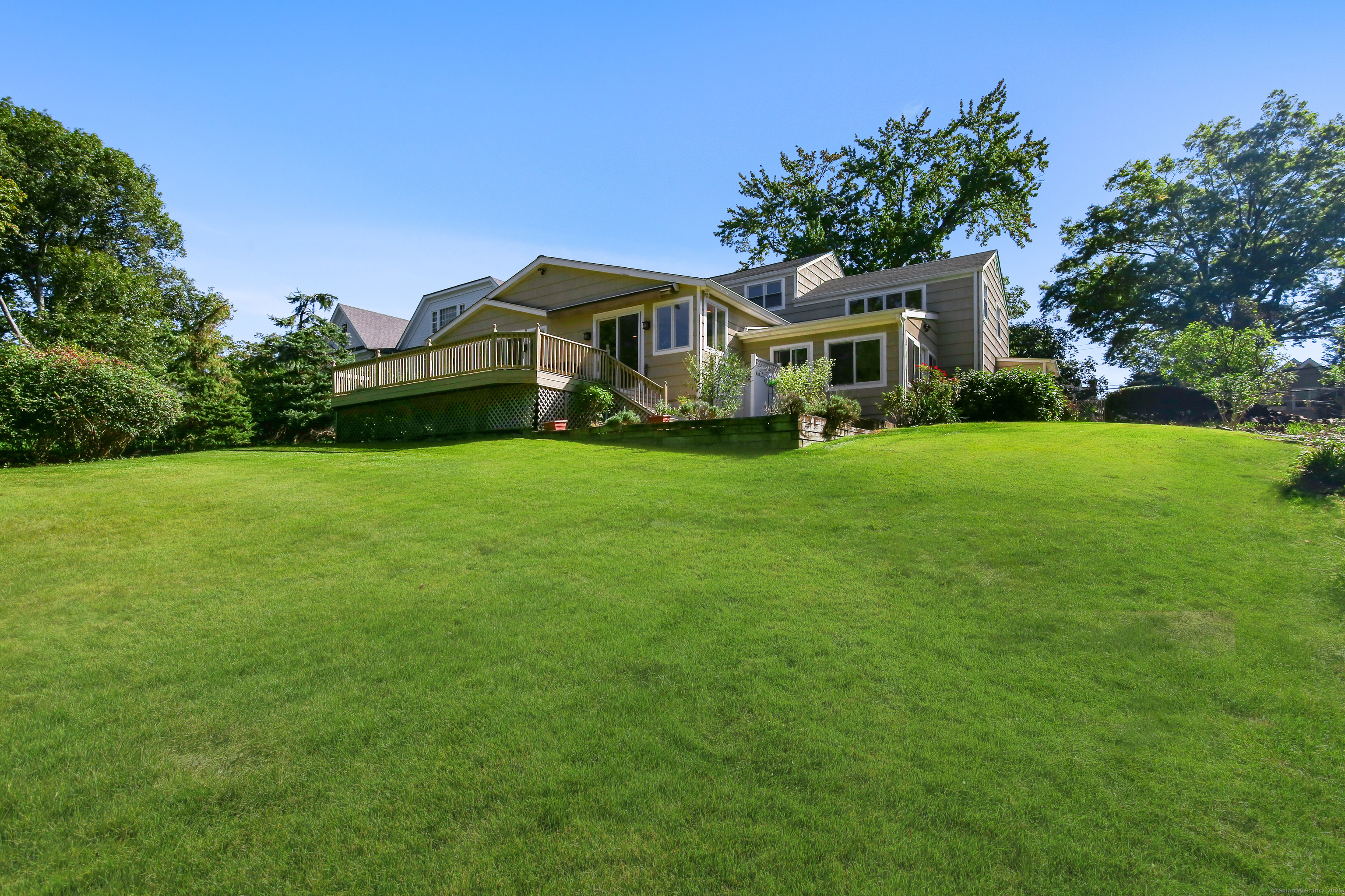 In Old Greenwich, ideally located in one of the area's most desirable neighborhoods, this charming Colonial sits on a .68-acre lot at the end of a peaceful cul-de-sac. It offers a perfect blend of timeless character and exciting potential. A gracious layout is enhanced by oversized windows and open spaces that flood the home with natural light. The main level features generous formal living and dining rooms, each with its own fireplace. A modern kitchen with center island connects seamlessly to the adjoining family room, which opens onto a spacious deck. Upstairs are four bedrooms, including a primary suite with an en-suite bath. The finished lower level includes a recreation area, full bath, and laundry. The expansive backyard adds even more appeal. Convenient to the village, schools, shops, and train.
