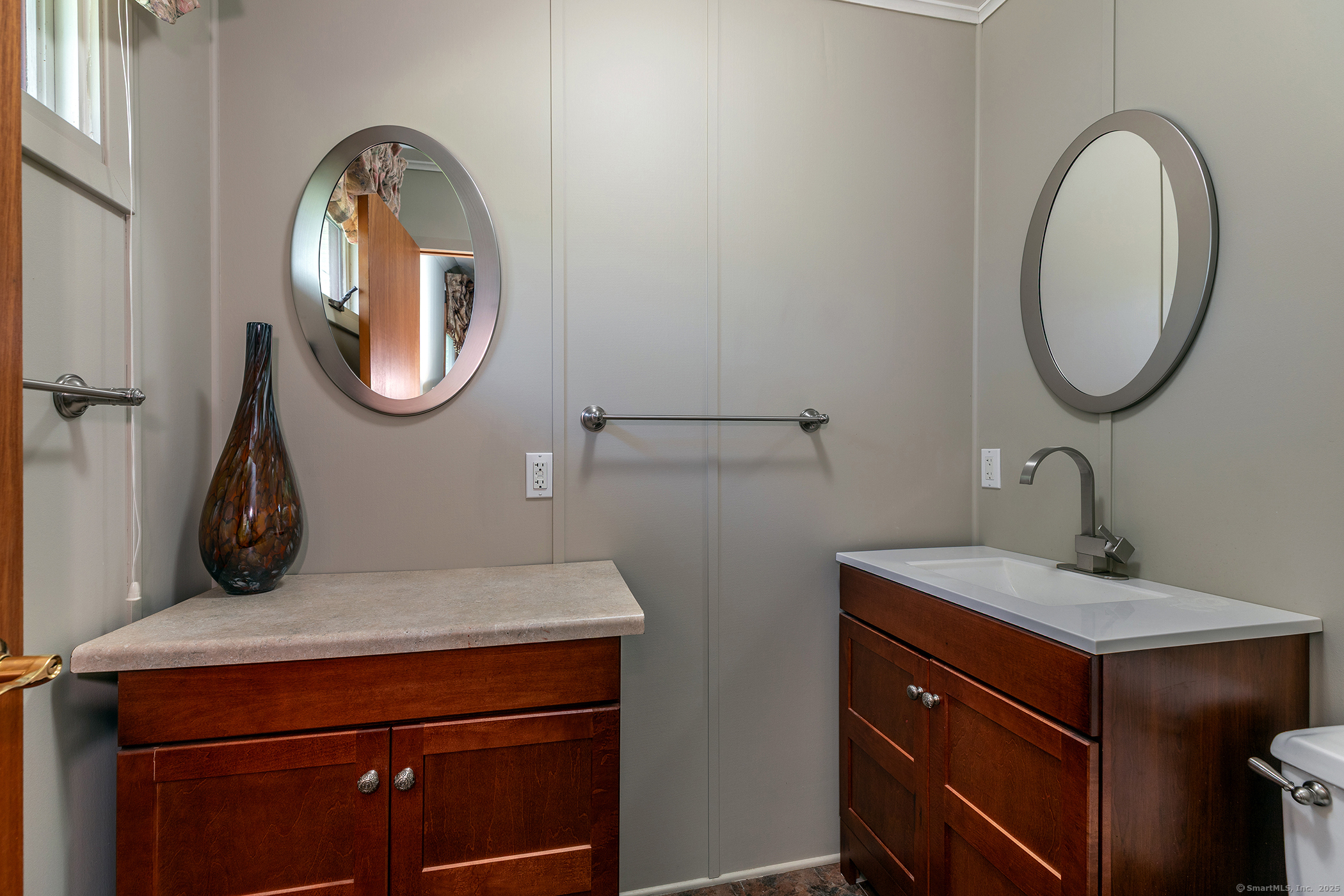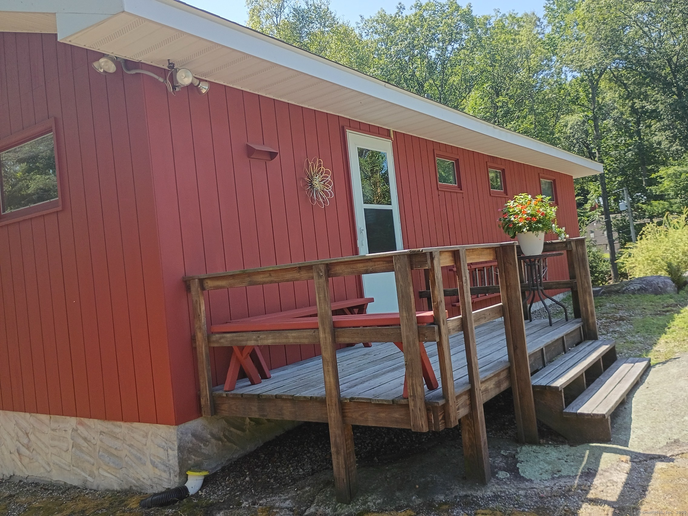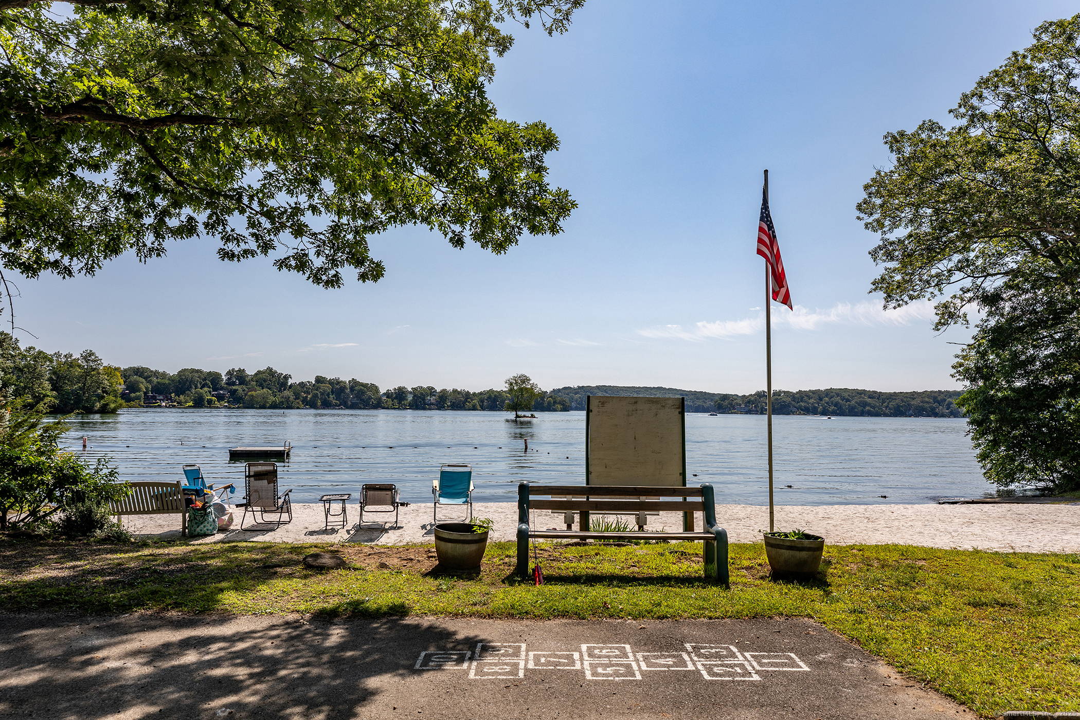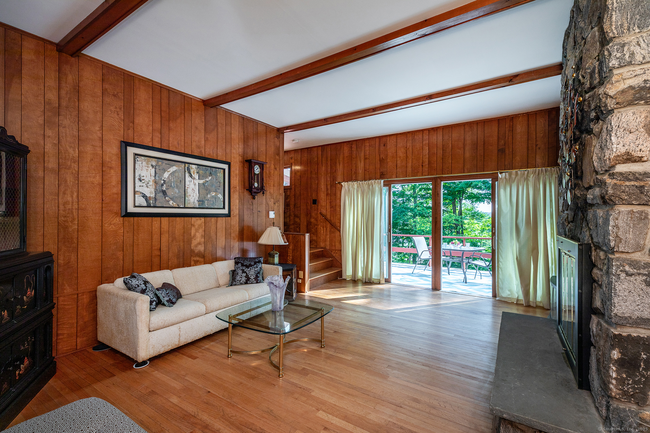 Nestled in the desirable Candlewood Lake Community of Hollywyle, 1 Sylvan Road offers a rare combination of privacy, very little traffic, lake charm, beach access and a boat dock slip (additional $200 a year). Set on a secluded multilevel lot, this 3 bedroom, 1.5 bath home is part of a private lake association that includes transferable multi-year dock rights, a beach picnic area and playground, perfect for enjoying the lake lifestyle all year long. The home's new roof (2018), ample levelish parking for 8-10 vehicles (unheard of in lake communities) and good sized decks off both the kitchen and living room make outdoor entertaining easy and enjoyable along with seasonal lake views. Inside, the home features an oversized step-down living room with 10' beamed ceiling, a stunning fieldstone wood burning fireplace and two sets of sliders that bring the outdoors right into the living room. The kitchen features a breakfast bar for 5 and a separate seating area for 6-10 guests. The home features three bedrooms including a spacious primary suite with crown molding, double closets, and a private half bath offering ample space to expand into a full bath if desired.The main bathroom has been thoughtfully updated with modern finishes including a granite countertop.Whether you're looking for a weekend retreat or a full time residence this home is the perfect balance of comfort/convenience and Candlewood Lake charm.Large lot which has street frontage on Sylvan Road as well as Candlewood Rd