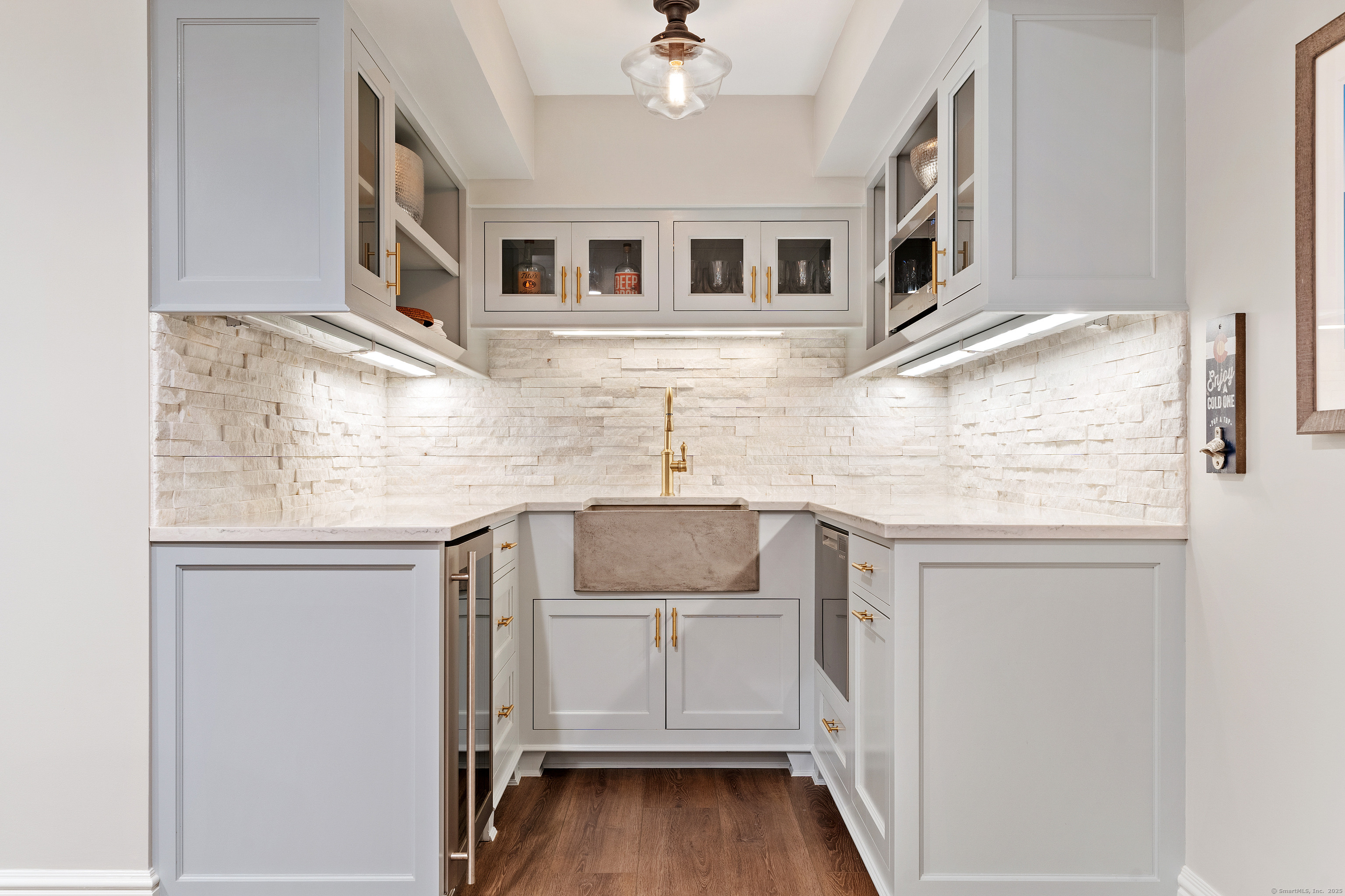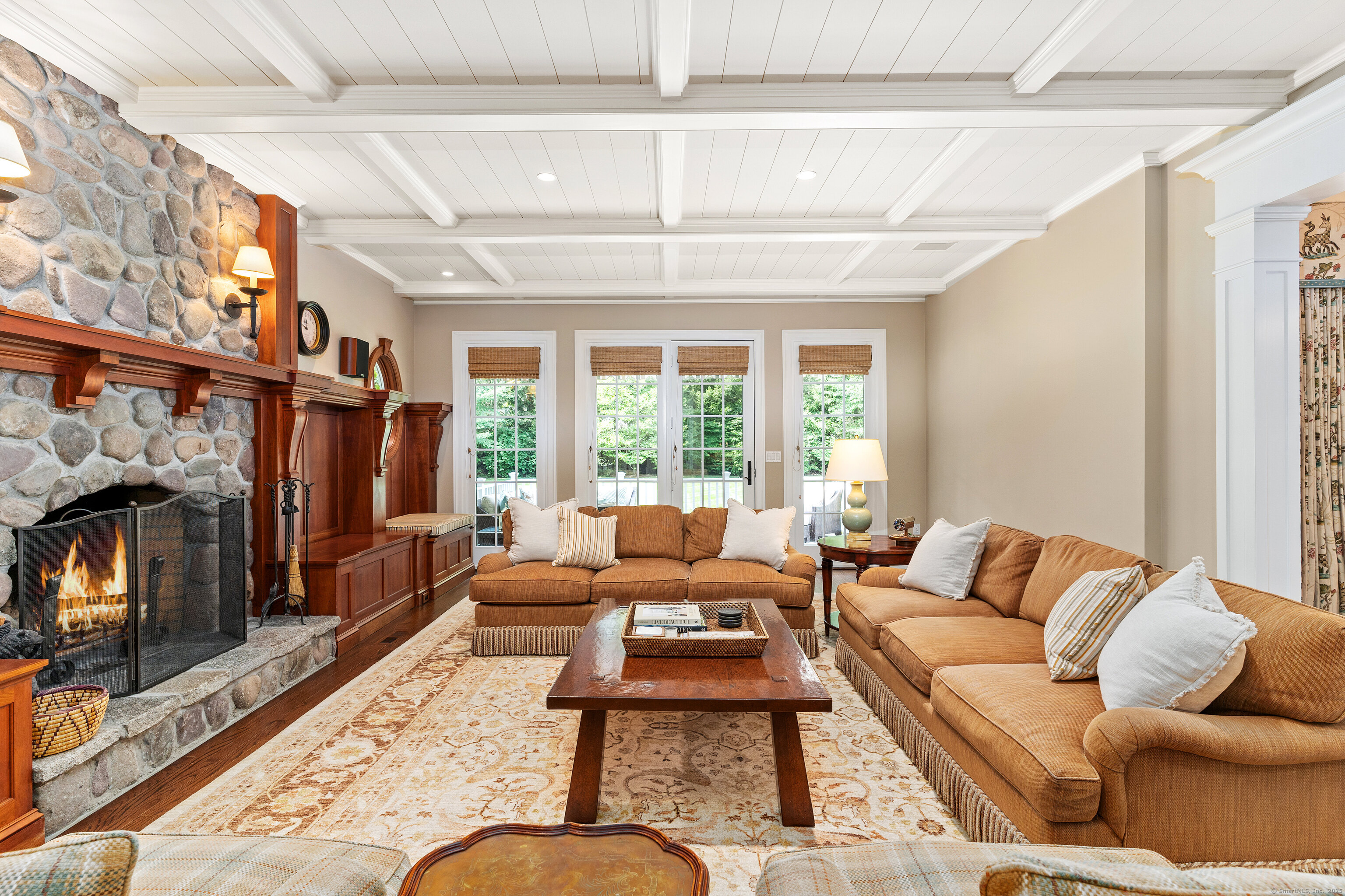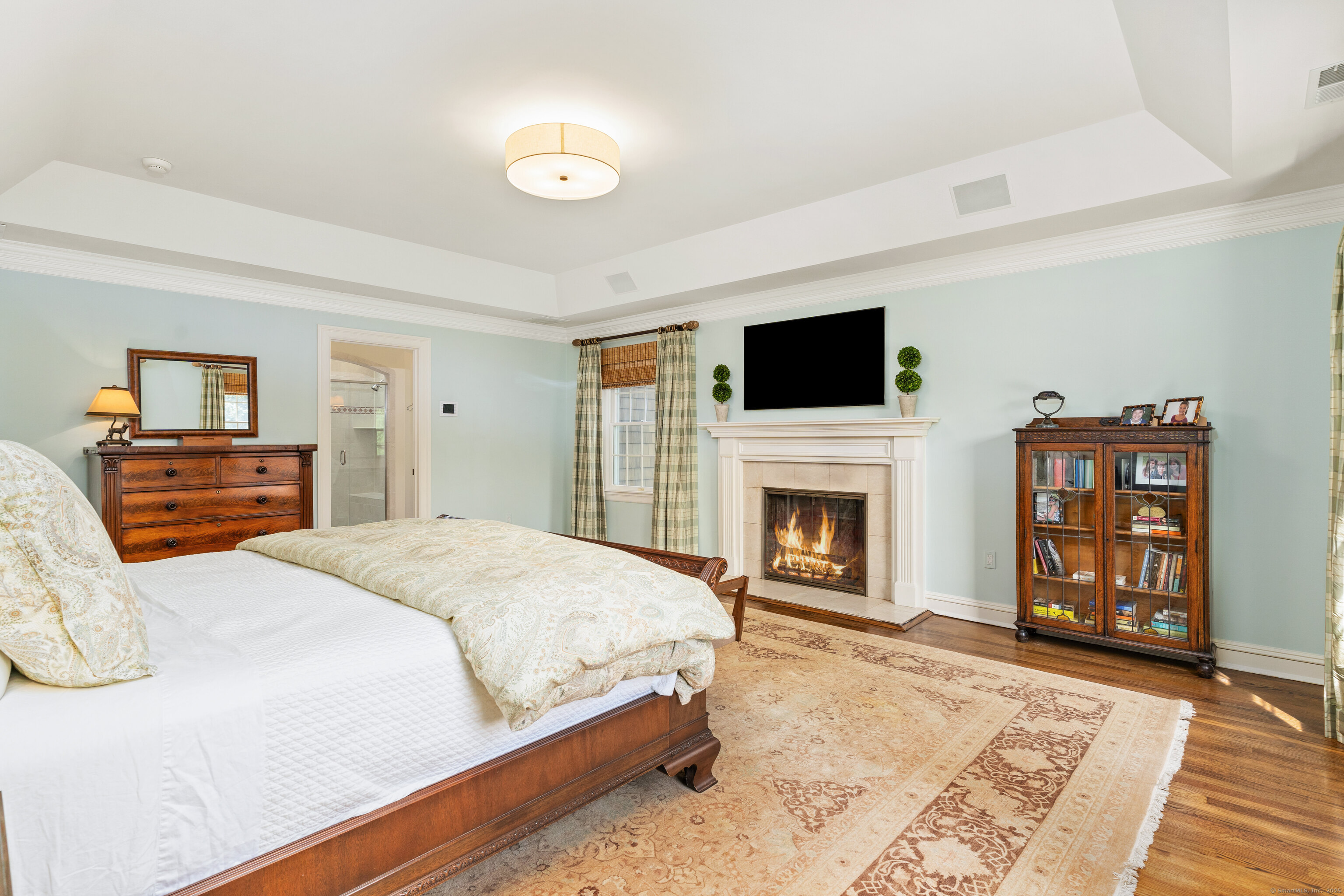 This stately 5 BR shingle style colonial with over 7000 sf in favored Sturges Ridge neighborhood is a memory-making treasure! With a level backyard that plays host to games, gardens and gatherings including a lobster bake, birthday parties with water slides, badminton, croquet, the view to witness joyful connection is endless. The home is a haven of warmth and sophistication, and offers large spaces for big groups and special smaller rooms for cozy togetherness. Have a crowd help you prepare a meal in the kitchen while the game is on in the handsome Family Room with rich coffered ceiling, stone fireplace and fully outfitted wet bar. The newly remodeled lower level entertainment center has a deluxe kitchenette with stone backsplash and quartzite countertop, dishwasher, fridge and sink, as well as plenty of storage in one of the cleanest basements you'll ever see. Large Primary BR Suite includes a gas fireplace, walk-in closet, full bath with double vanities and separate tub. All bedrooms are spacious with adjacent or ensuite bath, and the bonus room off back stairs can be anything you want: playroom, music room, dance studio-use your imagination! A special feature is the 3rd floor office with available business grade router and hard wired data/internet. Quiet, peaceful and a true getaway for focused working (and sometimes a little putting practice). These owners have been meticulous about maintaining their beloved house. The care is apparent, as is their true joy in living her