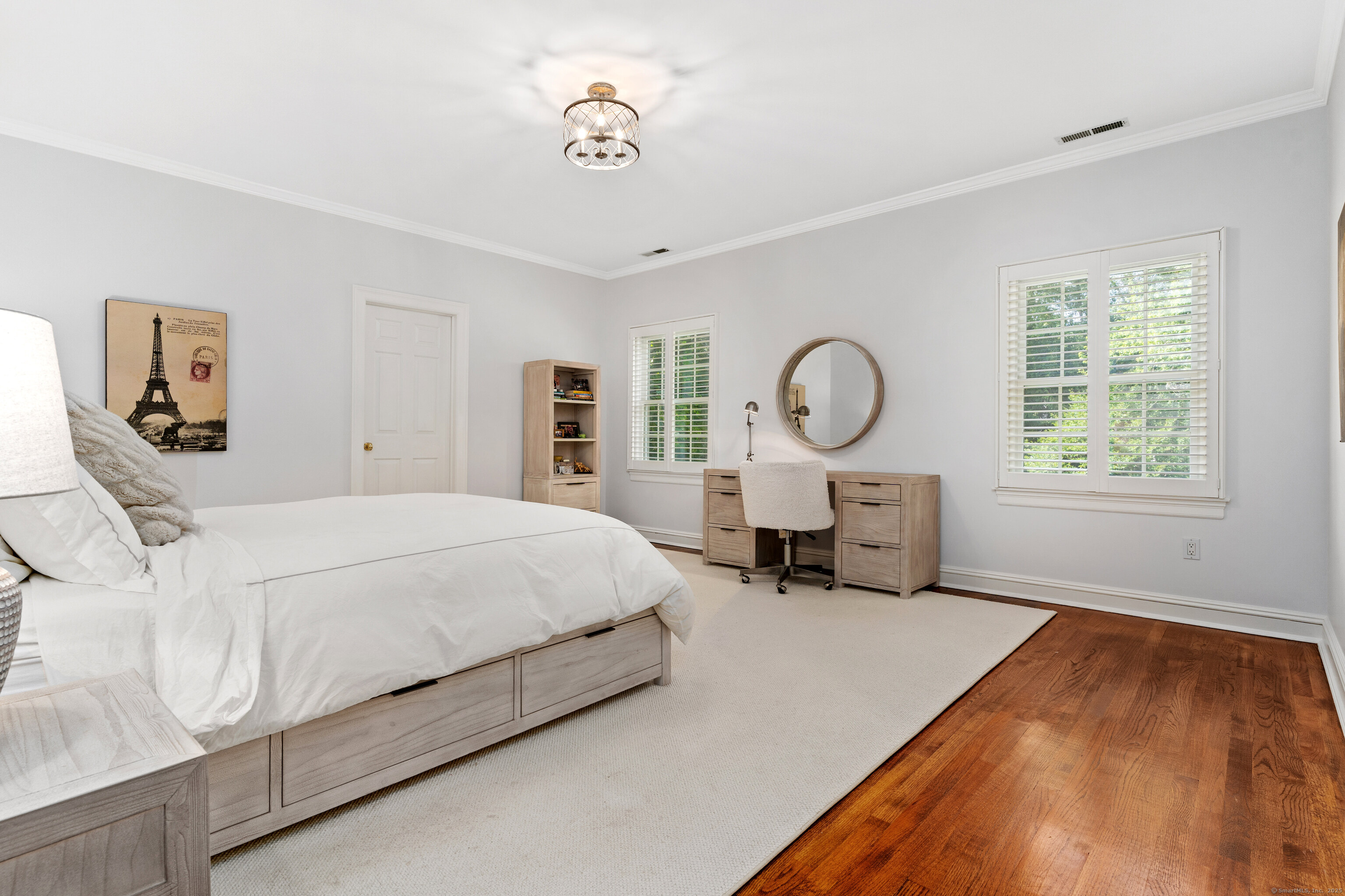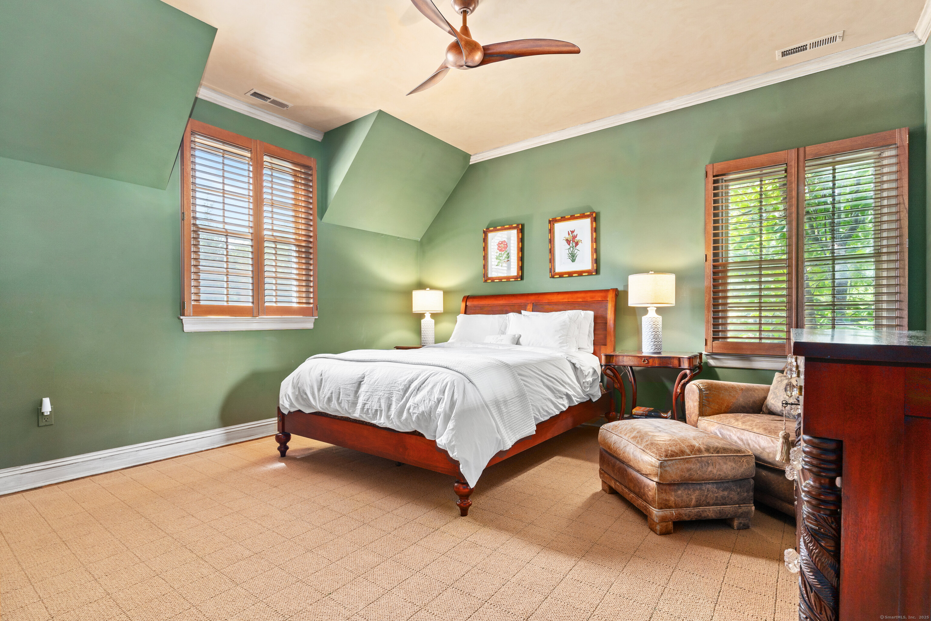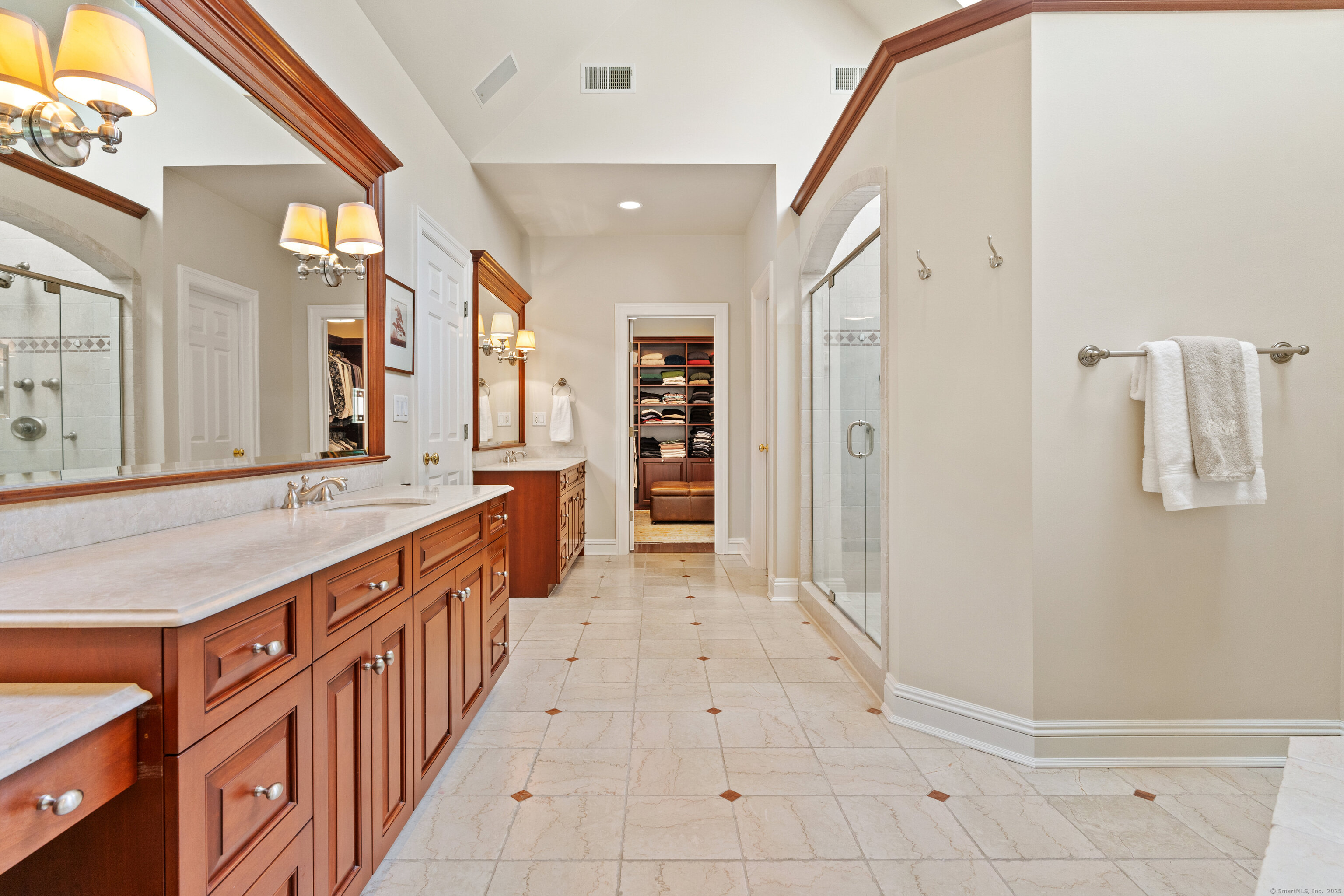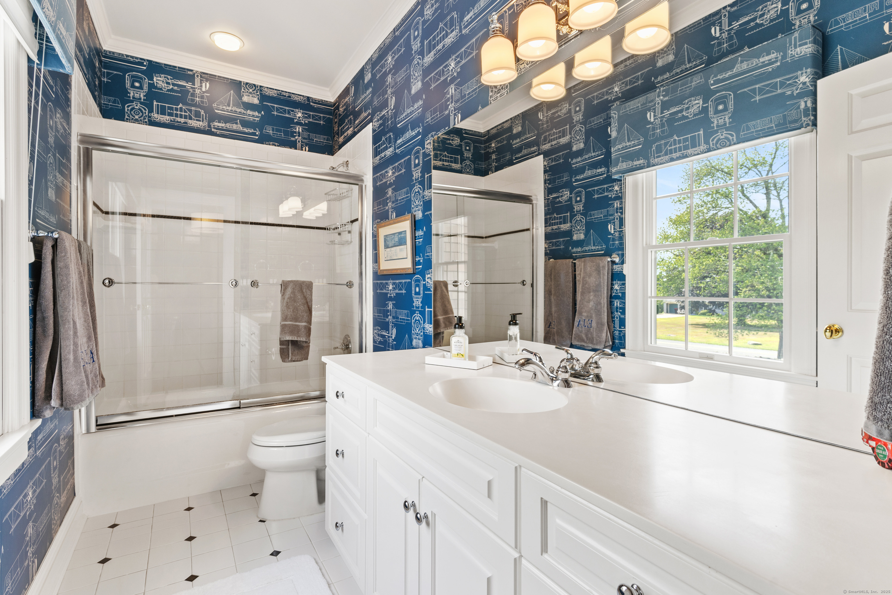 This stately 5 BR shingle style colonial with over 7000 sf in favored Sturges Ridge neighborhood is a memory-making treasure! With a level backyard that plays host to games, gardens and gatherings including a lobster bake, birthday parties with water slides, badminton, croquet, the view to witness joyful connection is endless. The home is a haven of warmth and sophistication, and offers large spaces for big groups and special smaller rooms for cozy togetherness. Have a crowd help you prepare a meal in the kitchen while the game is on in the handsome Family Room with rich coffered ceiling, stone fireplace and fully outfitted wet bar. The newly remodeled lower level entertainment center has a deluxe kitchenette with stone backsplash and quartzite countertop, dishwasher, fridge and sink, as well as plenty of storage in one of the cleanest basements you'll ever see. Large Primary BR Suite includes a gas fireplace, walk-in closet, full bath with double vanities and separate tub. All bedrooms are spacious with adjacent or ensuite bath, and the bonus room off back stairs can be anything you want: playroom, music room, dance studio-use your imagination! A special feature is the 3rd floor office with available business grade router and hard wired data/internet. Quiet, peaceful and a true getaway for focused working (and sometimes a little putting practice). These owners have been meticulous about maintaining their beloved house. The care is apparent, as is their true joy in living her