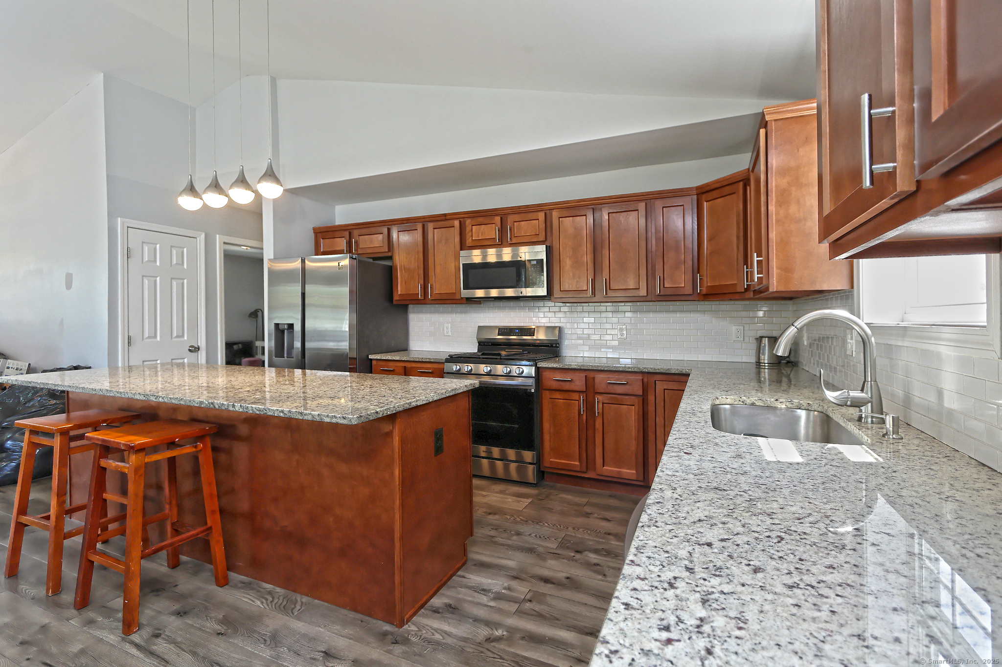 Built in 2022, stylish, move in ready and with plenty of space for multigenerational families! Move right into this tasteful home with over 2,500 sqft of living space with modern touches. The main floor features an open floor plan, vaulted ceilings with skylights, a chef's kitchen with granite counters, 6-ft island, a spacious primary suite with double vanity and walk-in shower, two generously sized bedrooms, a spacious hall bathroom with tub, laundry hookups and access to the large deck for outdoor enjoyment. The lower level is perfectly designed for families with space requirements for an extended family member or a separate living space with full amenities. This desirable living area features a family room/kitchenette, two spacious bedrooms, a large bathroom with walk-in shower, laundry hookups and access to the large patio for outdoor relaxation. Notable mentions include, zoned central air, and newly added solar panels that generate little to NO electric bill for energy efficiency. Centrally located, only a short ride to UNH, the VA Hospital, West Have's train station, and Town Green with vibrant shops/restaurants, only minutes to Yale, Downtown New Haven and beautiful West Haven sandy beaches! West Haven is experiencing incredible growth, check out these exciting upcoming projects adding long term value to the town and properties like this one here: https://www.cityofwesthaven.com/1407/Economic-Development.