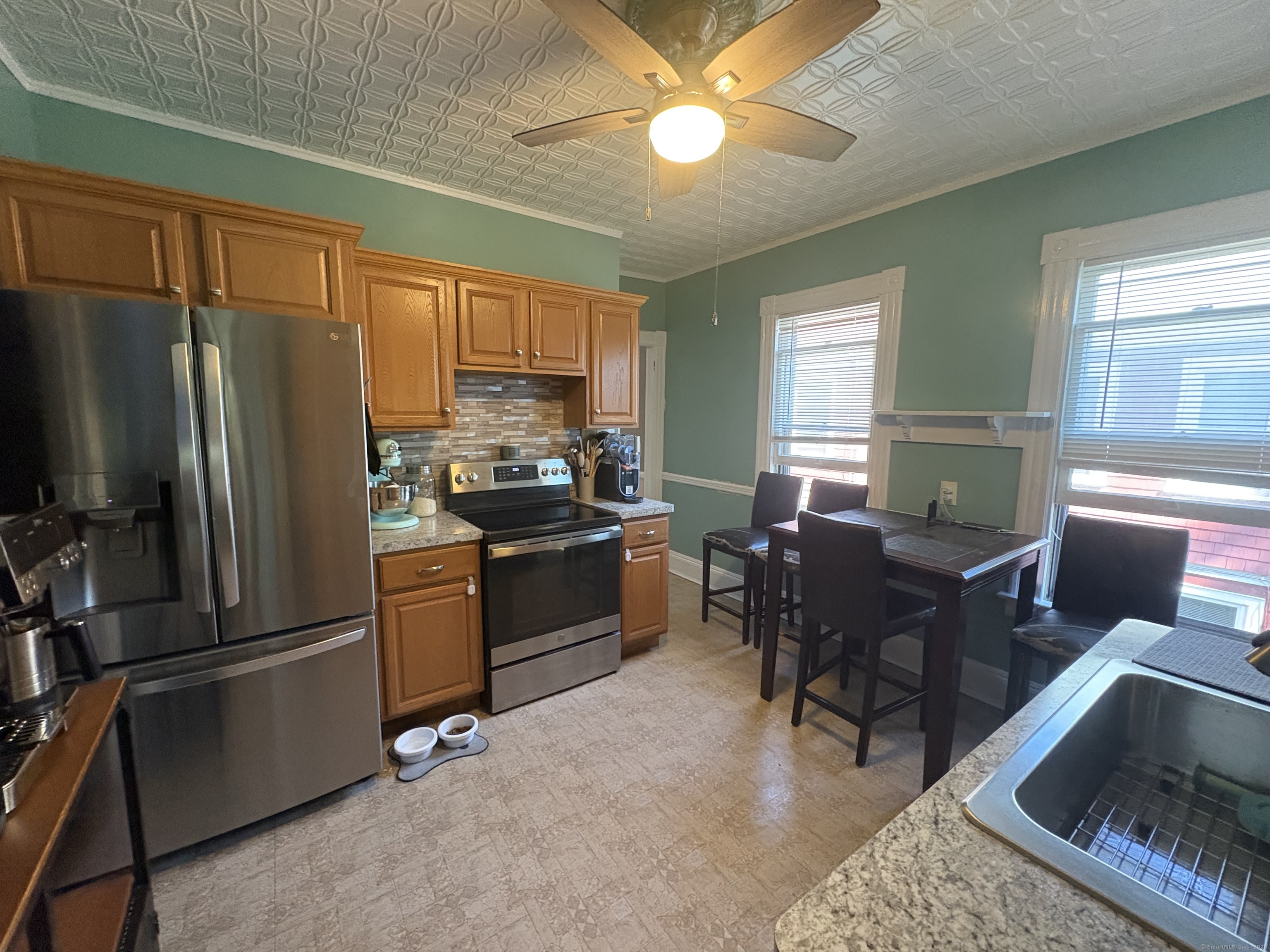 West end 2 family near Elizabeth Park. Three bedrooms, 1.5 baths on first floor, living room w fireplace, dining room and kitchen. Large front porch on first floor, laundry hook up in basement. 2nd floor has living room with fireplace, family room, front porch, dining room, kitchen w washer dryer in pantry area, full bath and two bedrooms. 2nd floor has staircase to 3 additional bedrooms and attic storage on 3rd floor. Bath possible on 3rd floor , plumbing in place for. Garages and additional parking in back. Separate furnace and utilities.