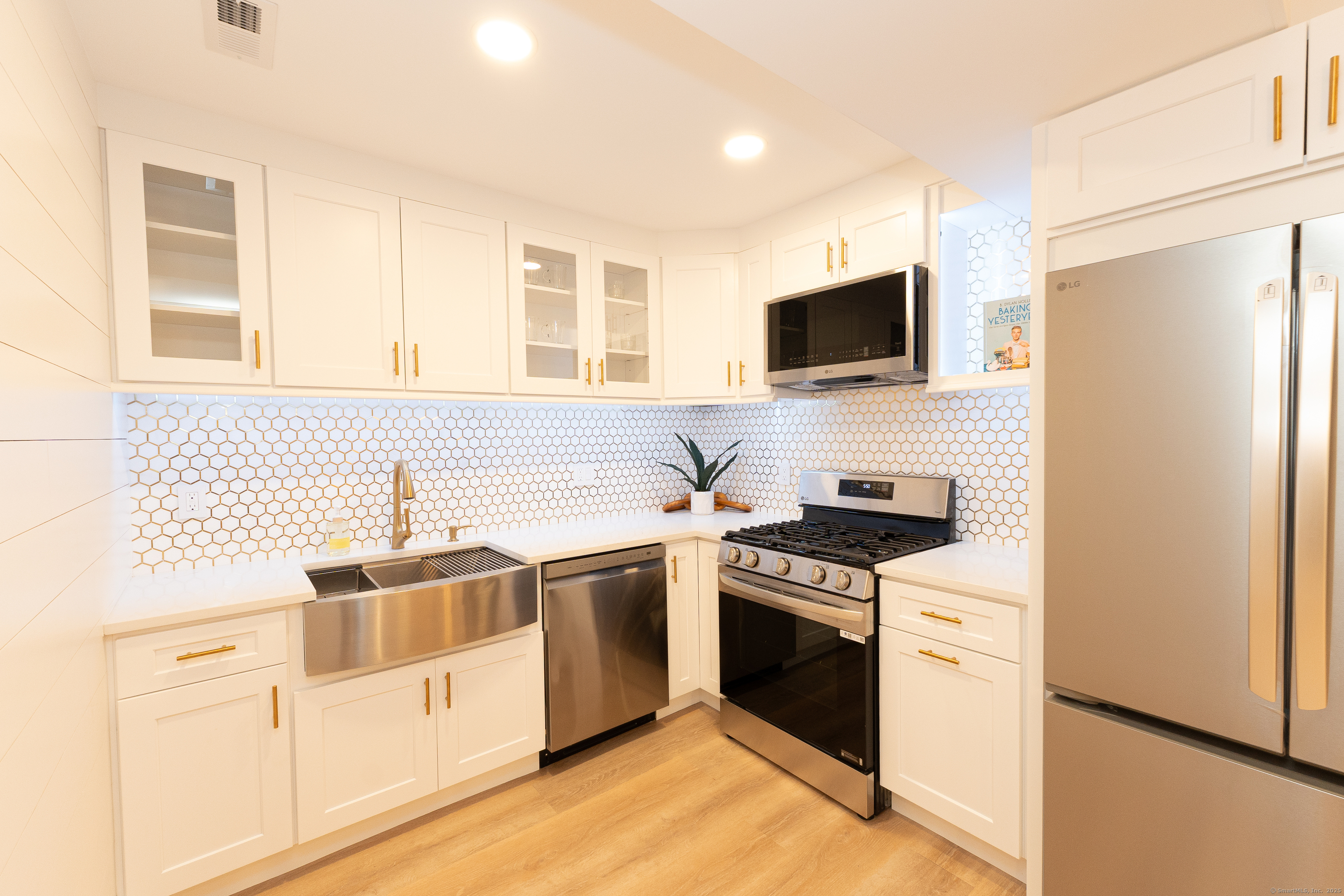 Welcome to this beautifully renovated 1-bed, 1-bath condo in the desirable Fox Hill community of Ridgefield, CT. Blending style and function, this home features an open layout that effortlessly connects living, dining, and kitchen spaces-ideal for both entertaining and everyday living. The kitchen is a true statement-maker, with honeycomb tile backsplash, sleek gold fixtures/hardware, and matching stainless steel appliances that bring in a classy, modern feel. The spacious bedroom offers plenty of room for rest and relaxation, while the home's design details elevate the space from every angle. The shower is adorned with floor-to-ceiling tile, a frameless full glass door, and a spa-worthy setup complete with a rainfall shower head, body jets, and handheld wand-all accented in luxurious gold. Not to mention the heated toilet and gorgeous custom vanity. But THE place to be is the living room. Electric fireplace, built-in speakers, hidden AV/cable setup behind TV... a fantastic open space to dress up however you like. Truly a room to LIVE in. Living in Fox Hill means enjoying not just your beautiful home, but also Ridgefield's exceptional offerings. You're just minutes from downtown Ridgefield's boutique shops, Ridgefield Playhouse performances, local farmers' markets, and the Aldrich Contemporary Art Museum. Outdoor lovers will appreciate the nearby Ballard Park, hiking trails, and scenic nature preserves. You cannot miss this, come take a look today!