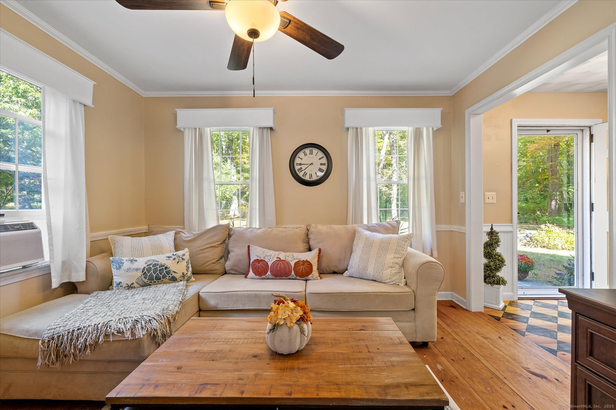 Tucked away on a quiet country road just off historic Route 169, this Gambrel-style colonial offers over 2,200 sq. ft. of living space on 1.36 acres. Built in 1971, it features a classic floor plan with generous room sizes and timeless New England appeal. The first floor includes a spacious living room, dining area, and kitchen ready for your personal touch. Upstairs, the primary bedroom offers a walk-in closet and private bath, while three additional bedrooms and a full guest bathroom provide flexibility for family, guests, or office space. A half bath and laundry are conveniently located on the main level. Solid construction, a peaceful setting, and regional accessibility make this home stand out. Less than an hour to Hartford, about 90 minutes to Boston, and just 46 minutes to Providence, it's the perfect balance of quiet country living with easy connections to nearby cities.