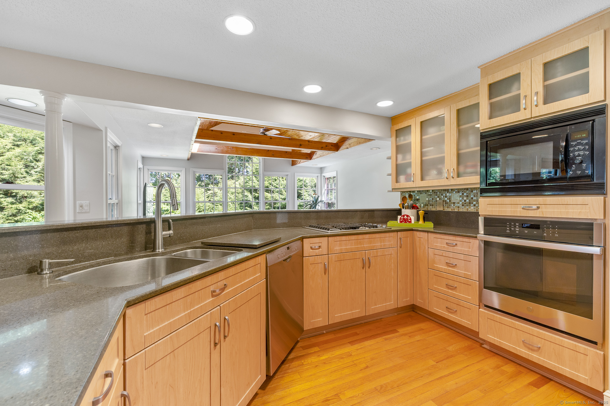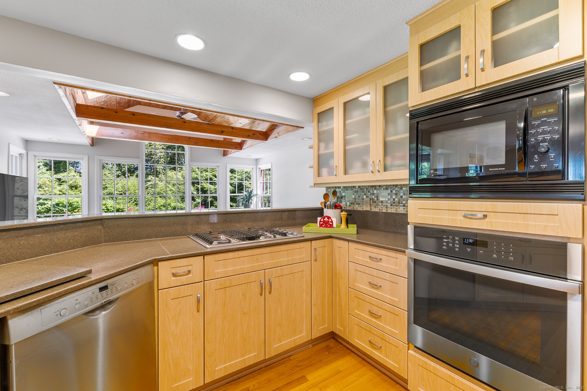 This beautifully maintained 3 bedroom, 2 full bath Ansaldi colonial located in the tranquil Highland Park setting, offers a spacious great room with a stunning cedar ceiling and access to the modern deck. Inviting family room that flows into the outdoor living space. Updated kitchen (2015) with Silestone counters, gas range and pull out drawers complements the home's bright and open layout, while the two-car garage offers direct access to the house and includes electric doors for ease and convenience. Additional highlights include a full walk-up attic with a whole-house attic fan, a Vermont Castings natural gas stove with remote control, and a whole house Kohler standby generator connected to natural gas gives a peace of mind. The home's exterior is beautifully landscaped with a fully fenced backyard, creating a private retreat. Enjoy year-round comfort with gas heat, central air, and two-zone thermostats. New water heater 2018. A roof heating system helps melt snow and ice, and the in-ground irrigation system ensures the English garden-inspired and landscaping stay lush and vibrant. An enclosed shed with double doors attached to the garage provides additional storage, while the newly paved driveway enhances the home's curb appeal. Natural gas heat, c/air. Here you have it all with the peaceful setting, practical upgrades, and stylish finishes. Only steps away from popular historic Case Mountain trails and its rushing waterfall plus the East Coast Greenway trails.