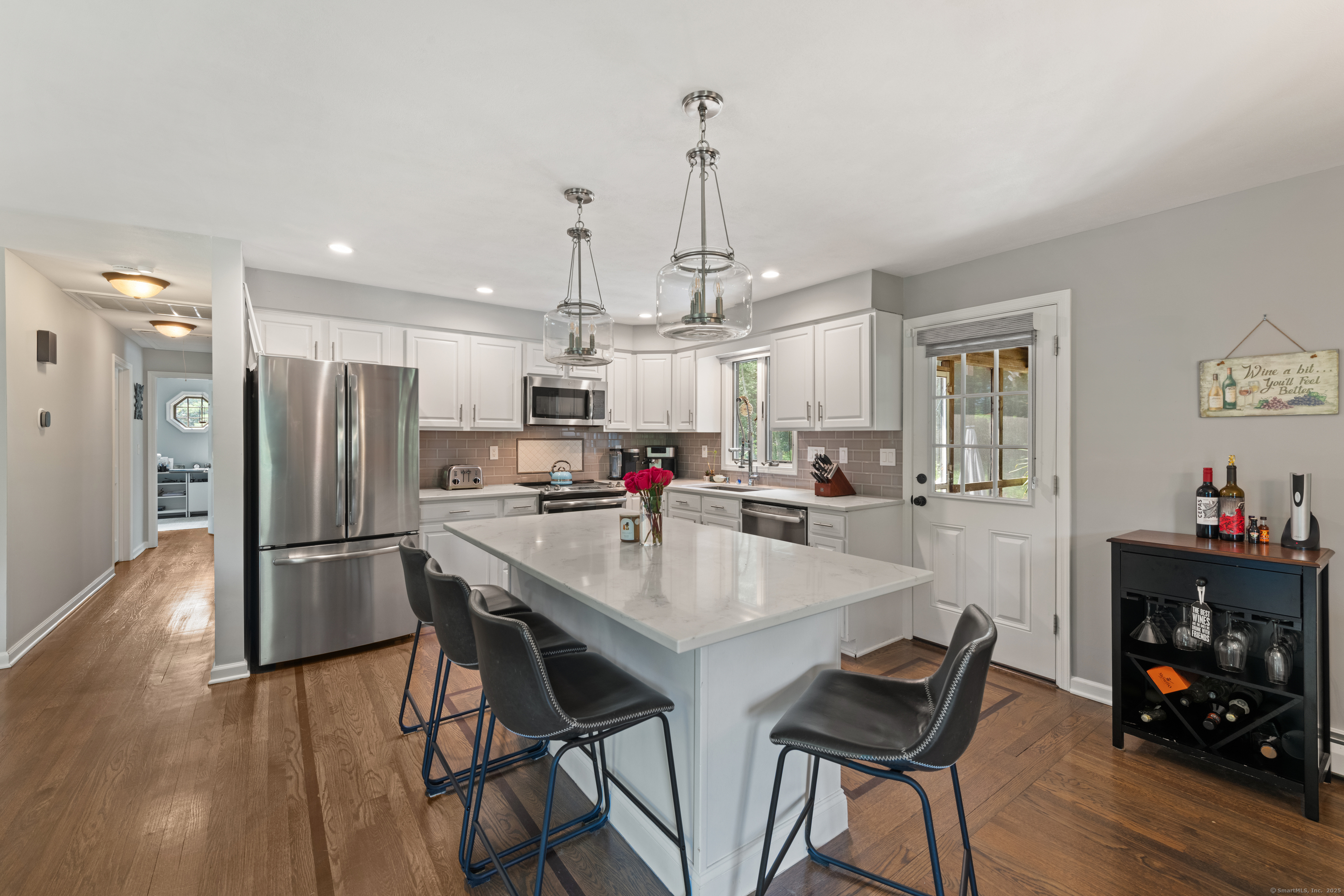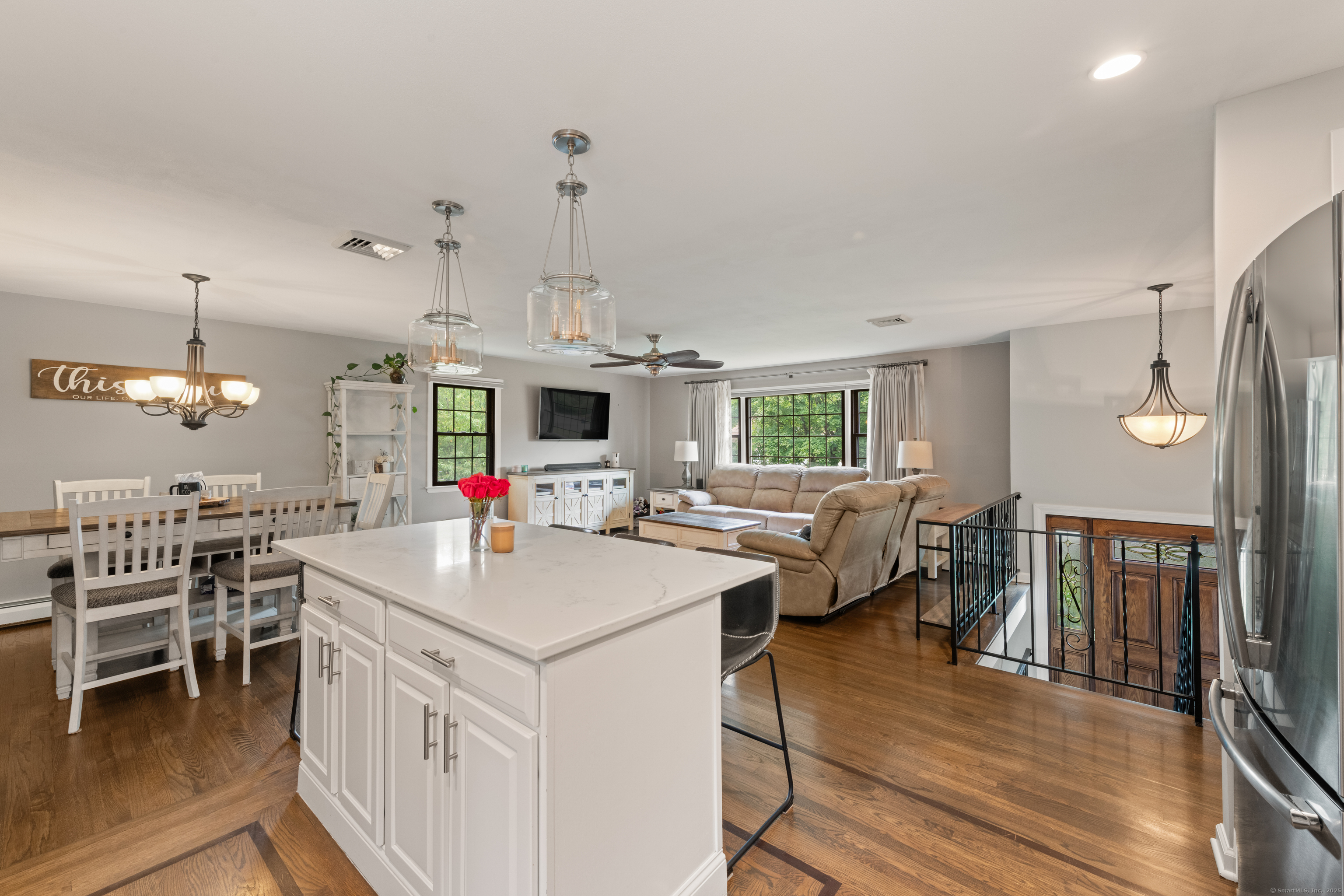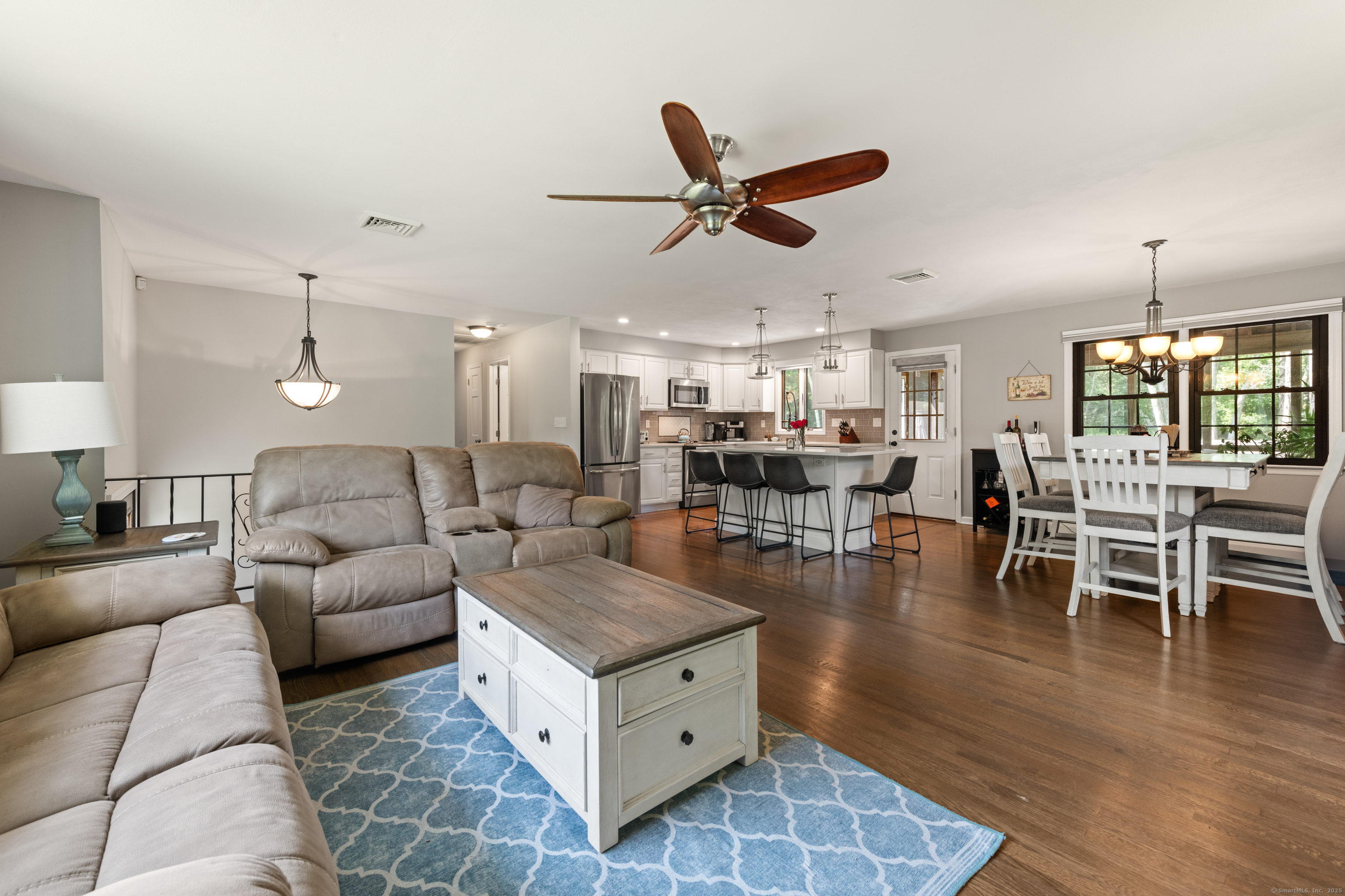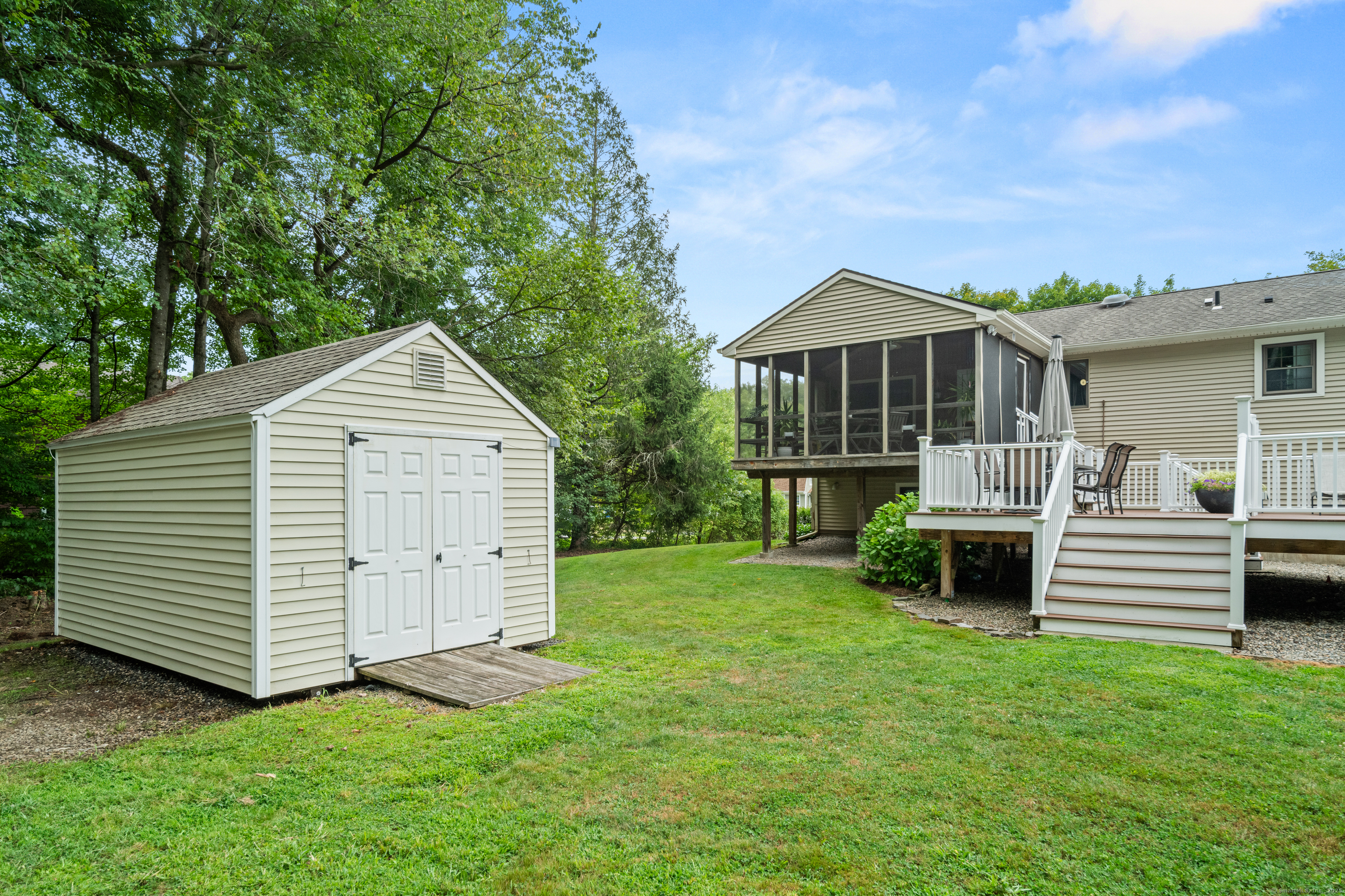 Just what you've been waiting for! Welcome to 43 Old Castle Drive - a stunning 3-bedroom, 2.5-bath raised ranch offering 2,428 sq. ft. of beautifully updated living space on a full acre in one of Monroe's most desirable cul-de-sacs. This home is the perfect blend of style, comfort, and function, with upgrades that make it truly move-in ready. Step inside and fall in love with the open floor plan, where gleaming hardwood floors and abundant natural light create a warm, welcoming feel. The remodeled kitchen is a showstopper - featuring crisp white shaker cabinets, stainless steel appliances, and a spacious center island with seating. Perfect for entertaining, it flows seamlessly into the dining room and bright living room, making every gathering feel effortless. Your outdoor retreat awaits! Enjoy morning coffee or summer dinners in the 3-season screened porch while overlooking your private backyard. Host unforgettable summer parties on the Trex deck or take a dip in the above-ground pool. A large storage shed keeps everything neatly tucked away. The expansive lower level is designed for today's lifestyle - complete with a cozy family room and angled fireplace, media room, a large home office, and a full laundry area. Additional must-haves include central air, natural gas heat, an attached 2-car garage, and public water with 2 year old septic. * HIGHEST AND BEST DUE 10/7 by 7pm