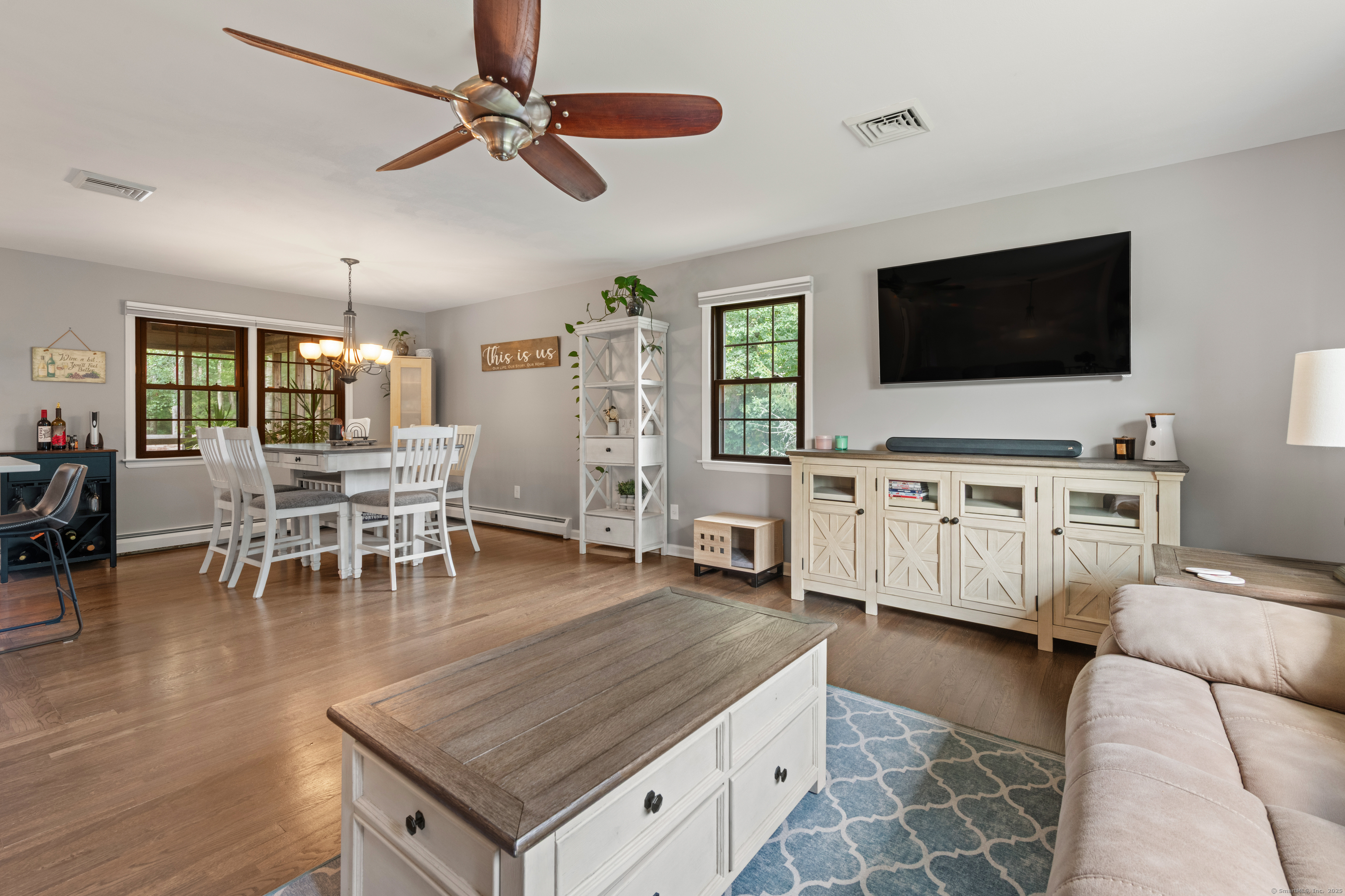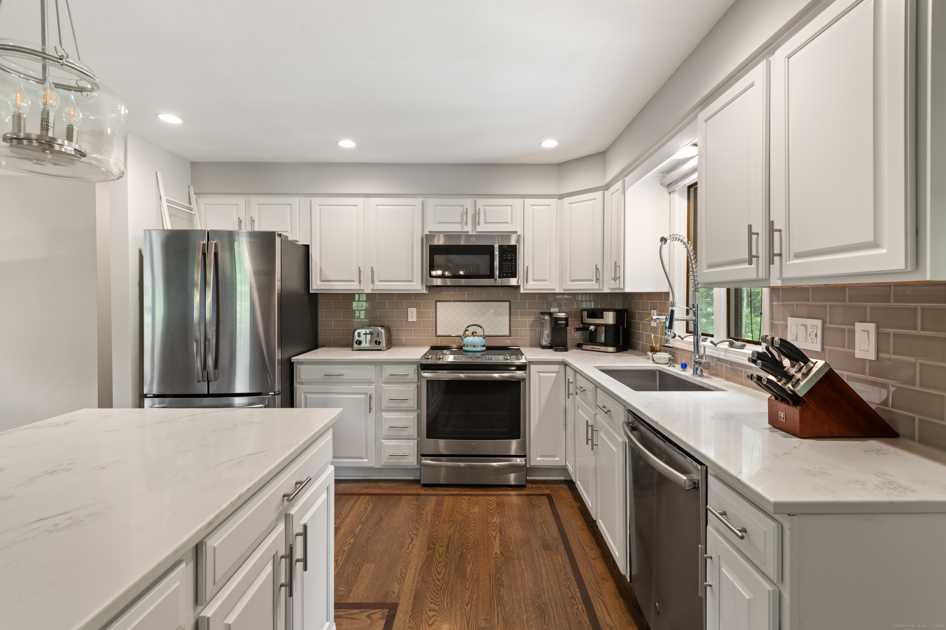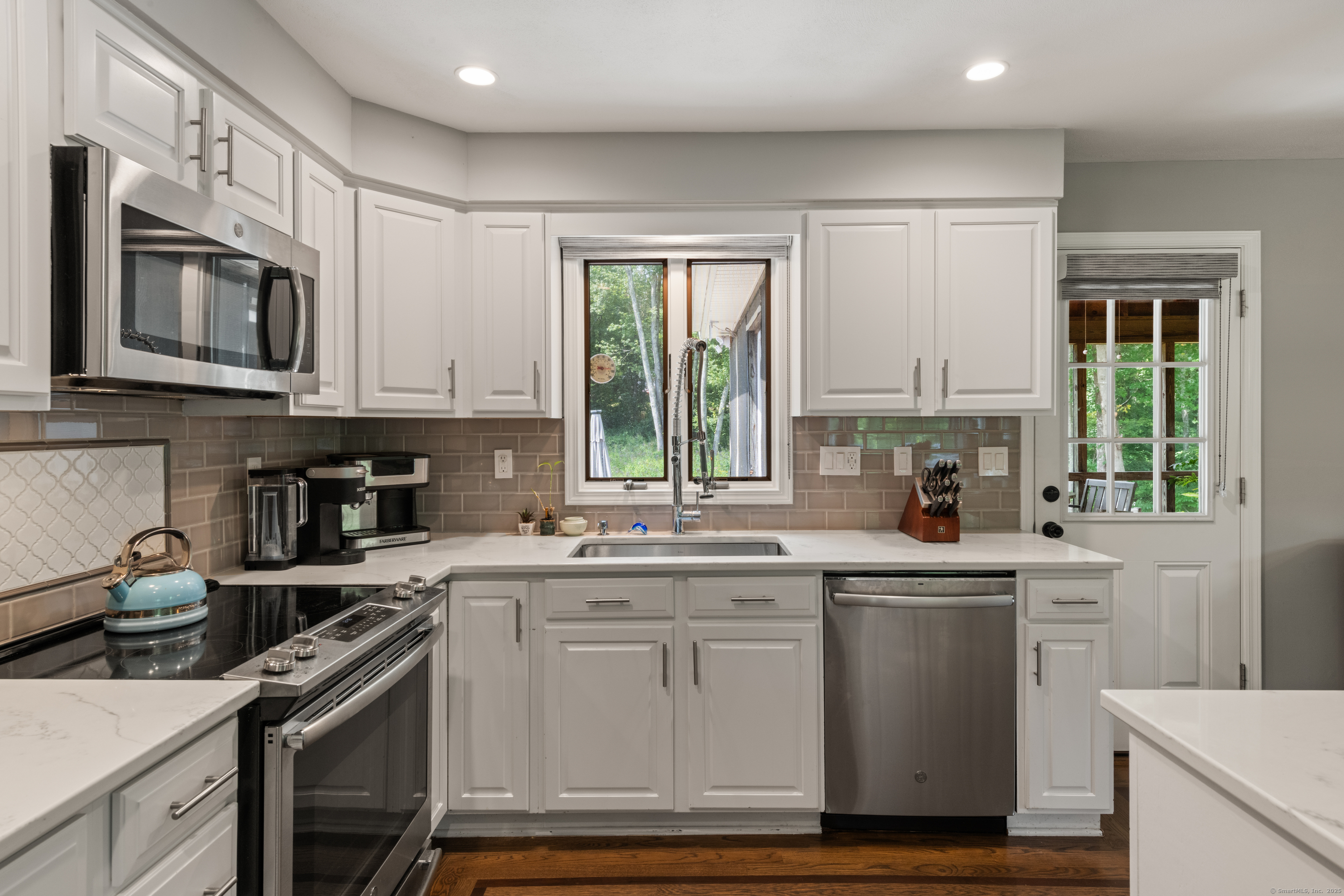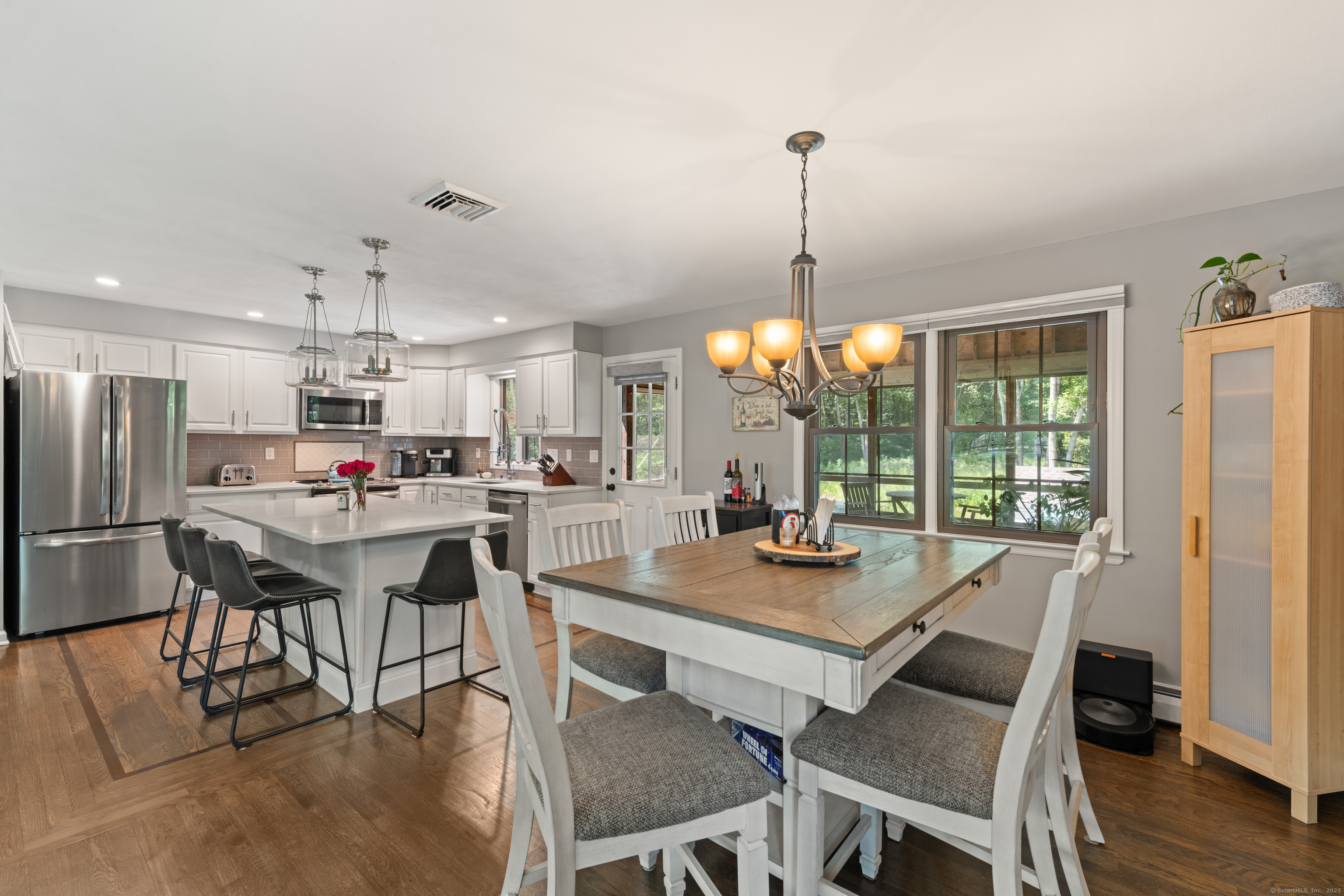 Just what you've been waiting for! Welcome to 43 Old Castle Drive - a stunning 3-bedroom, 2.5-bath raised ranch offering 2,428 sq. ft. of beautifully updated living space on a full acre in one of Monroe's most desirable cul-de-sacs. This home is the perfect blend of style, comfort, and function, with upgrades that make it truly move-in ready. Step inside and fall in love with the open floor plan, where gleaming hardwood floors and abundant natural light create a warm, welcoming feel. The remodeled kitchen is a showstopper - featuring crisp white shaker cabinets, stainless steel appliances, and a spacious center island with seating. Perfect for entertaining, it flows seamlessly into the dining room and bright living room, making every gathering feel effortless. Your outdoor retreat awaits! Enjoy morning coffee or summer dinners in the 3-season screened porch while overlooking your private backyard. Host unforgettable summer parties on the Trex deck or take a dip in the above-ground pool. A large storage shed keeps everything neatly tucked away. The expansive lower level is designed for today's lifestyle - complete with a cozy family room and angled fireplace, media room, a large home office, and a full laundry area. Additional must-haves include central air, natural gas heat, an attached 2-car garage, and public water with 2 year old septic. * HIGHEST AND BEST DUE 10/7 by 7pm