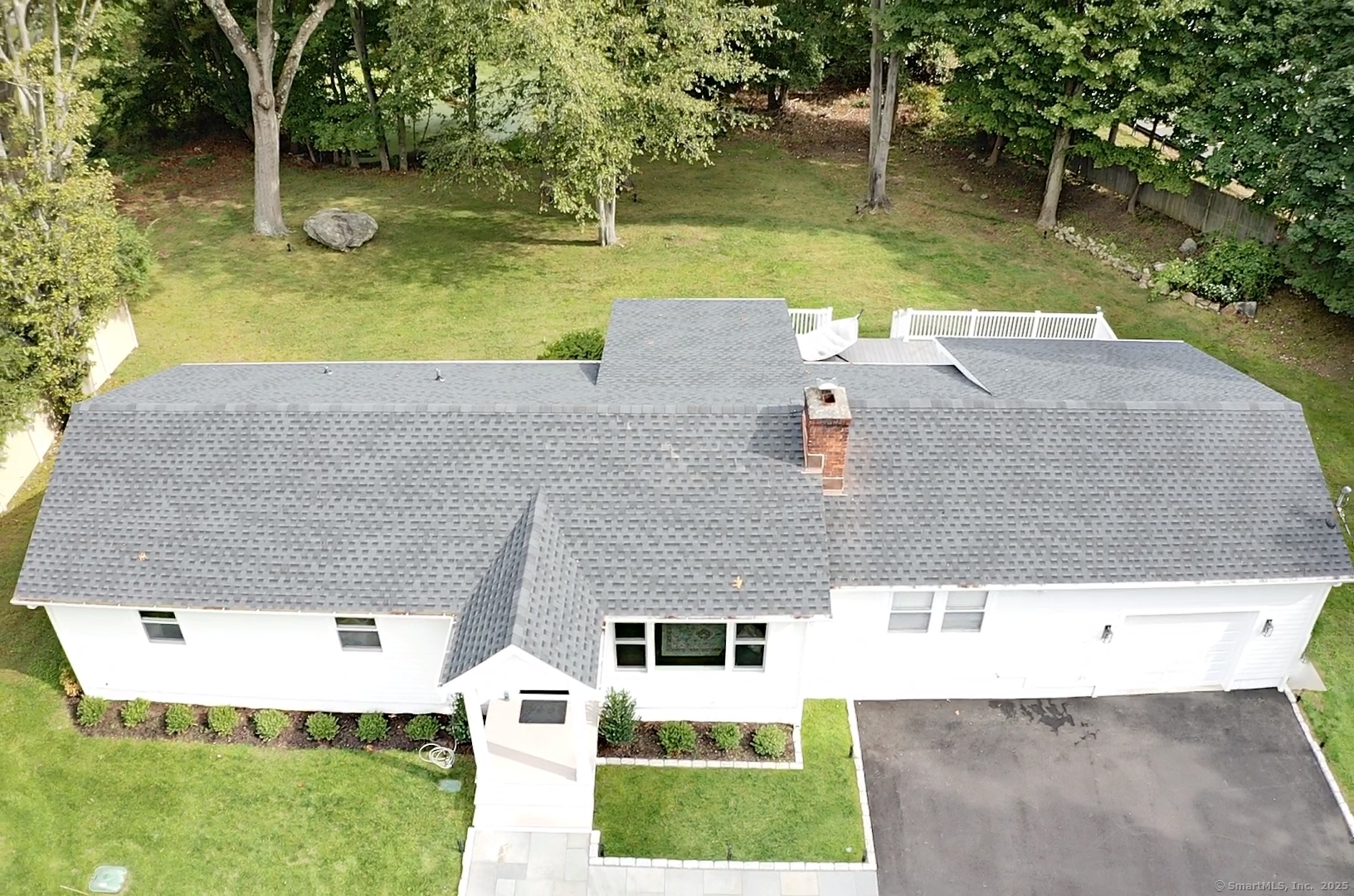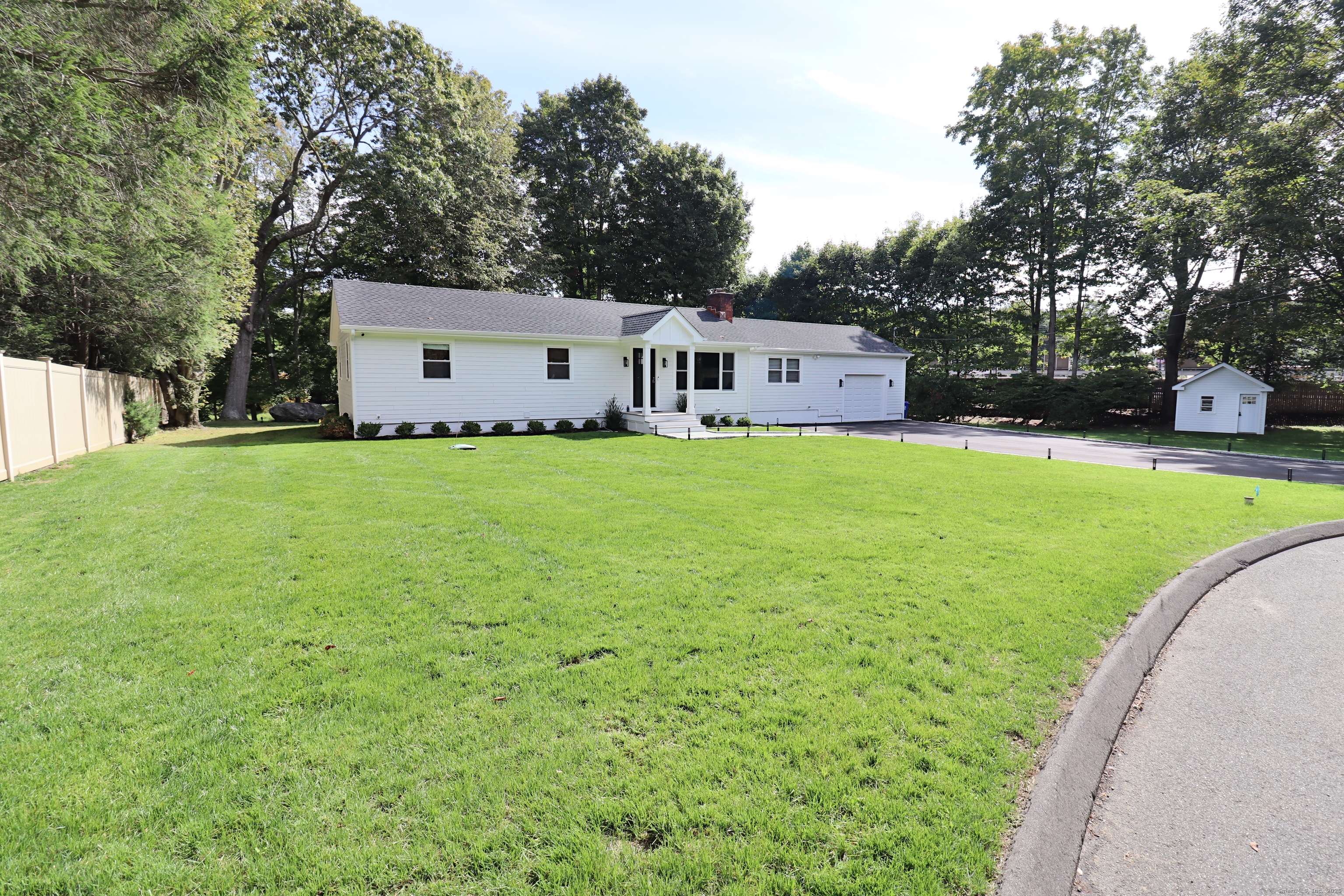Welcome to a refined Elegance Nestled at the end of a cul-de-sac in Norwalk, the Village of Rowayton. This charming, exquisite ranch-style home is perched on 0.46 acres, with a 2,264 sq ft of spacious Sunlit Classic ranch Layout, meticulously updated modernly. This jewel features three serene bedrooms, two full baths, an office, a gym, a family room, charming kitchen upgrades, and an open living room anchored by a warm and cozy fireplace. Refined hardwood floors throughout and vinyl downstairs, heated tile floors in both bathrooms, a separate laundry room upstairs and downstairs. New system features include baseboard gas heating, a zoned central air system, Tankless water heating, a camera network station, driveway lights, walkway lights, a New Roof, Gutters, a Deck, a sprinkler system throughout the new landscaped yard, back yard lighting, and a separate barn/shed with finished space. The downstairs delivers a blend of charm, convenience, and serene sophistication, with an additional bedroom, office, storage, laundry room, and family space. Attached to an updated garage offering practical space and storage. Slip out to Harmony's bright three-season sun porch, step onto the beloved large deck that overlooks a lush backyard atmosphere.