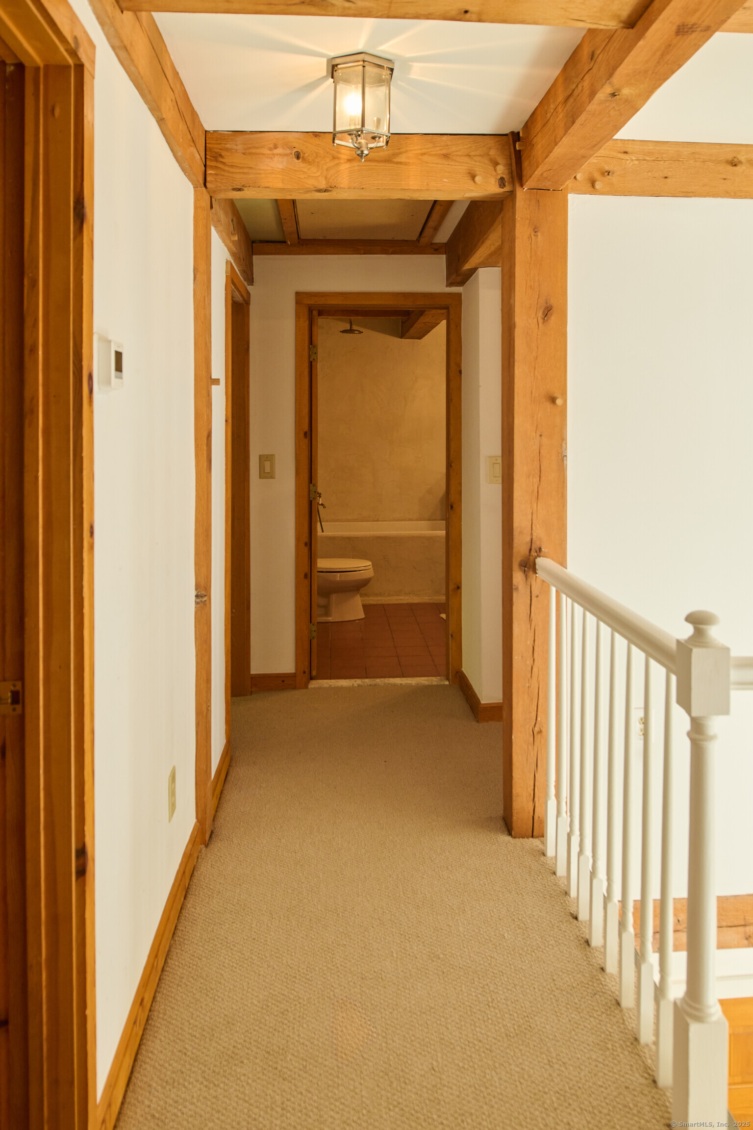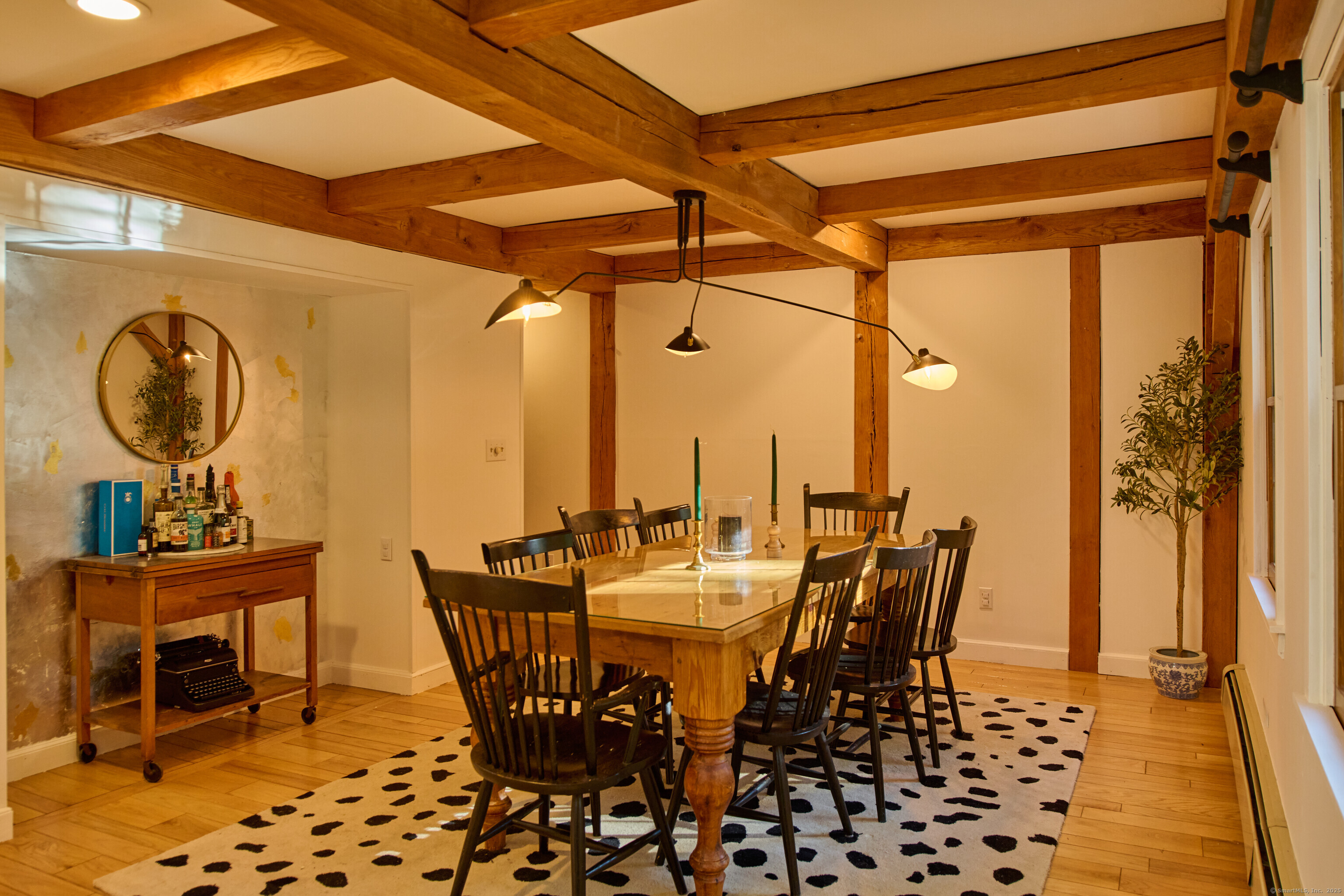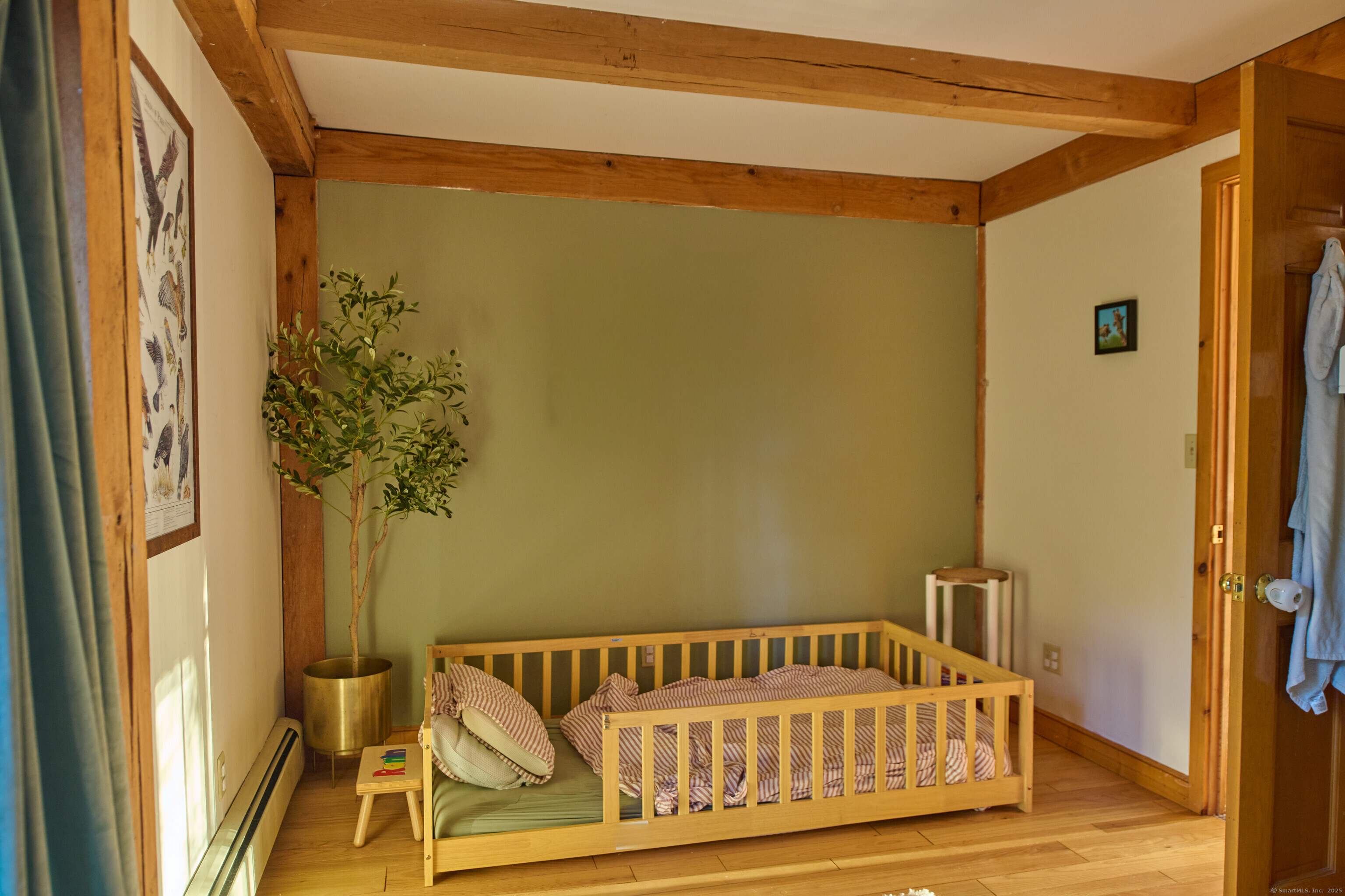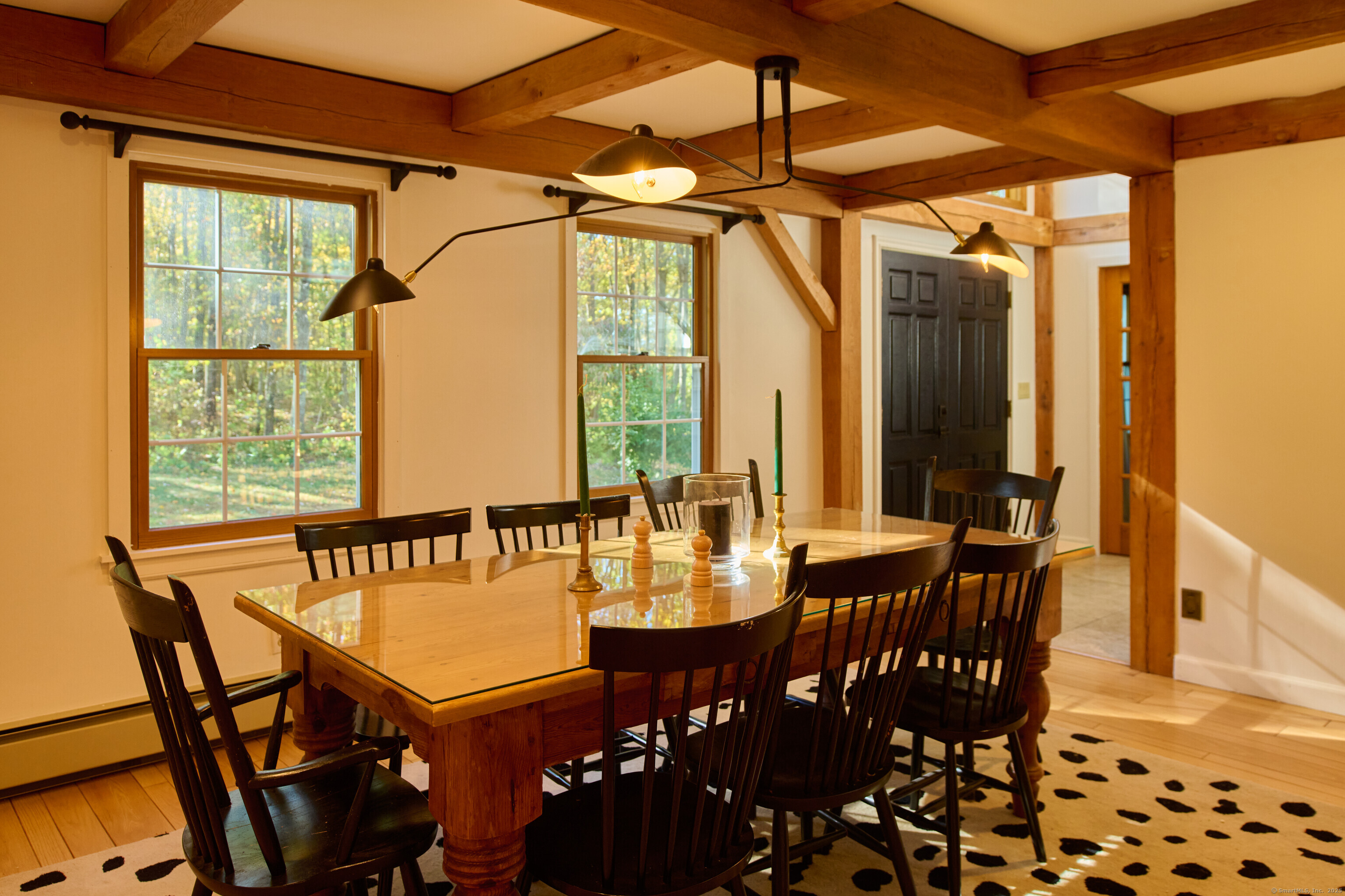 Stunning Post & Beam Home with Extensive Upgrades. This beautifully updated Post & Beam residence offers exceptional craftsmanship and modern amenities throughout. Over the past five years, the home has received numerous enhancements, including a new roof, remodeled kitchen with tile flooring, all-new Pella windows and doors, asphalt driveway, 5-zone LP boiler, central A/C unit, and more. The inviting interior centers around a dramatic two-story stair hall and an expansive Great Room with a cathedral ceiling and wood-burning fireplace-ideal for entertaining or relaxing evenings. Adjacent is a fully renovated eat-in kitchen featuring a large center island with honed granite countertops, custom cherry cabinetry, and premium appliances. Additional main-level highlights include a formal dining room and a private study with its own fireplace. Upstairs, four spacious bedrooms showcase exposed beams and hardwood floors. The primary suite includes a wood-burning fireplace and a private en-suite bath. A one-bedroom apartment above the garage with a separate entrance adds flexibility for guests or rental income. Energy-efficient features include R-26 insulated walls, Pella thermopane windows, LP heating, and solar PV panels. Additional amenities include a 2.5-car garage, central vacuum, screened porch, and five cedar closets. Set on a serene, wooded 3-acre lot with mature landscaping, the property offers privacy and convenience - just 15 minutes from shopping and I-84.