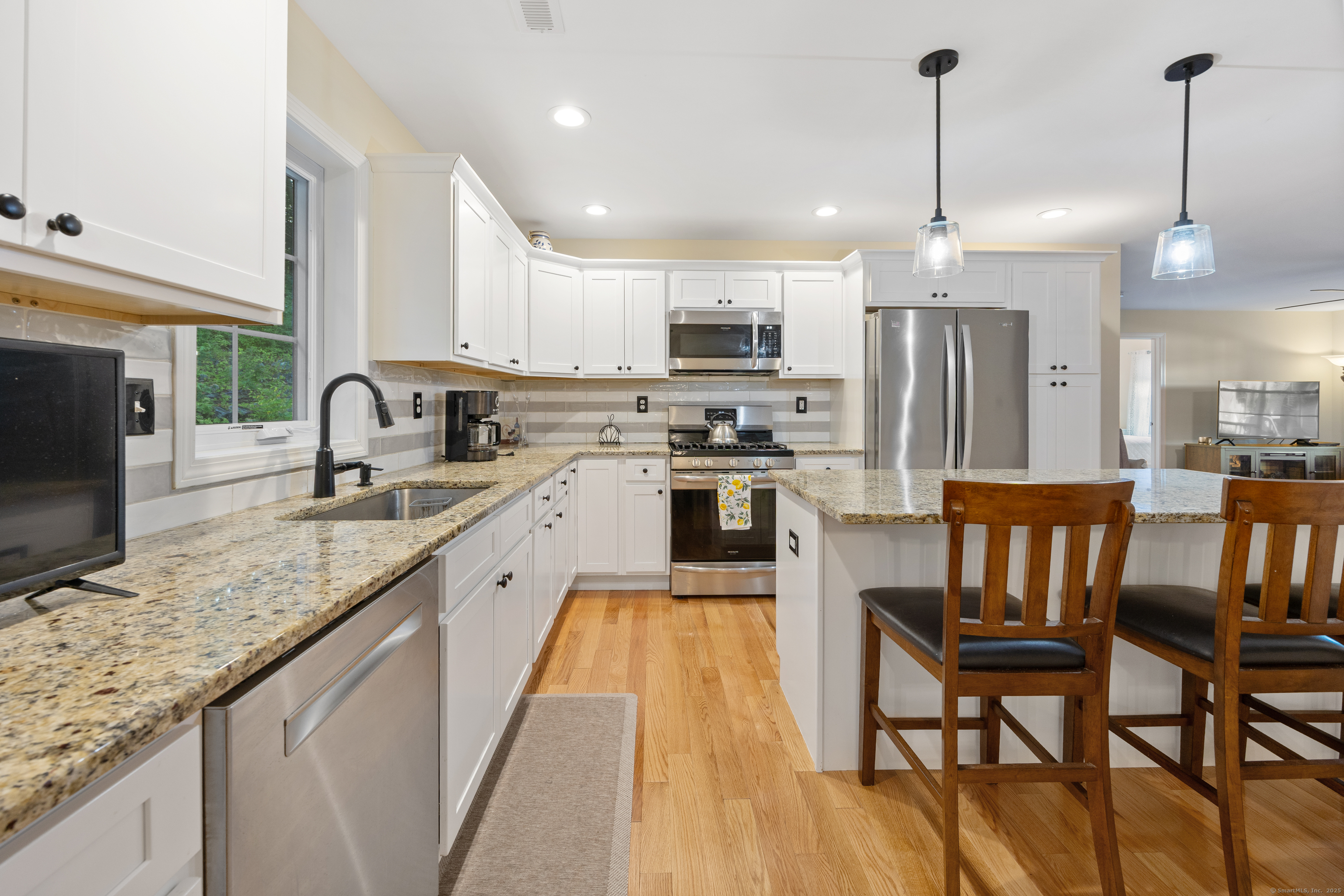 Welcome to your dream home in the lovely Sunset Ridge 55+ community! This 2-bedroom, 2-bathroom Ranch offers one level living blending comfort, style & convenience. This home is located in the most private location surrounded by woods tucked in the back of the complex. Truly one of a kind! Step inside to discover gleaming hardwood floors flowing throughout most of the home, creating a warm & inviting ambiance. The heart of the home is the eat-in kitchen, featuring a spacious island w/breakfast bar seating, sleek granite countertops & modern stainless steel appliances-perfect for casual meals & entertaining guests. Adjacent, the sun filled dining room with French doors, ideal for formal or holiday gatherings, opens directly to a super private back deck, where you can enjoy the serene outdoors. The spacious primary bedroom is a true retreat, complete with a beautiful full bath for ultimate relaxation. A second bedroom & additional full bath provide space for guests. The finished walk-out lower level offers a versatile rec/play room, additional guest space or fitness area and also set up to add an another bathroom. Additional highlights include leaf filters for easy-cleaning, attached 2-car garage for convenience & storage & a prime location near fairgrounds, golf courses, your local library & senior center. With easy access to Routes 4, 202 & 8, you're just minutes from shopping, dining & entertainment. Experience low-maintenance, vibrant living in Sunset Ridge-schedule today!