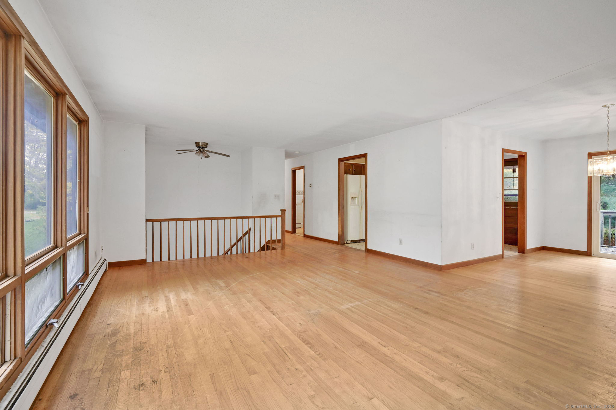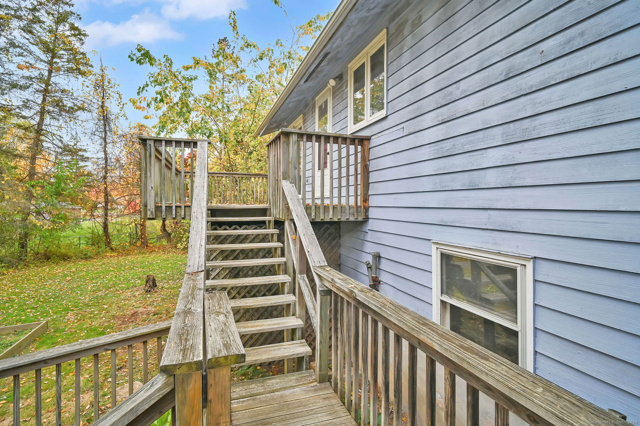 Opportunity knocks with this oversized Raised Ranch set back from the road on a generous .66-acre lot with city water and sewer. Solid bones, hardwood floors, and an open L-shaped living/dining area with floor-to-ceiling windows create a bright, inviting space ready for restoration. The eat-in kitchen opens to multi-level decks overlooking a great yard - perfect for gatherings or quiet evenings. The expansive finished lower level adds even more versatility with a half bath, laundry area, and direct entry from the two-bay garage. Whether you're a contractor looking for your next project or a buyer eager to customize a spacious home in a desirable Vernon location near Henry Park, Fox Hill Tower, and the Hop River Trail - this property offers endless potential.