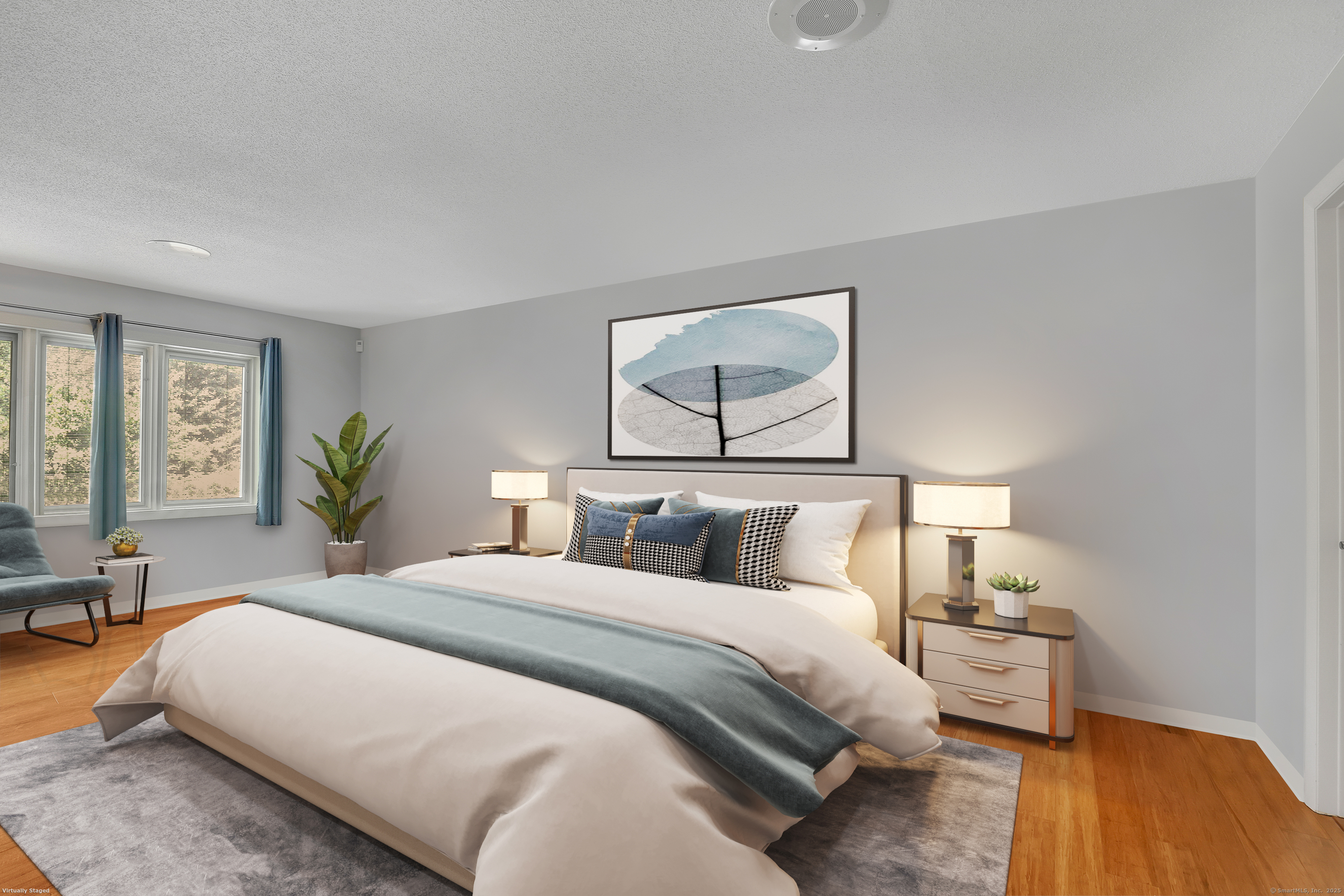 Tucked at the end of a quiet cul-de-sac on nearly 6 private acres, this expansive contemporary home offers nearly 4,000 sq ft of above-grade living space plus a partially finished lower level with vinyl plank flooring and indoor turf-perfect for a gym or recreation area. A long driveway (shared access at entrance) leads to this hidden retreat with 360 degrees of privacy. Featuring a first-floor primary suite, luxury vinyl plank flooring throughout, vaulted ceilings, skylights, fireplaces, a sunroom, and generously sized rooms. Three additional bedrooms and a full bath on the second level. Outside, enjoy a heated saltwater pool with all-new mechanicals, a 3-car garage, and a spacious deck overlooking serene natural surroundings. Exceptional space, privacy, and style in a sought-after Southbury location-this is not just a home, it's a lifestyle.