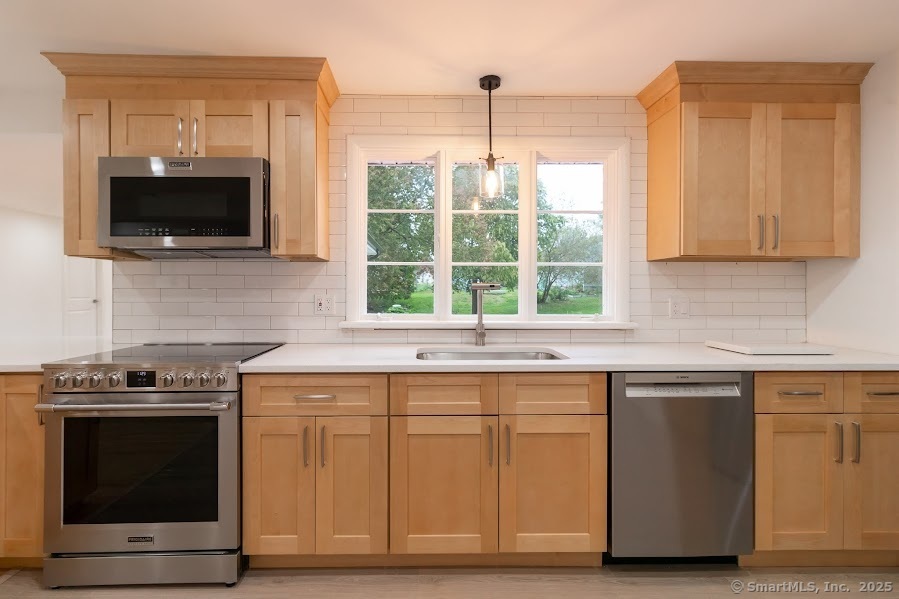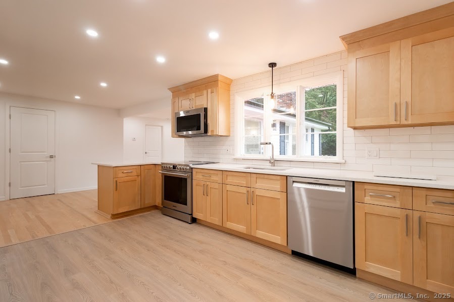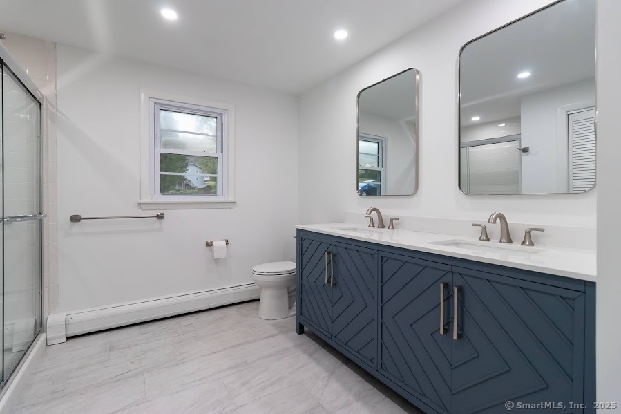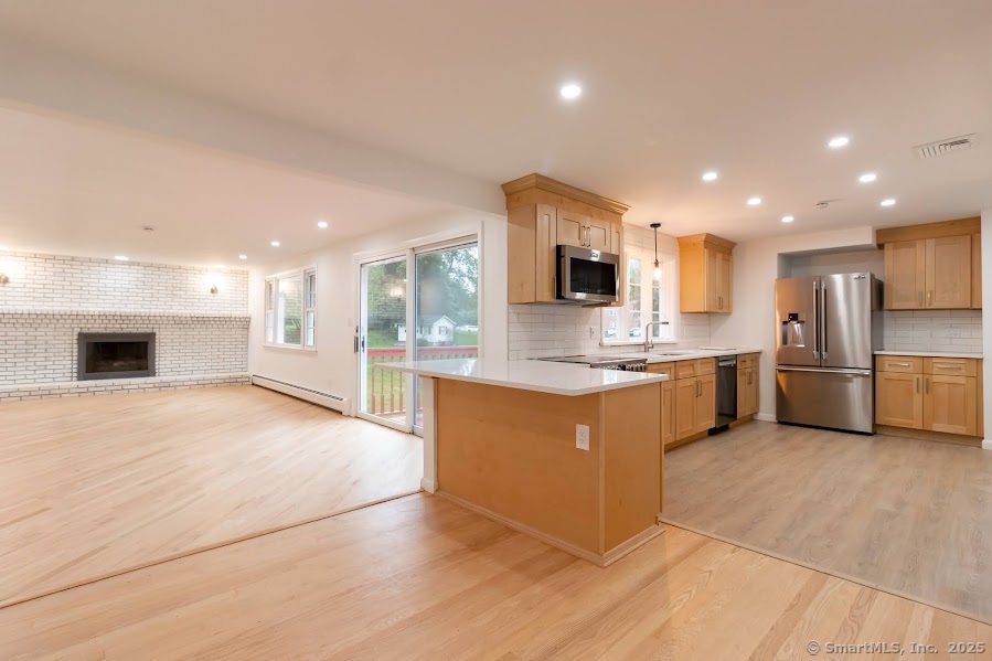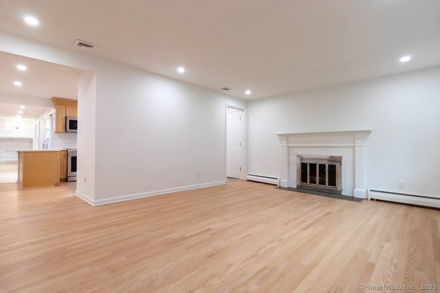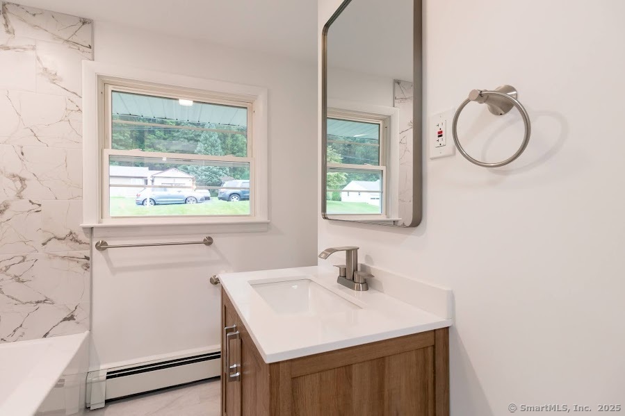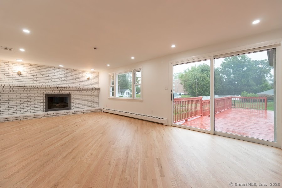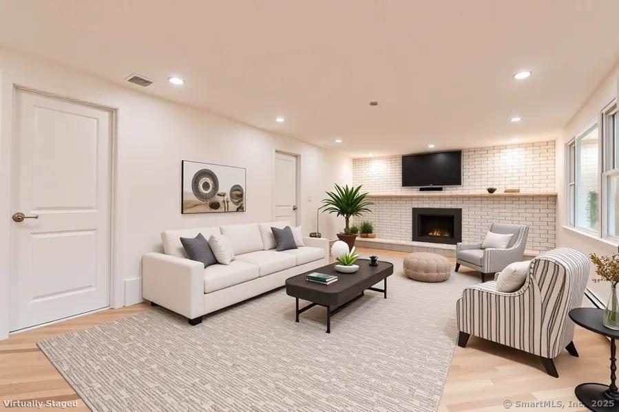 Welcome to 60 Ridge Road. Step into this gorgeous three-bedroom, two full bathroom ranch-style home featuring a easy open floor plan flooded with natural light. Cooler nights at home will have you enjoying not one but two cozy fireplaces. The kitchen has been fully updated to include quartz counters a large breakfast bar, custom cabinetry and a bright white back splash. Family fun time will now include cooking with your new high end stainless steel appliances. Both bathrooms have been stunningly renovated with custom tile work, new sinks, vanities and flooring. To add to this homes modern antithetic recessed lighting shines brightly through out. Downstairs, you'll find a beautifully finished lower level. This is the perfect space for entertaining or relaxing with family. This versatile area adds valuable living space for movie nights, game day and also the possibility for a large in-law suite. All three bedrooms are generously sized with plenty of closet space and light abundant. This amazing home truly has it all including an entire home generator and central air. Other updates include new roof, boiler, driveway and much more. Step right out onto a large deck to enjoy the sun! Or take a break in the shade with a retractable awning. The expansive backyard will be perfect for outdoor play, barbeques, gardening or your next fall party. Conveniently located near parks, schools, shopping and commuter routes this home offers the perfect balance of comfort, convenience and style.
