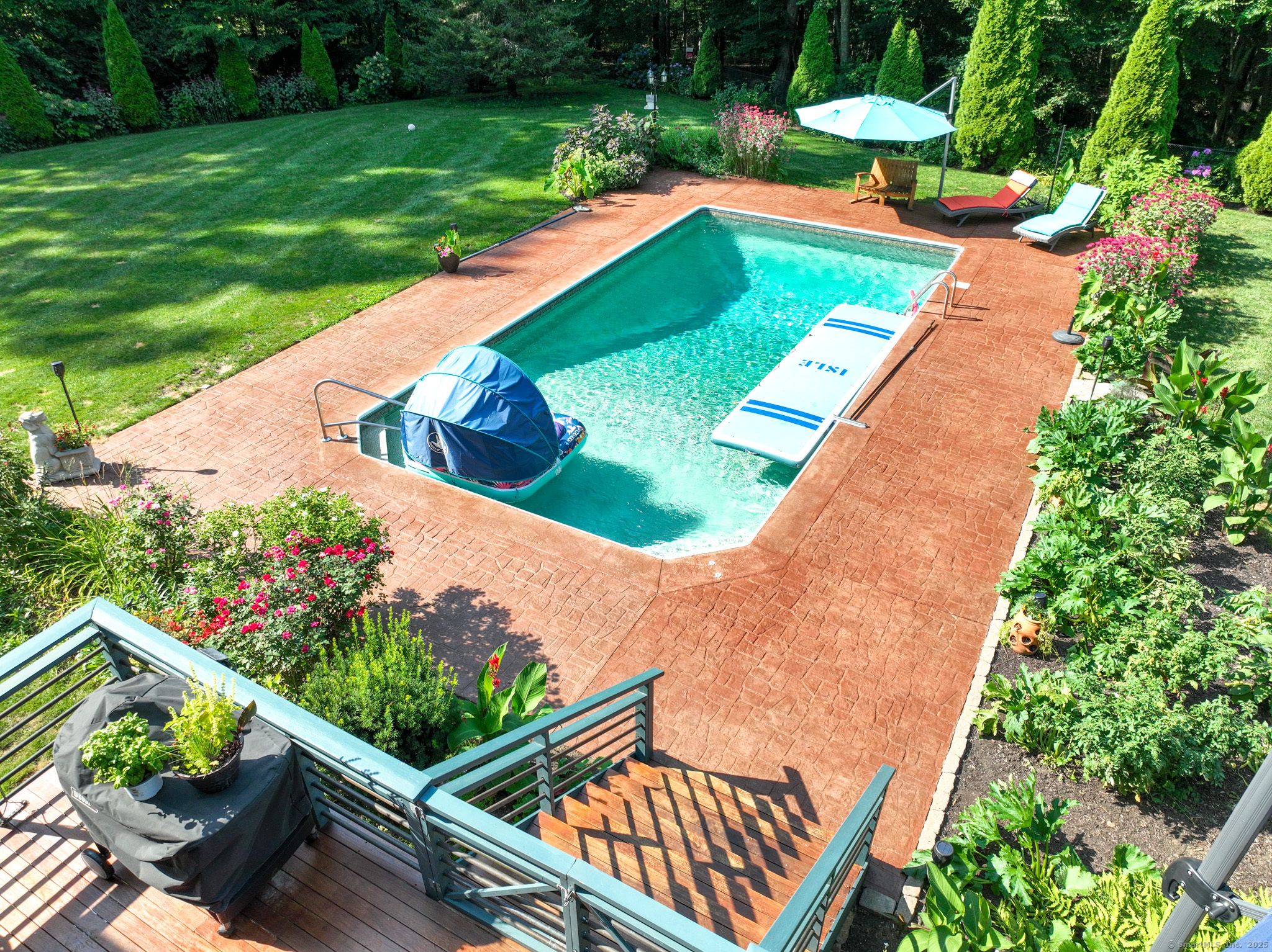 Exceptional Home with Designer Kitchen, Heated Pool & Private Pond Access This stunning residence offers a first floor designed for both entertaining and everyday living. The open floor plan features a chef's dream kitchen, a spacious living room with fireplace, and a formal dining room that opens onto a deck - perfect for hosting gatherings. An additional deck off the kitchen showcases premium Brazilian IPE decking. A first-floor office provides an ideal workspace. Upstairs, you'll find three generous bedrooms, a convenient laundry room, and an incredible bonus room over the three-car garage - currently outfitted as a gym. Additional space with separate entrance and half bath was previously used as a recording studio would make a great in-law or private office space. The outdoor living spaces are equally impressive, featuring an inground heated pool, expansive patio, and lush, abundant gardens. A fenced area keeps pets safe, while partial pond ownership offers a serene retreat. The oversized three-car garage includes one 10-foot door, ideal for larger vehicles, and the home is equipped with an automatic propane generator for uninterrupted peace of mind. This home blends thoughtful design, luxury finishes, and practical amenities in one remarkable package. Set on a serene and private lot, this property is a true gardener's paradise. Multiple garden beds, vibrant flowers attract hummingbirds, butterflies, fireflies, and a delightful chorus of songbirds.