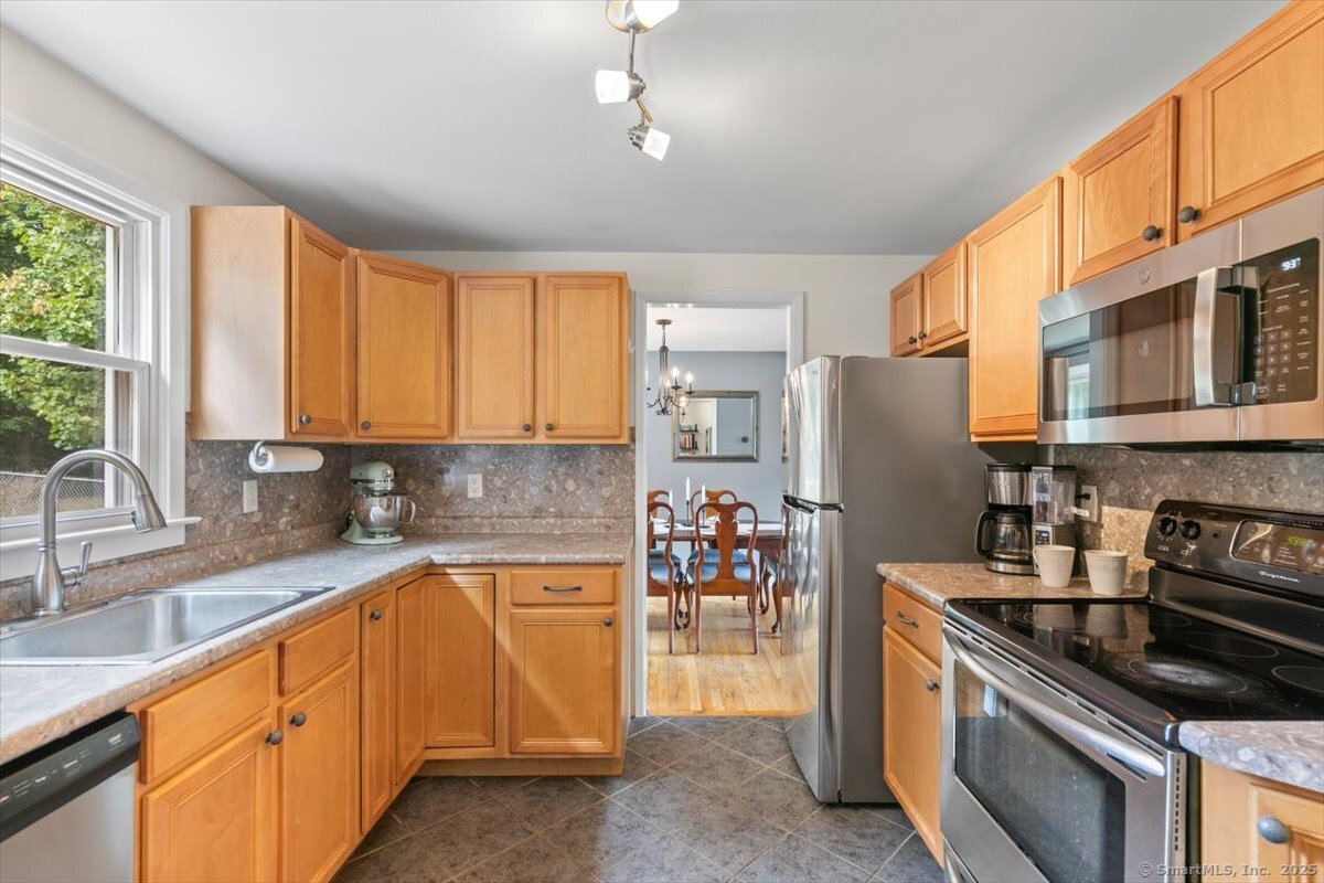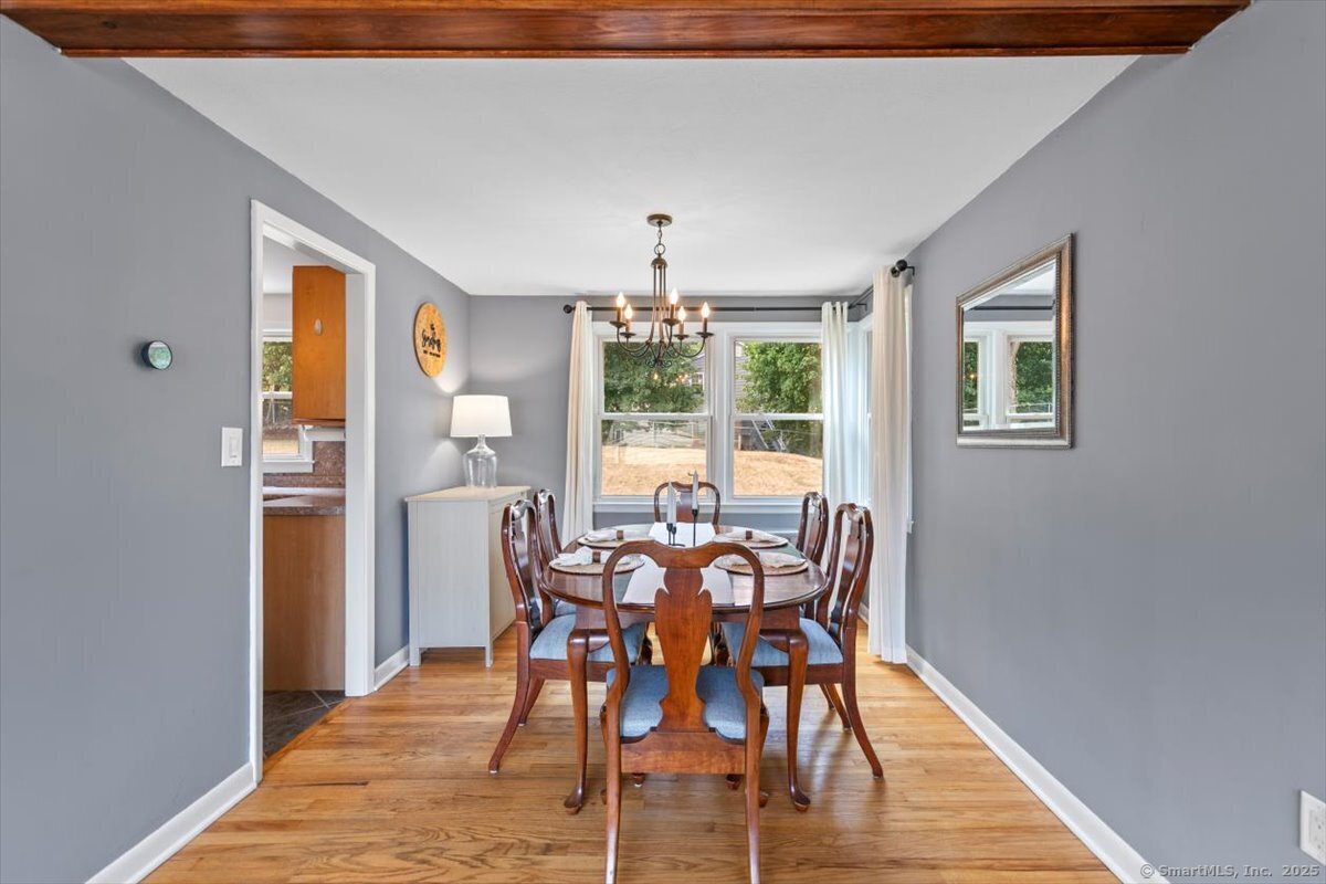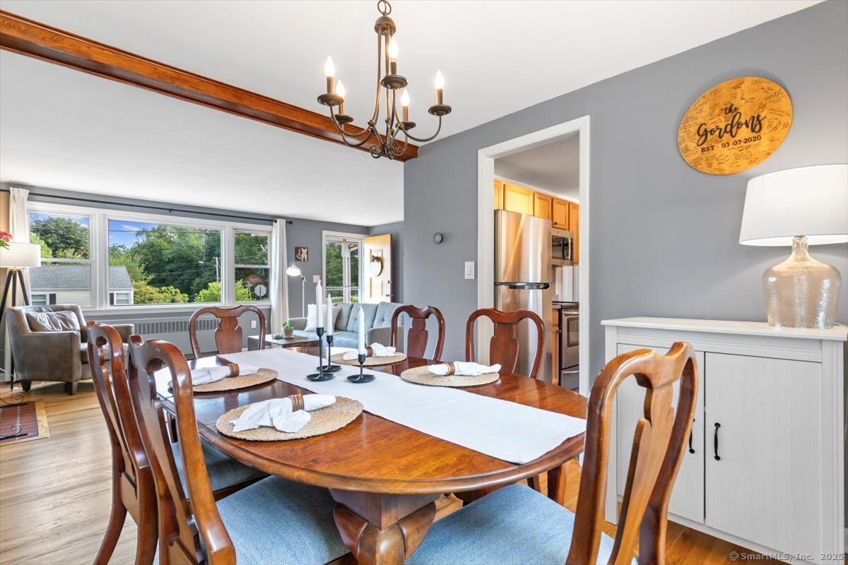 Set in the heart of Mount Carmel, this timeless ranch blends comfort, style, and convenience. A welcoming living room with fireplace opens seamlessly to the dining room, offering an ideal setting for both relaxed evenings and memorable gatherings. The renovated kitchen features stainless steel appliances, abundant cabinetry, and natural light that enhances its warmth. The full bath is thoughtfully updated with sleek tile and modern finishes. Hardwood floors throughout provide durability and easy maintenance. Step outside to a ground-level deck overlooking a fully fenced yard-perfect for entertaining or quiet retreat. With a newer roof, high-efficiency gas boiler, and a pristine lower level awaiting future possibilities, the home is move-in ready. A one-car garage adds convenience. Just moments from Quinnipiac, Yale, Sleeping Giant State Park, the Farmington Canal Greenway, shops and restaurants, and easy access to highways, this residence combines a serene neighborhood feel with exceptional access.