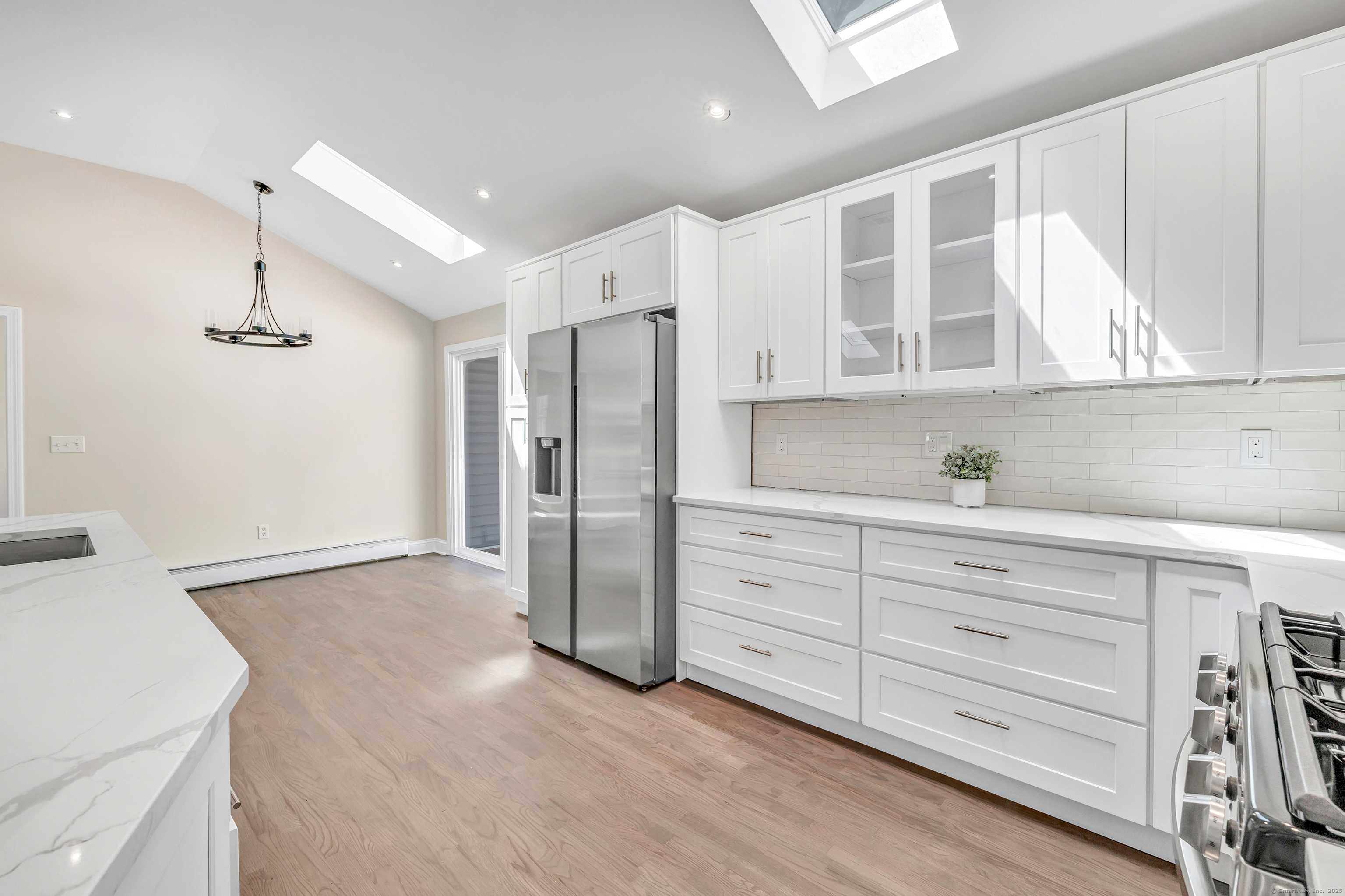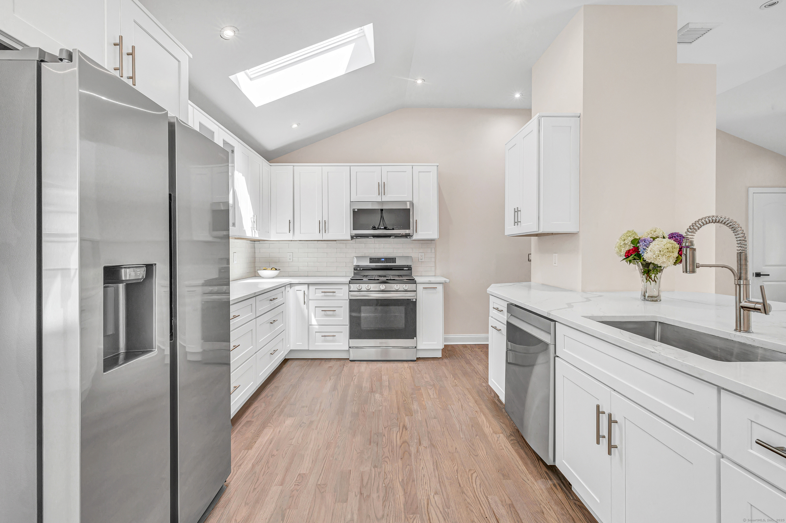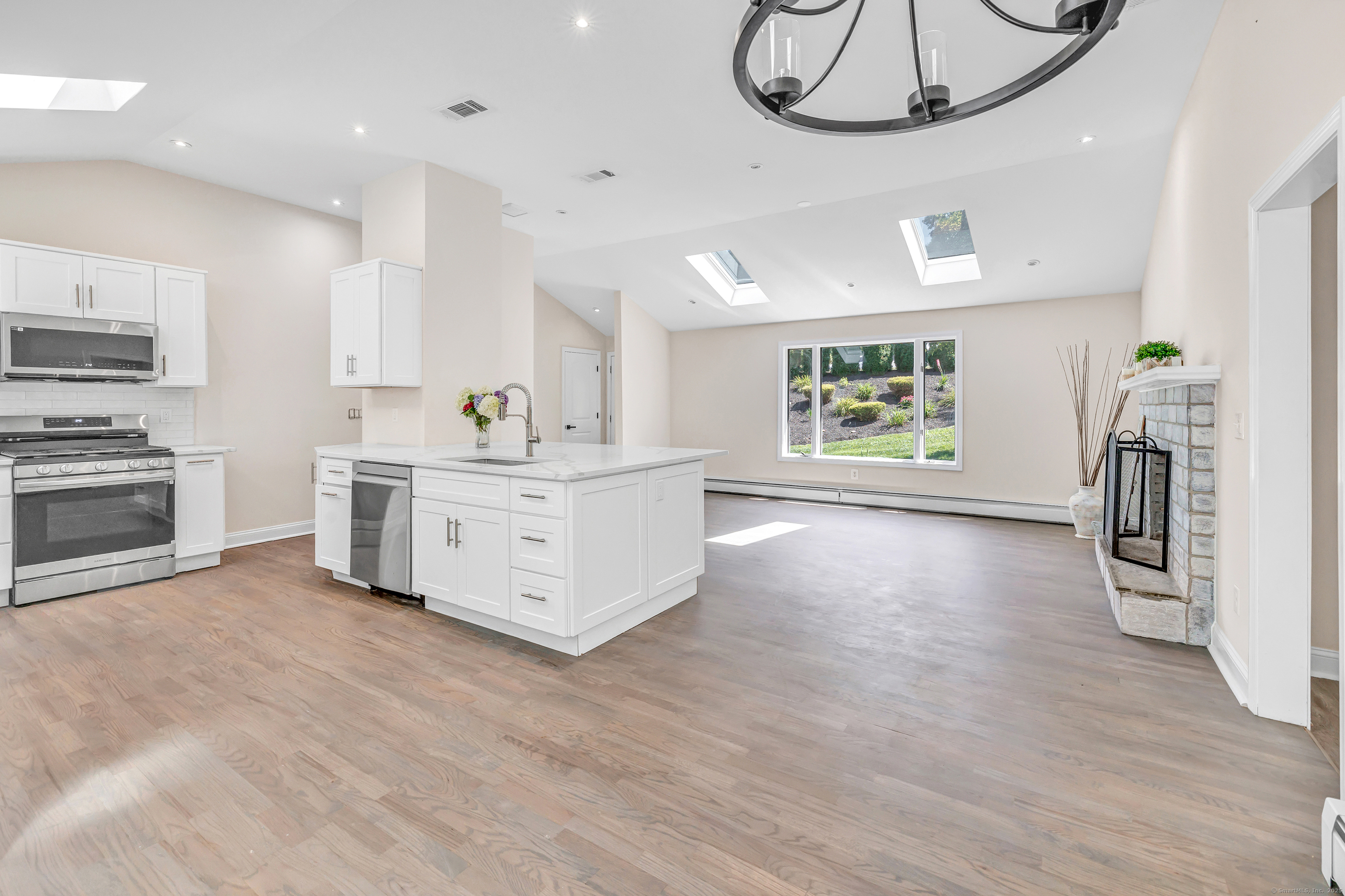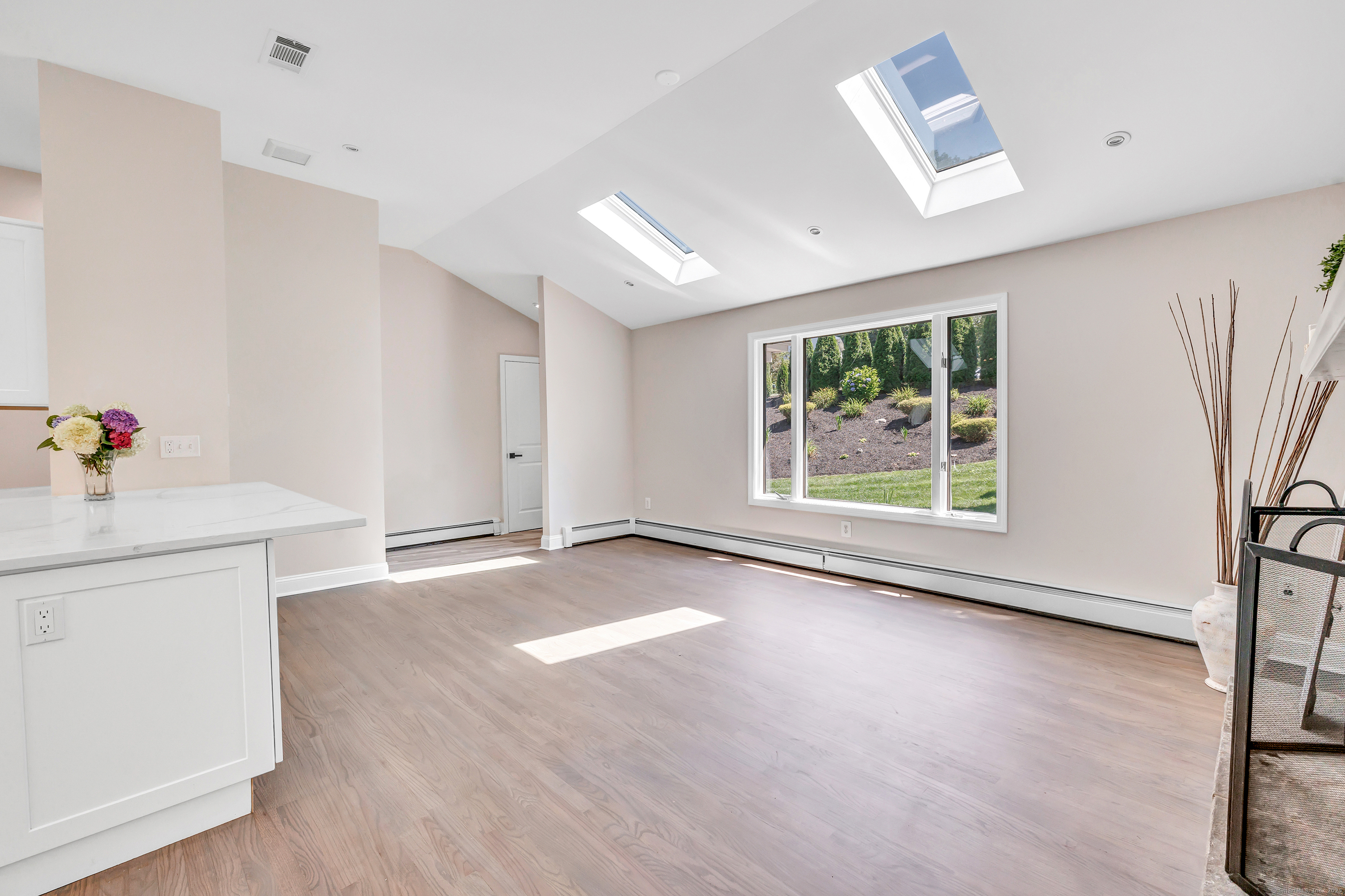 Welcome to 31 Parlor Rock Road - This stylishly remodeled Ranch on a peaceful cul-de-sac offers one-level living at its finest! Featuring 4 bedrooms, 3 full baths, a bright open floor plan with over 2800 SF, this home blends modern updates w/inviting charm. The heart of the home is the vaulted-ceiling kitchen & living room, filled w/natural light from skylights & large windows. The kitchen boasts new white cabinetry, a stunning quartz island, stainless steel appliances, & freshly finished hardwood floors-perfect for both everyday living & entertaining. The home offers 2 ensuite bedrooms for added comfort & flexibility. The primary suite has been completely remodeled & includes newly finished hardwood floors, a spacious walk-in closet, & a brand-new spa-like bath. One of the 4 bedrooms also features its own private bath, making it ideal for guests or multi-generational living. Recent updates include a new roof, furnace, central air, & fresh paint inside and out, ensuring peace of mind for years to come. The professionally landscaped grounds showcase colorful flowers & mature shrubs, while the quiet cul-de-sac location is perfect for biking, playing, & enjoying the outdoors. The fully finished lower level adds 600 SF. of versatile space, including a playroom & family room that can easily serve as an bonus room, guest suite, or home office.Perfectly located near parks, restaurants, & major commuting routes, this home offers both convenience & tranquility