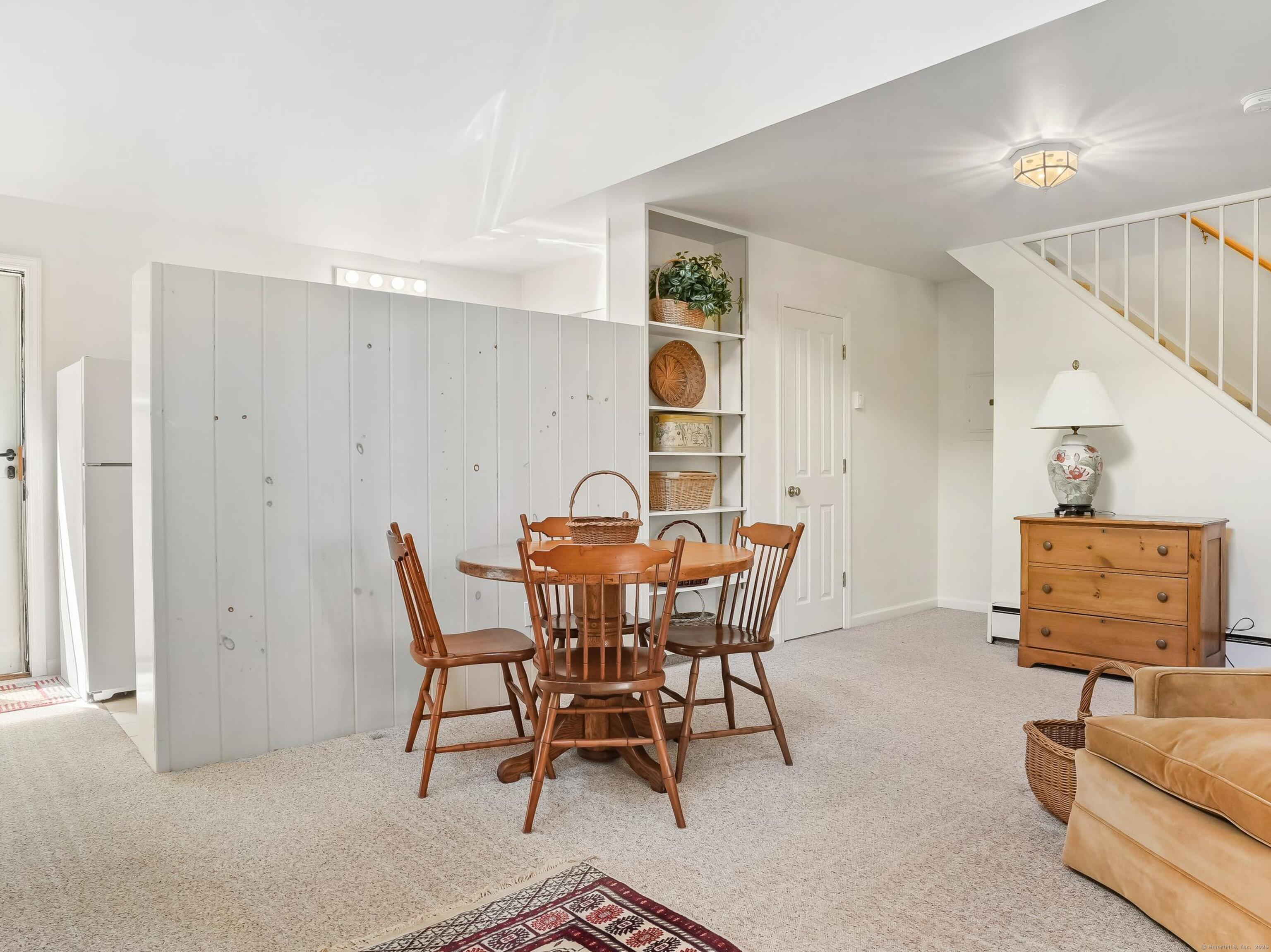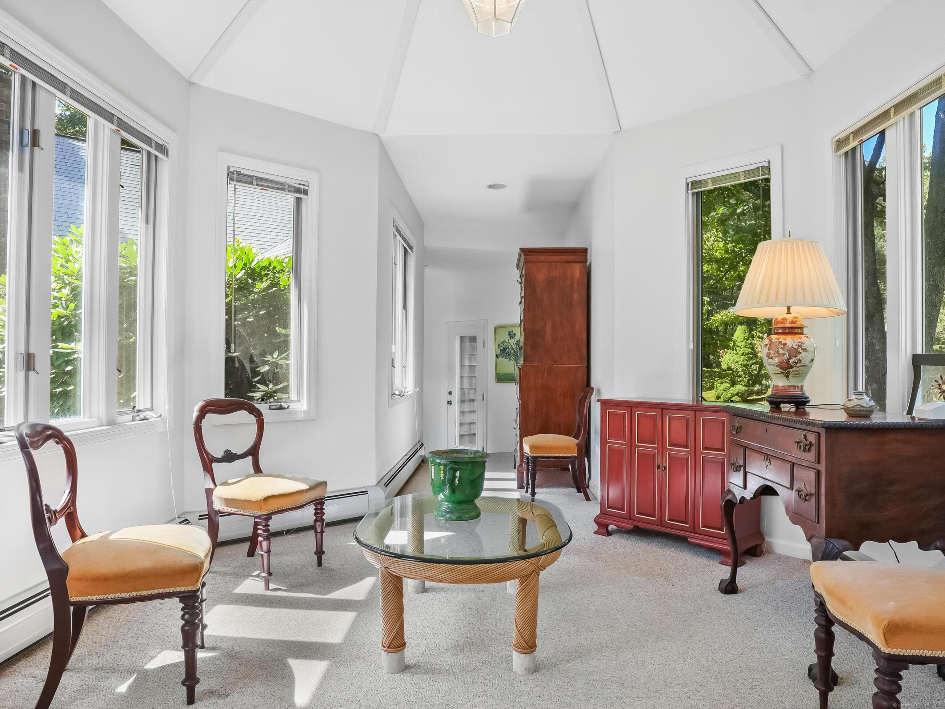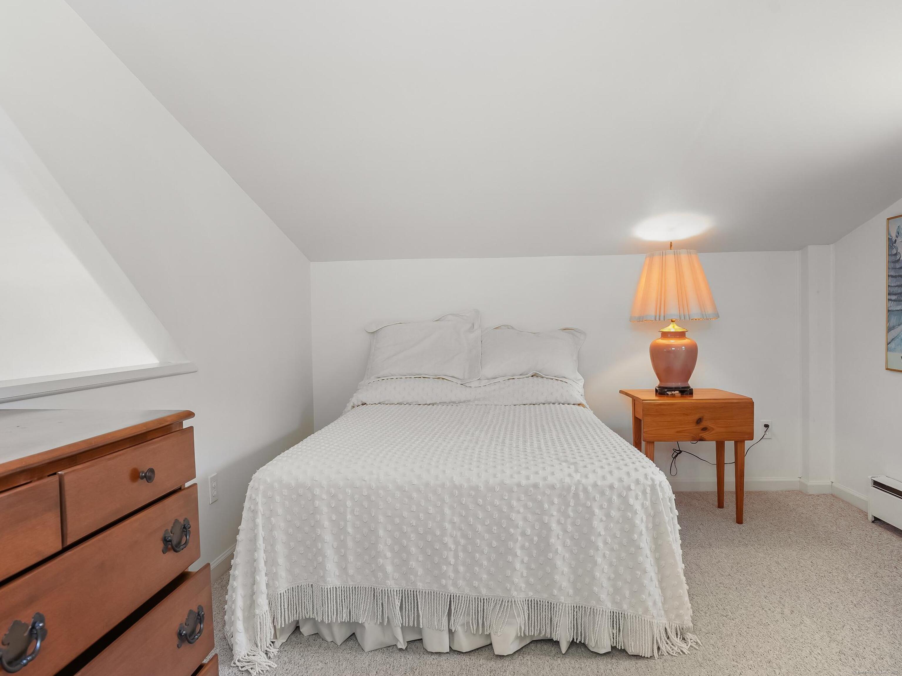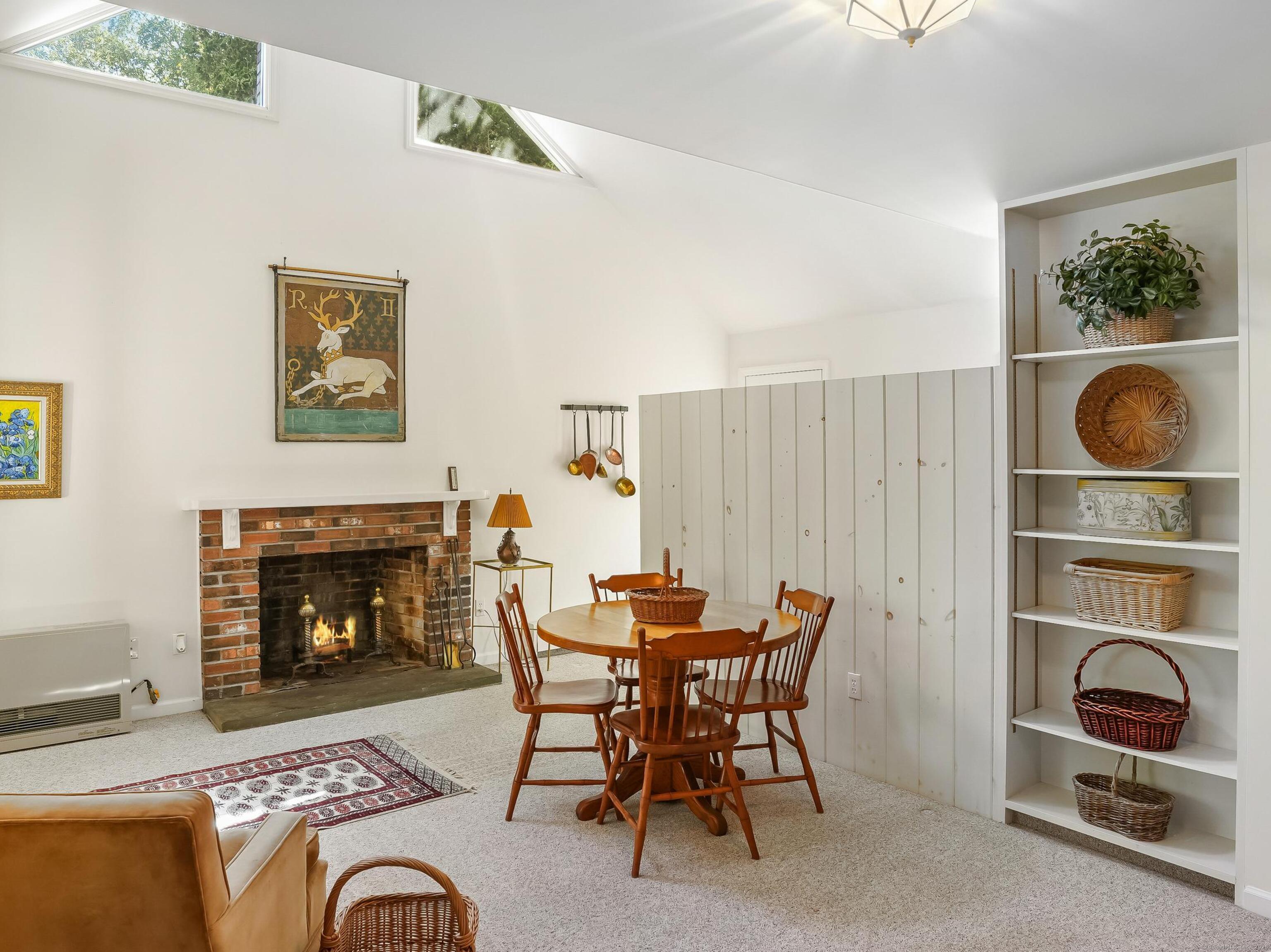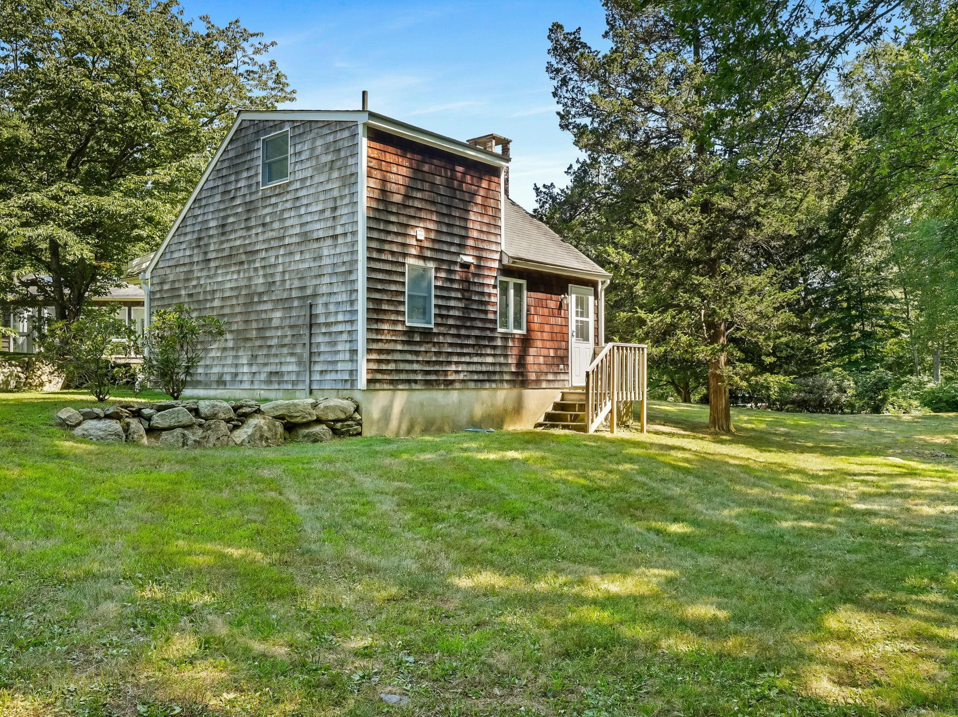 INCLUDED ONE GARAGE SPACE! Brand NEW Washer/Dryer Unit! Prime South Wilton location. Beautiful fully furnished 900SF one bedroom apartment/cottage. Family Room has fireplace with Dining Area, One Bedroom on 2nd floor, 1 full Bath on Main floor, and galley EFFICIENCY kitchen (no dishwasher) with plentiful open shelving. Large Office/Living Room space plus 3 closets. Tons of windows, doors and natural light. Peace and quiet on 2 acre property surrounded by mature plantings and lovely landscape. This is a very special opportunity!