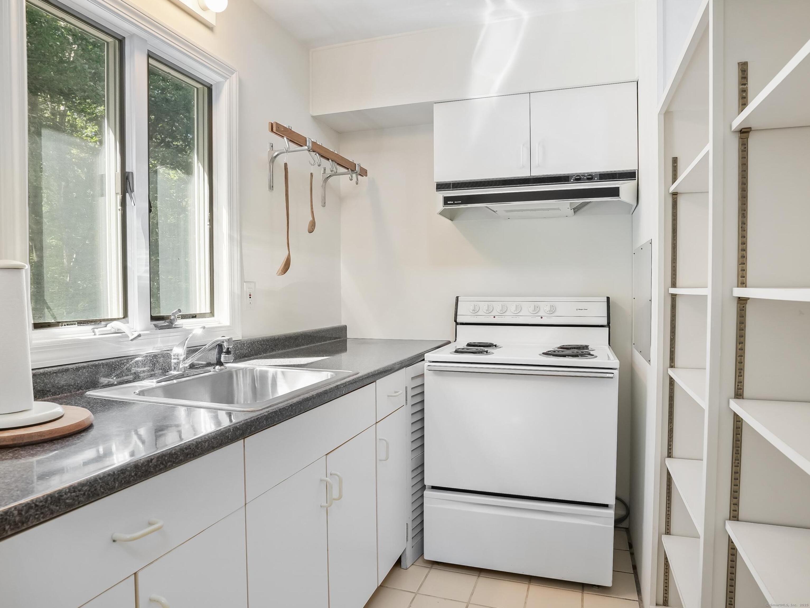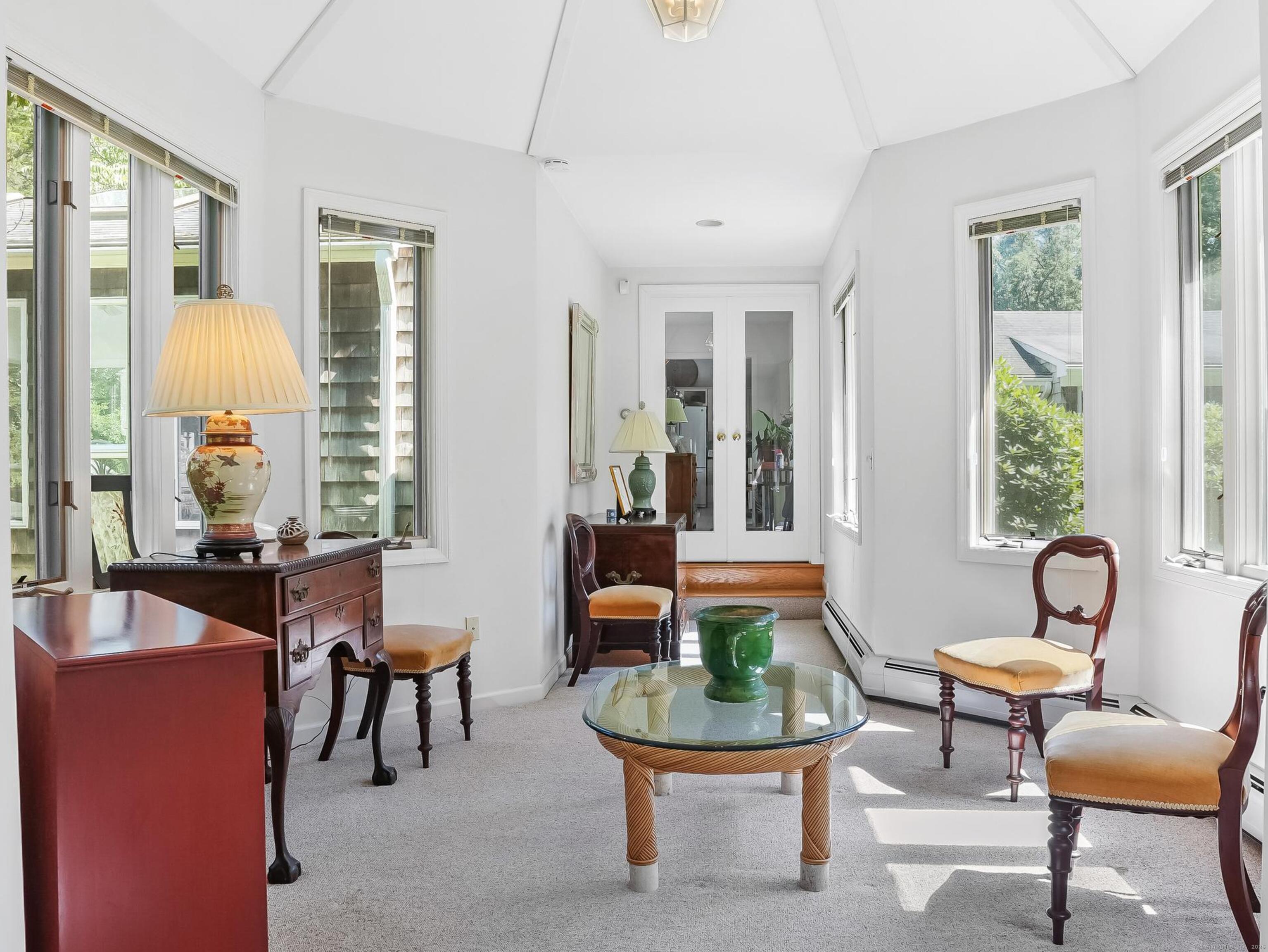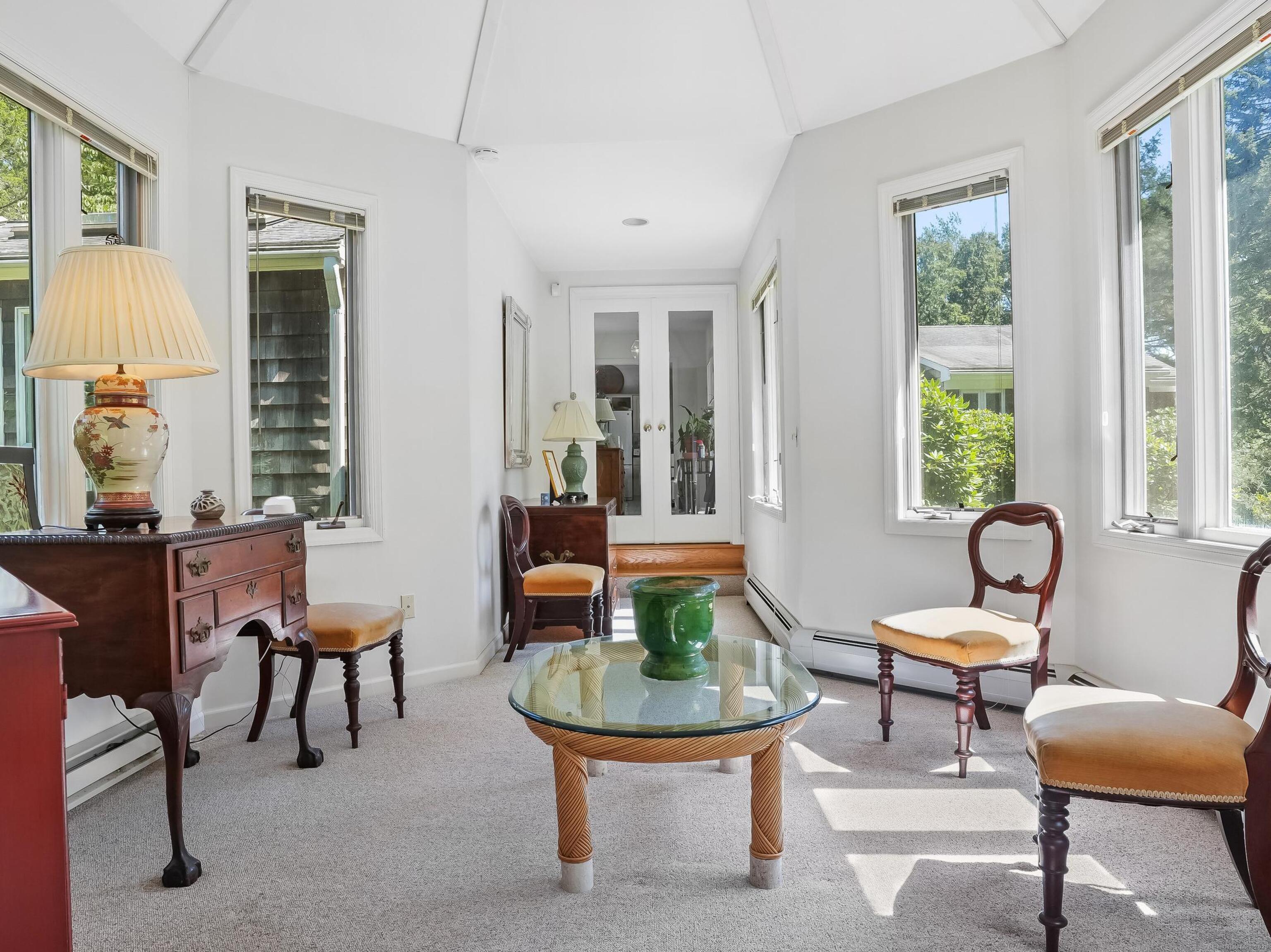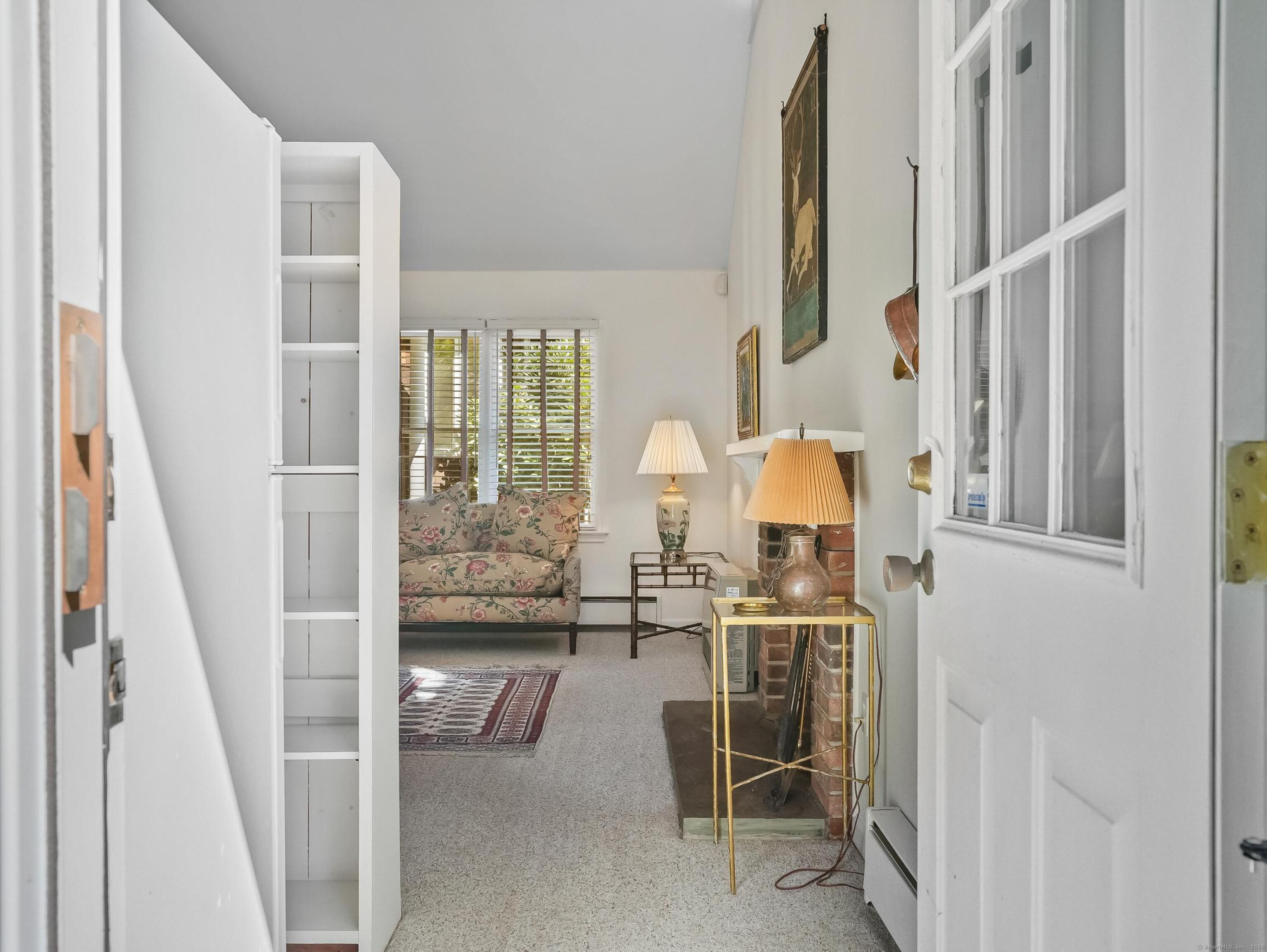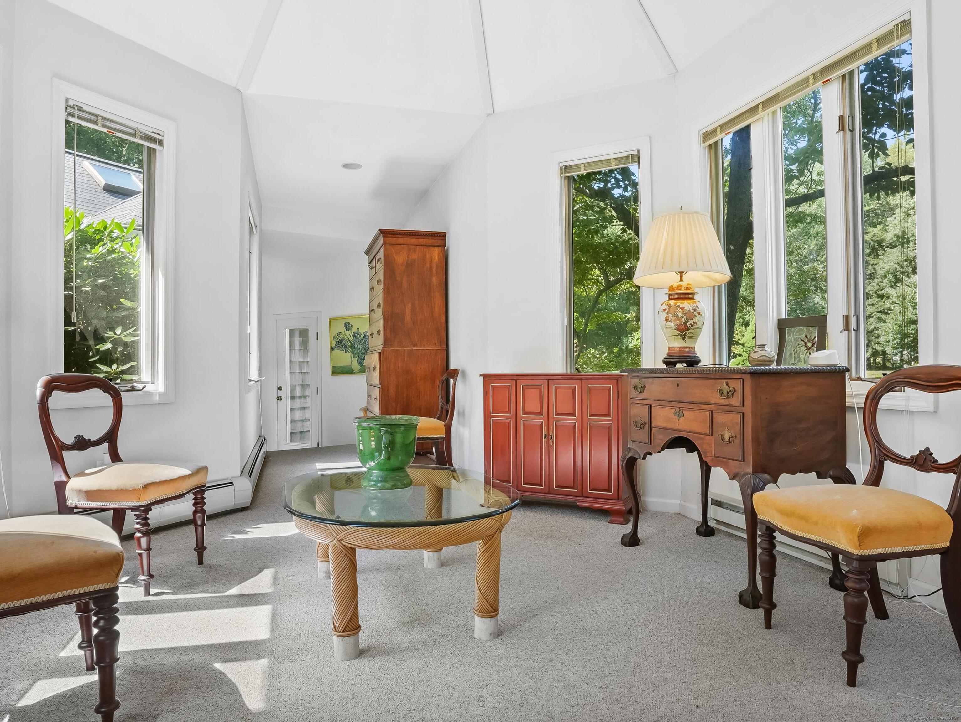 INCLUDED ONE GARAGE SPACE! Brand NEW Washer/Dryer Unit! Prime South Wilton location. Beautiful fully furnished 900SF one bedroom apartment/cottage. Family Room has fireplace with Dining Area, One Bedroom on 2nd floor, 1 full Bath on Main floor, and galley EFFICIENCY kitchen (no dishwasher) with plentiful open shelving. Large Office/Living Room space plus 3 closets. Tons of windows, doors and natural light. Peace and quiet on 2 acre property surrounded by mature plantings and lovely landscape. This is a very special opportunity!