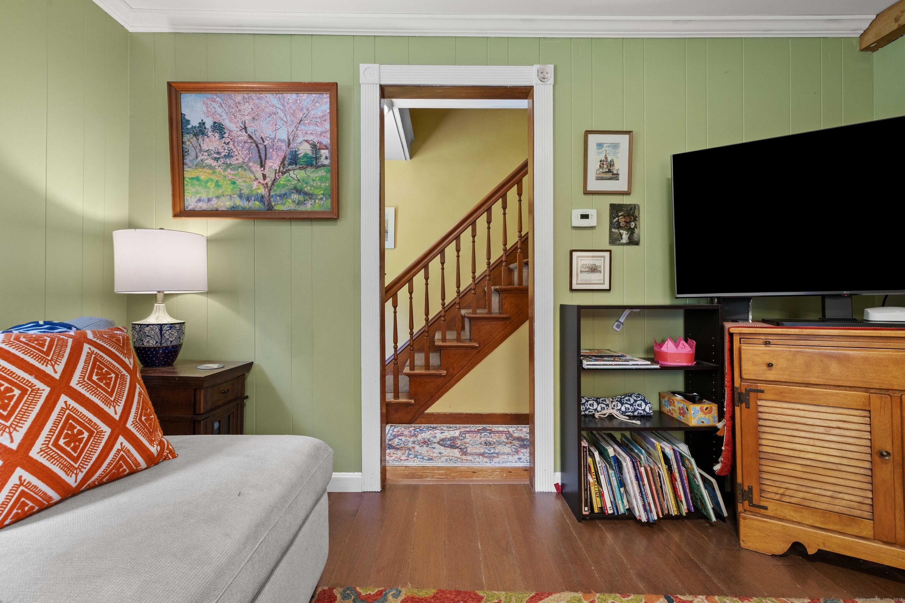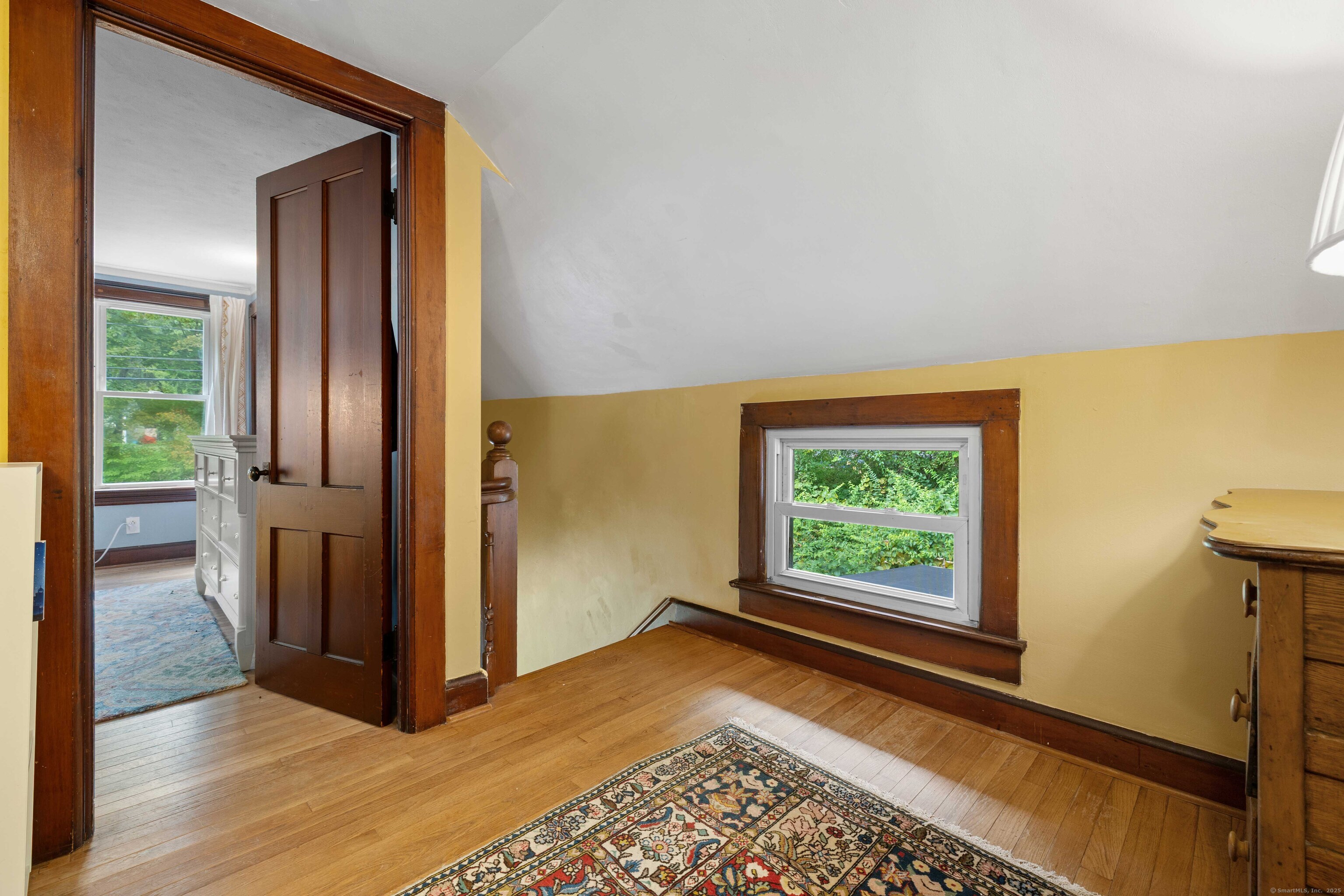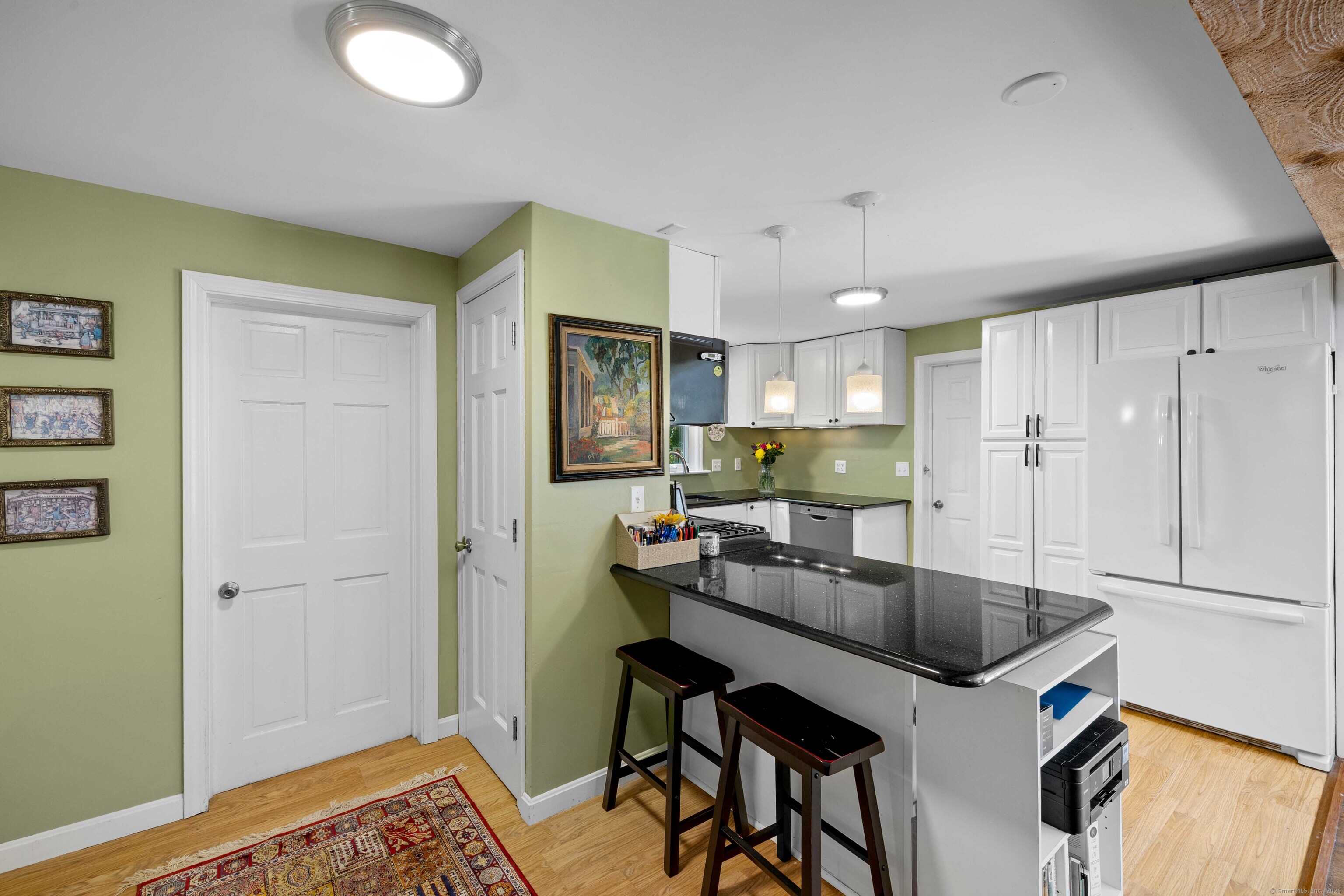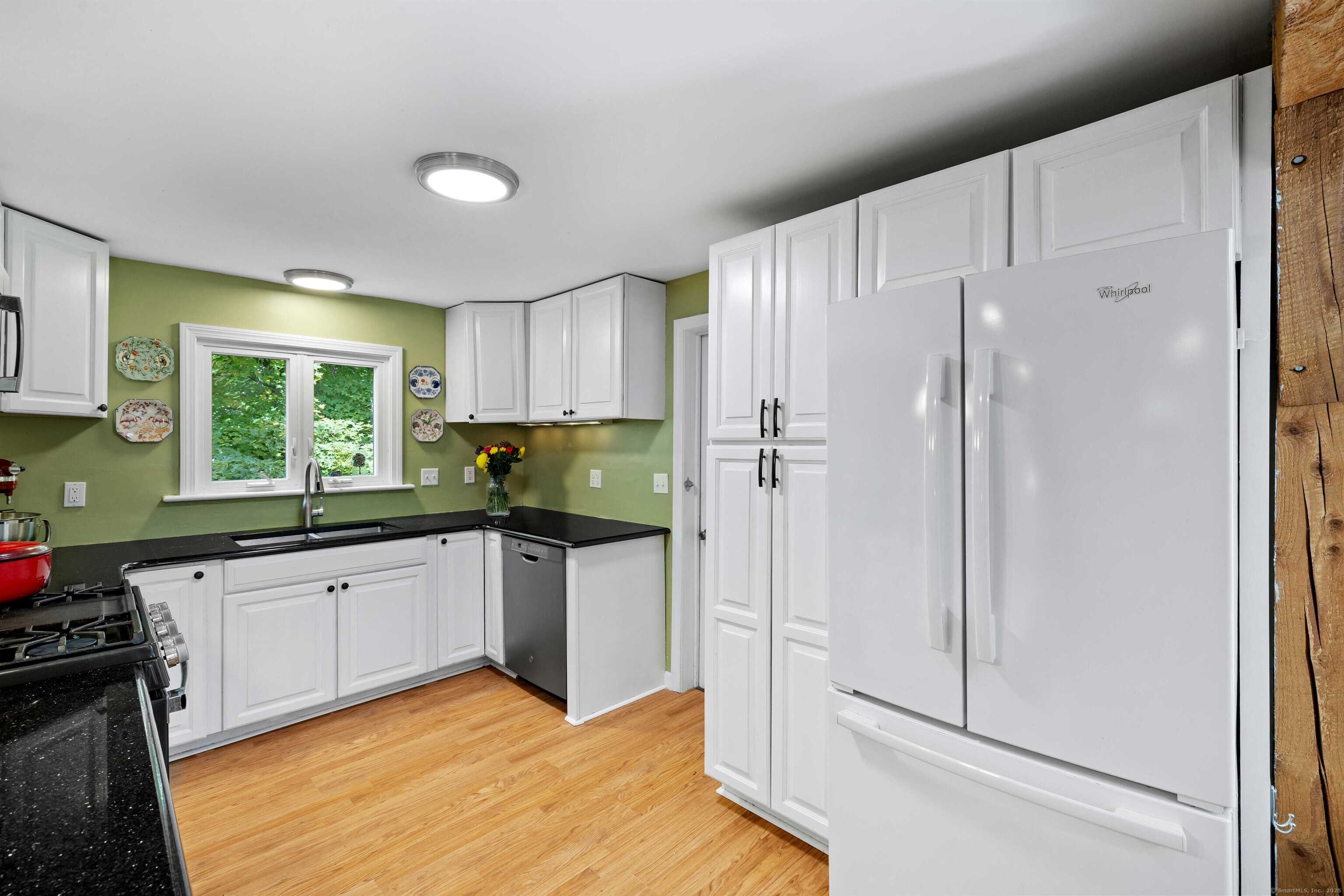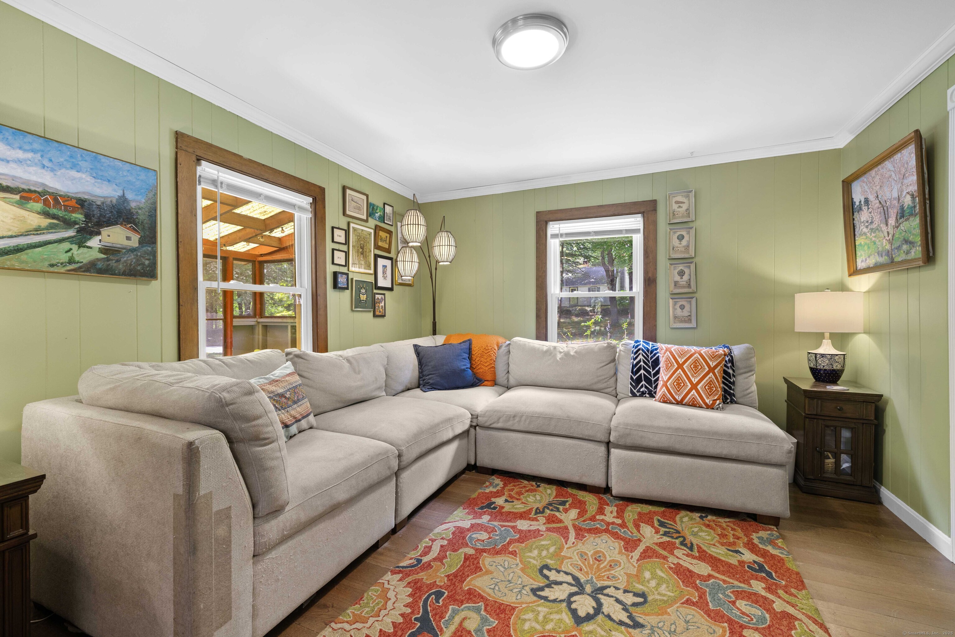 Charming 3-Bedroom Colonial in a Serene Wooded Setting Set on a private .75-acre lot, this inviting Colonial combines character and modern updates in a picturesque setting. The property features a detached barn perfect for a garage or workshop equipped with a woodstove, electricity plus a touch of history with a classic outhouse. Additional highlights include a storage shed, landscaped grounds with a tranquil water feature, and a spacious rear Trex deck perfect for gatherings conveniently located off the dining room . Inside, the open floor plan showcases hardwood floors, exposed beams, and a screened-in porch off the dining area for warm summer evenings. The remodeled kitchen offers maple cabinetry, a gas range, double sink, breakfast bar, pantry, and convenient first-floor laundry. The living and dining areas flow seamlessly, with sliders opening to the deck for effortless indoor-outdoor entertaining. Upstairs, you'll find three generously sized bedrooms, each with beautiful hardwood flooring. Recent updates include central air, 200-amp electrical service, a newer well and pump, and replaced windows and roof-ensuring peace of mind for years to come.
