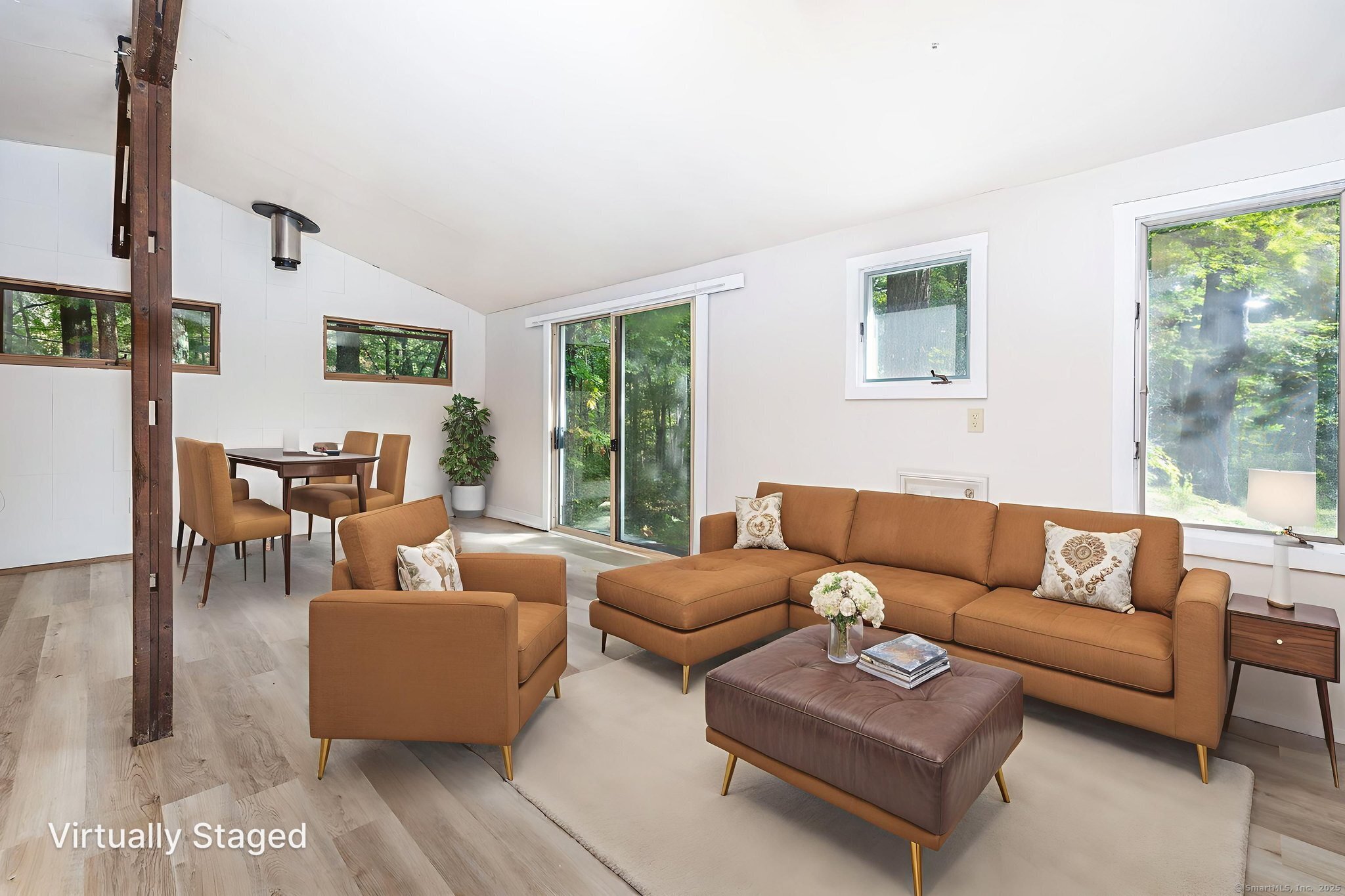 Welcome to 154 Wilbur Ln, a truly distinctive property that sets itself apart from the rest providing over four and half acres of privacy. This home boasts five spacious bedrooms and two full baths, along with a large versatile studio or den that provides additional options for your needs. As you enter, a convenient mudroom is to the left and down the hall leads you into the kitchen where you will be greeted with lots of natural light and gorgeous windows and skylights. From the kitchen enter the dining room, where a full wall of windows fills the space with scenic views. It's perfect for both intimate dinners and lively gatherings. After you enjoy your dinner step out onto the deck to watch the sun go down or access the screened in porch for those rainy evenings. The dining room leads to the expansive living room featuring a stunning fieldstone fireplace, a lofty cathedral ceiling with wooden beams, a built-in bookcase and a large sliding glass door. Go up to the second floor with one of the two access points to discover the primary bedroom that has wall to wall windows, a walk-in cedar closet and is complete with a full bath and a claw tub.The attached barn provides ample storage with five garage bays, two horse box stalls, and a walk-up attic.Lots of open space above the garage. This exceptional property, with its unique features and flexible layout, is perfect for a variety of lifestyles.