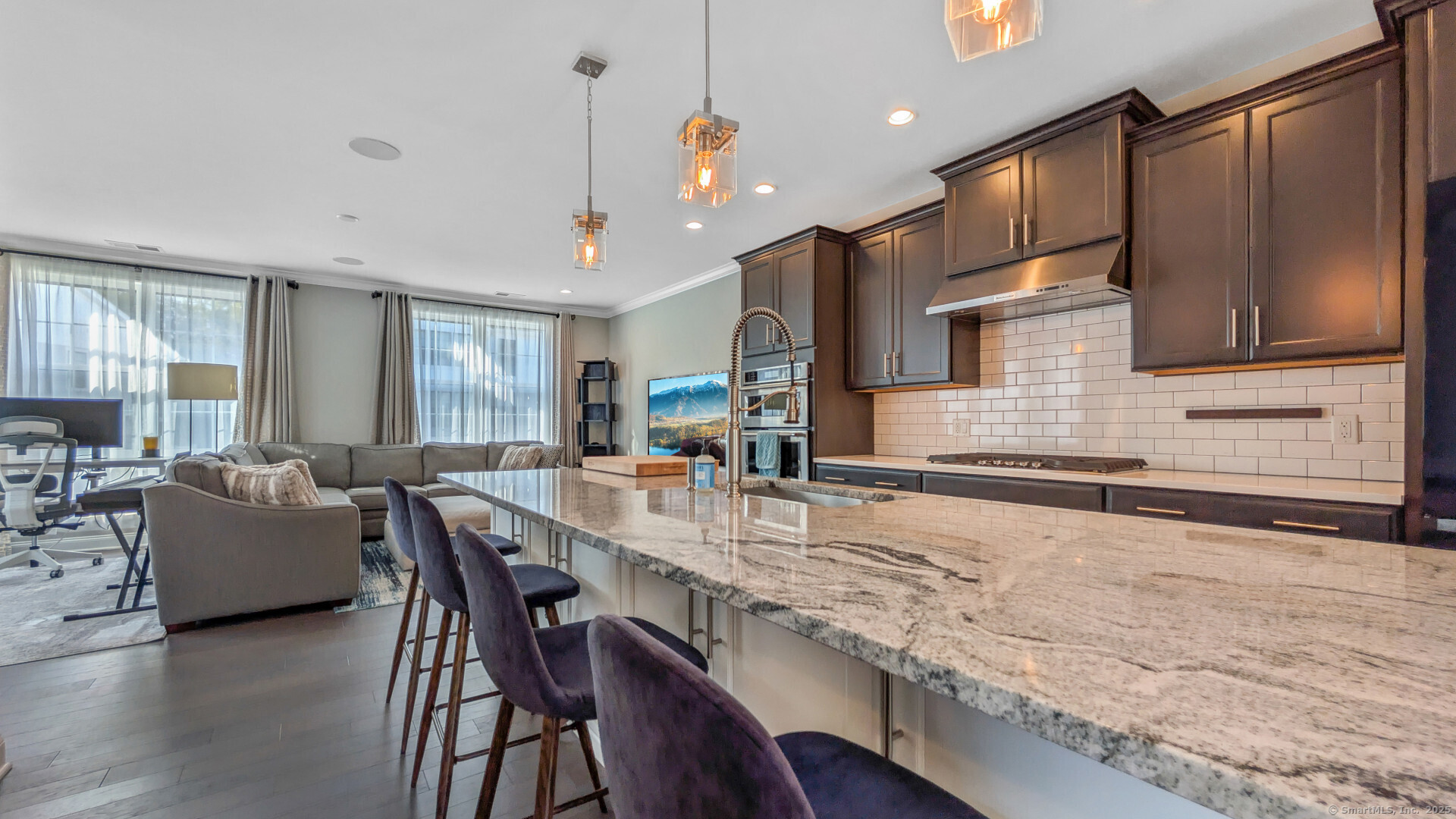 Discover this exceptional 4BR, 3.5BA end-unit Toll Brothers townhome in the prestigious Rivington community, boasting over $125K in upgrades and an ideal location just minutes from the NY border and under 90 minutes to NYC. With a 2car garage plus two additional parking spaces, convenience meets elegance in every detail. Step inside to a sun-filled open-concept main level featuring a gourmet kitchen with granite and quartz countertops, soft-close cabinetry, premium Kohler fixtures, stacked oven/microwave, and in-ceiling audio wiring-perfect for entertaining. The spacious dining and living areas flow seamlessly to a private deck overlooking tranquil wooded views, offering both beauty and privacy. The primary suite retreat showcases a custom walk-in closet, spa-inspired frameless glass shower, and double vanity, while three additional bedrooms provide space for family, guests, or a home office. The lower-level bedroom with private full bath is ideal for an in-law suite, au pair, or remote work setup. This smart-home residence includes an EV charger, hardwood floors throughout, and custom window treatments, ensuring a true move-in ready experience. Enjoy resort-style living with Rivington's unmatched amenities: multiple pools, state-of-the-art fitness center, tennis and pickleball courts, playgrounds, and scenic trails. With luxury finishes, modern conveniences, and an unbeatable location, this townhome offers the perfect balance of comfort, style, and community.
