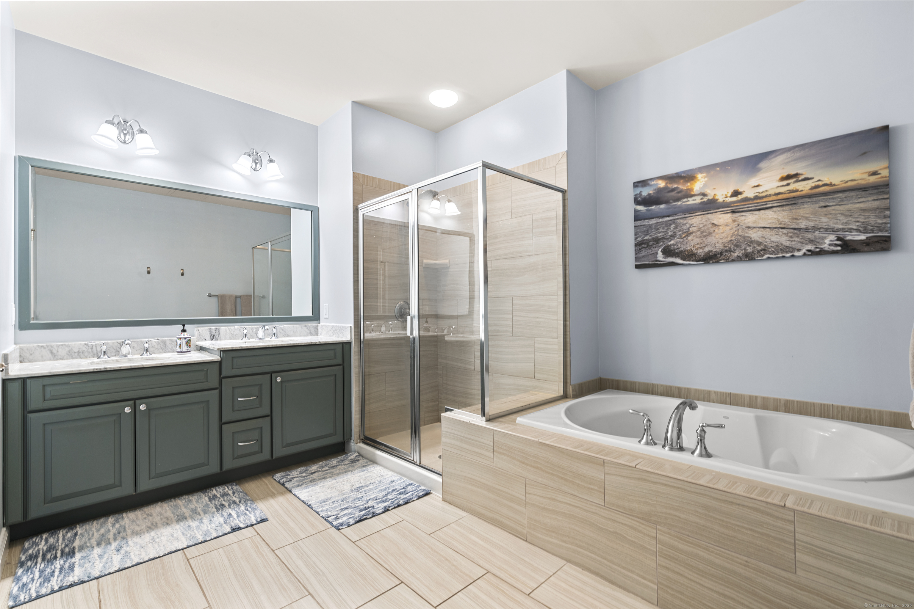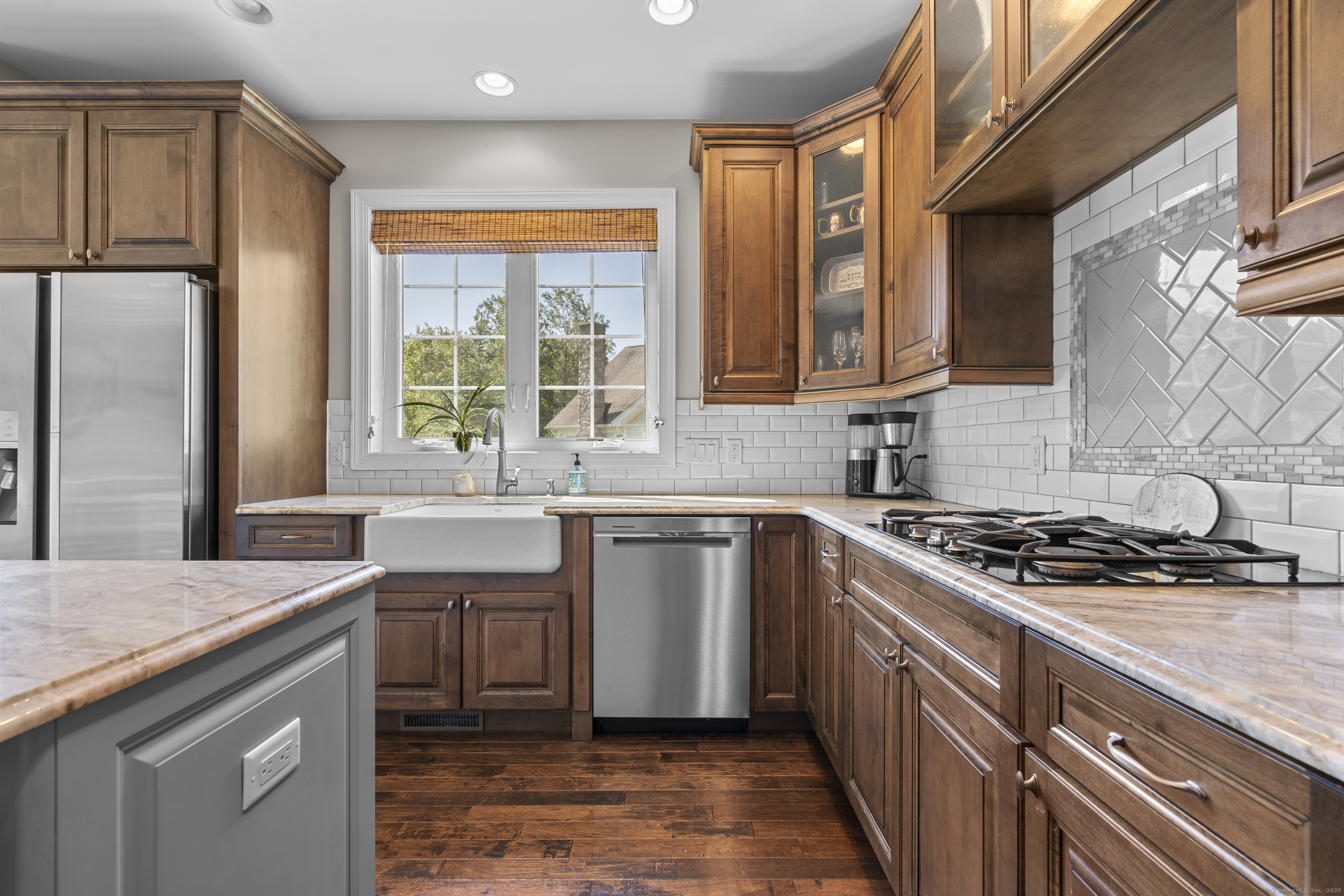 Welcome to this luxury home w/ custom features never seen before! This 4000+ sqft, 3 BEDROOM SUITES, 3.2 bath has elegance and comfort, built w/ never seen upgrades. On the most sought-after private cul-de-sac St. and the best location in the complex. Enter through a grand two-story foyer with gleaming hardwood floors, cathedral ceilings & soaring windows that fill the home with natural light. Beautiful curves staircase, formal living & dining rooms set the stage for entertaining. The gourmet kitchen boasts granite counters, beautiful cabinets, stainless steel appliances, gas cooktop, tile backsplash, large island for ample prep space, a chefs dream. The family room has vaulted ceilings & gas fireplace creates the ultimate gathering space. Rare floor plan features three bedroom suites: a main-level primary with tray ceiling, dual walk-in closets, spa-like ensuite with soaking tub & shower, plus two additional suites upstairs that each have THEIR OWN BATHROOM. Oversized loft overlooks the main floor. Finished walkout basement adds a rec/play room with a custom wet bar w/ granite counters & white cabinets, media area or office, half bath (potential for lower in law/ 4th bedroom). Highlights: laundry w/ sink, additional gas hookup in basement for fireplace, finished lower patio, upper deck & full wheelchair accessibility. Largest backyard in community, great for entertaining or playing sports. Clubhouse w/ bar, pool, gym, tennis crt, indoor basketball court! This is a MUST see!