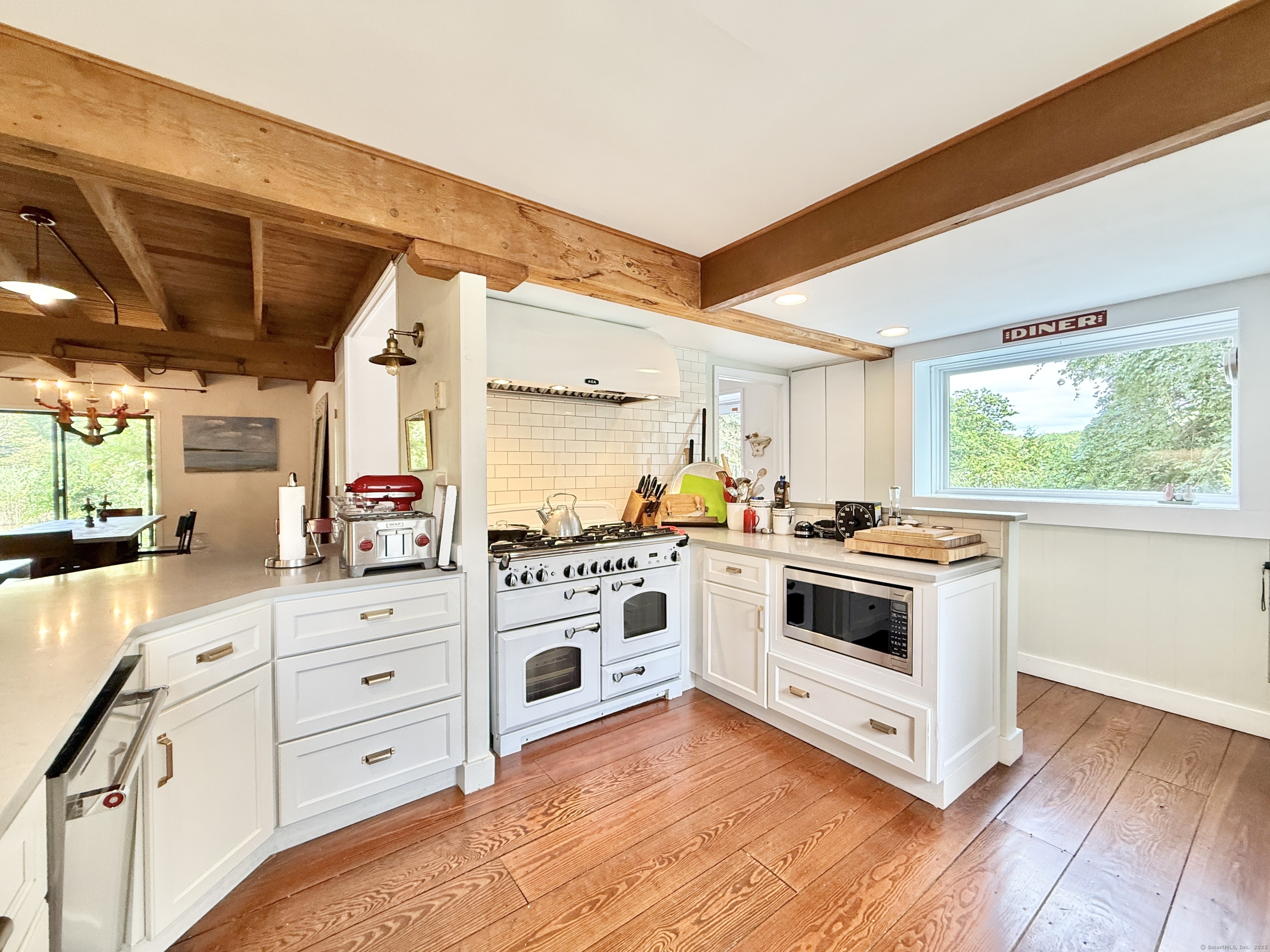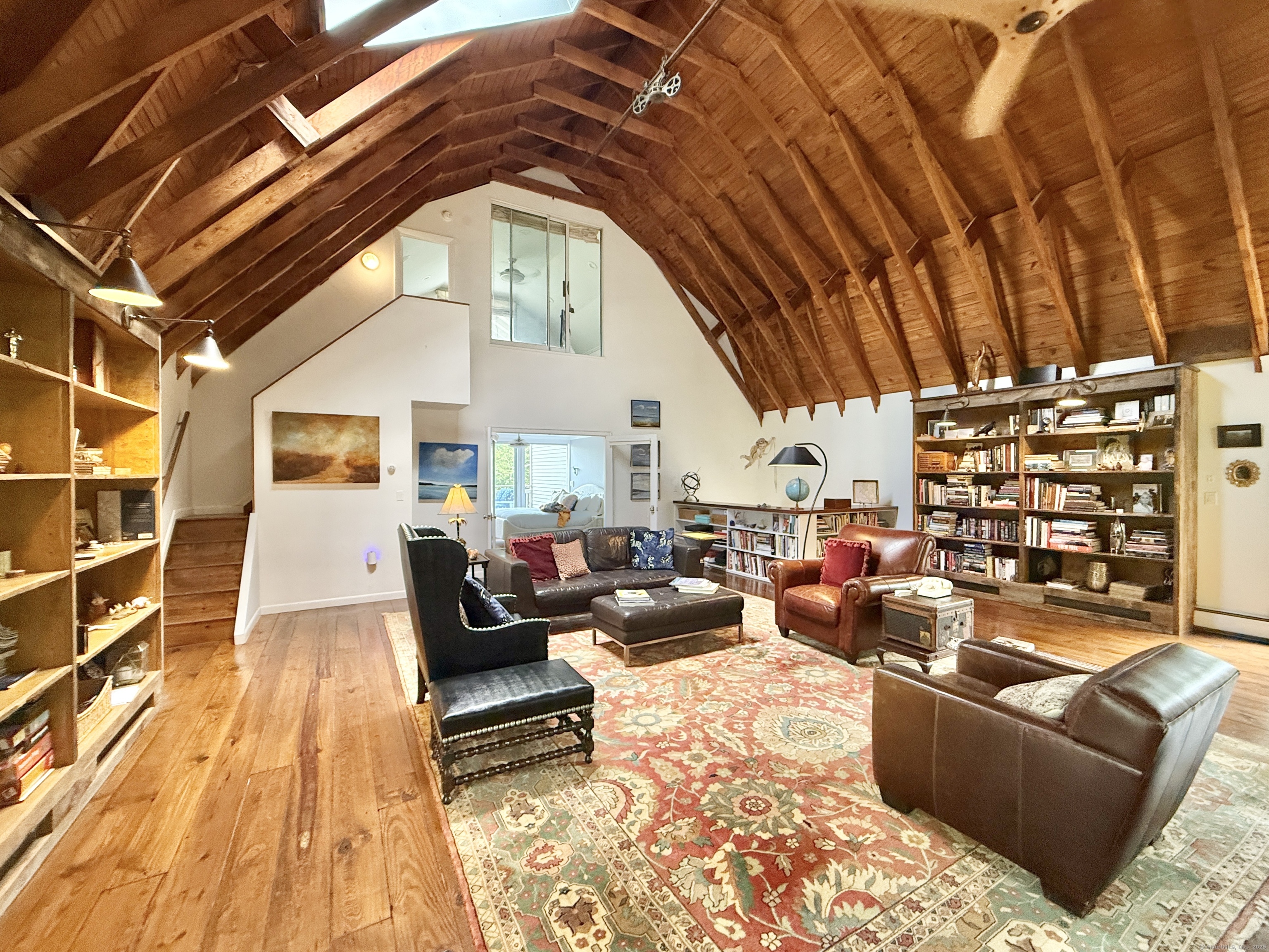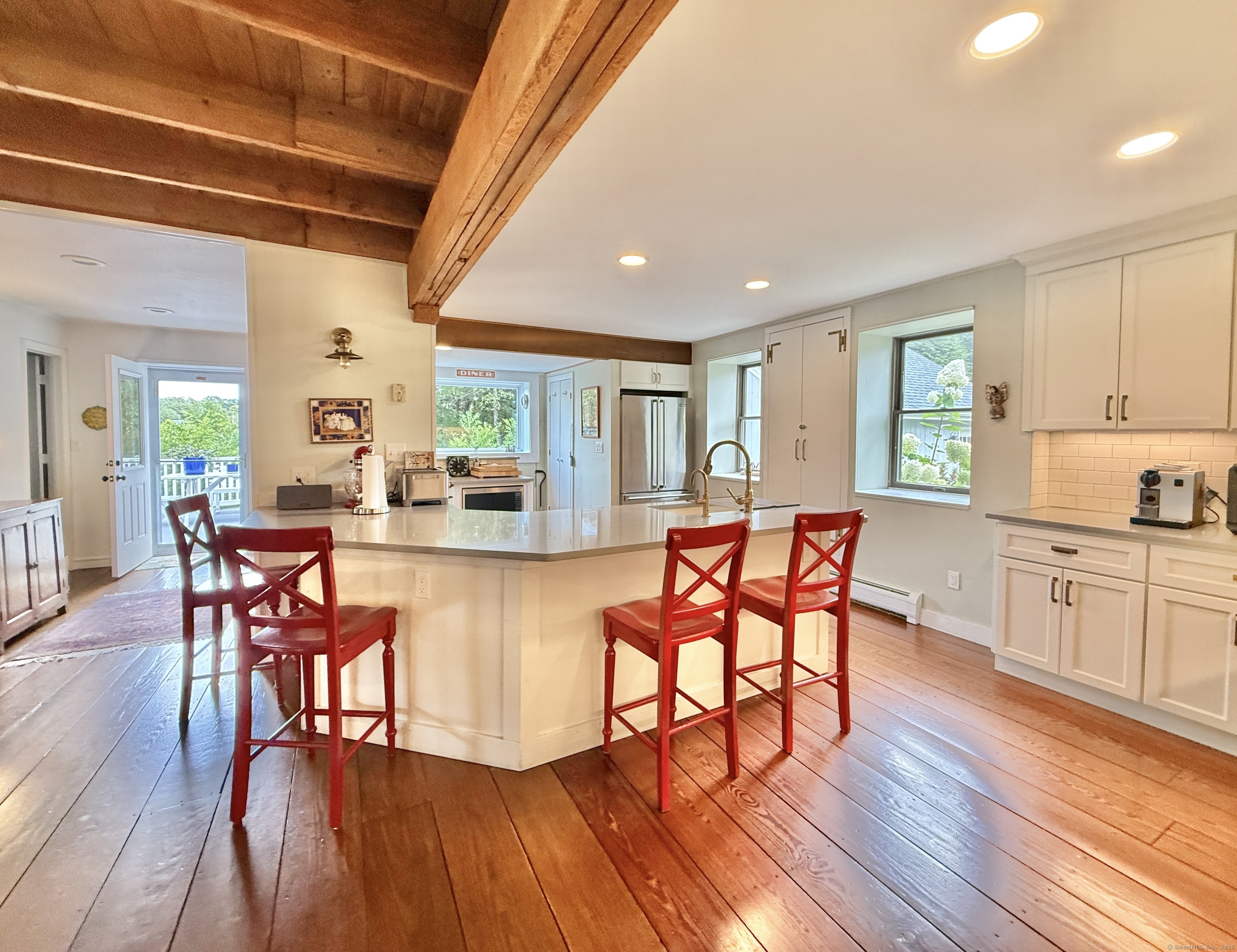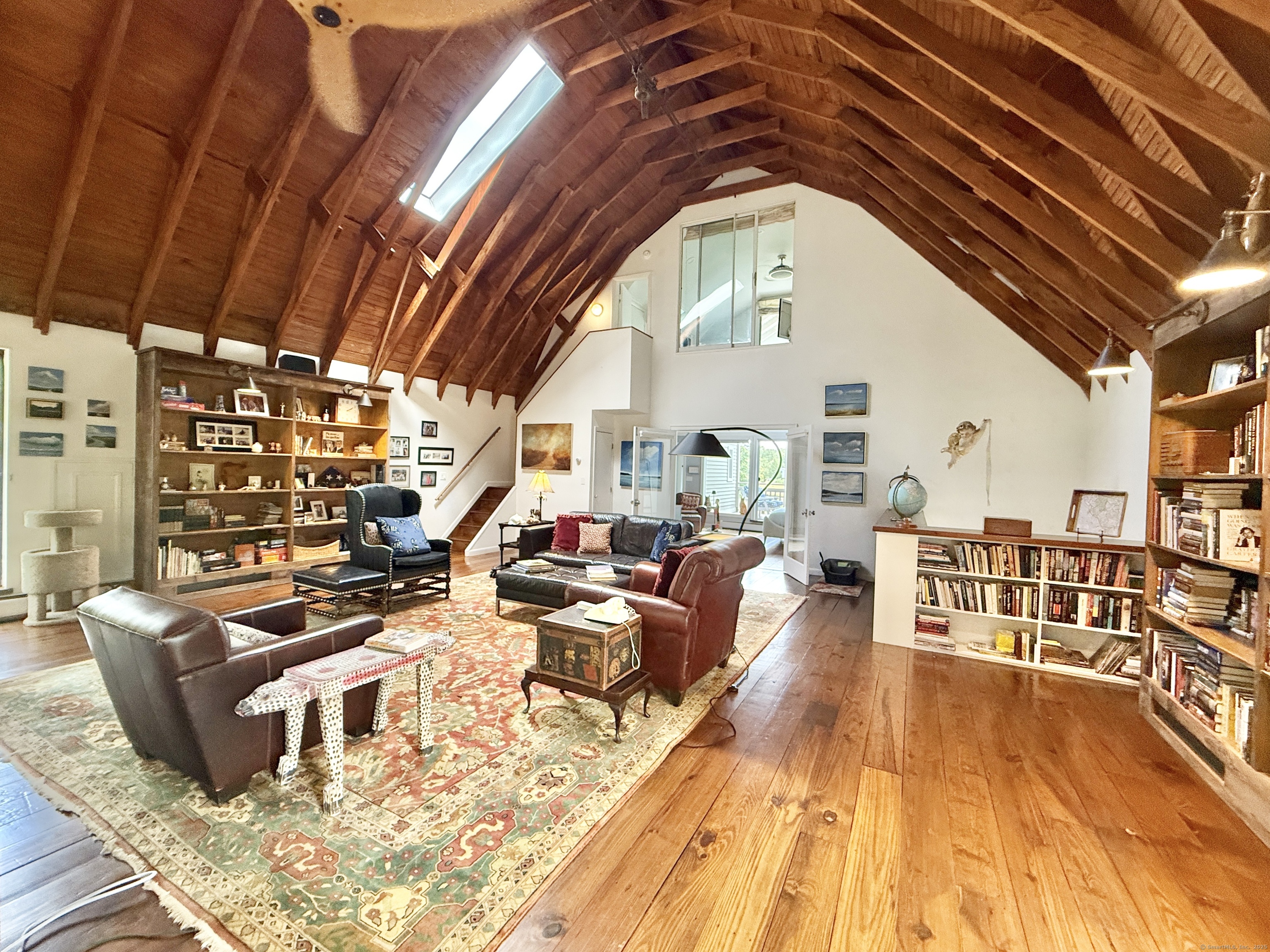 Rich architectural details, modern amenities and water views create a captivating atmosphere in this 1910 renovated barn. Wide plank hardwood floors, historic beams, expansive rooms, built-in bookcases and meticulously designed bathrooms add to the magic. There are four bedrooms, one of which has been converted into an art studio, and 2 1/2 bathrooms. The stately circular driveway creates a grand entry which is set back on the 1.2 acre property. Roses. hydrangeas, butterfly bushes, a gingko and pear tree are just some of the treats that are constantly blooming. Egrets and herons often visit the backyard tidal marsh. Enjoy serene views of the Black Hall River from many rooms and the upstairs balcony. Less than two miles from White Sands Beach, this magnificent home has a full house generator and a two car detached garage. This historic home is the perfect combination of sophistication and comfort.