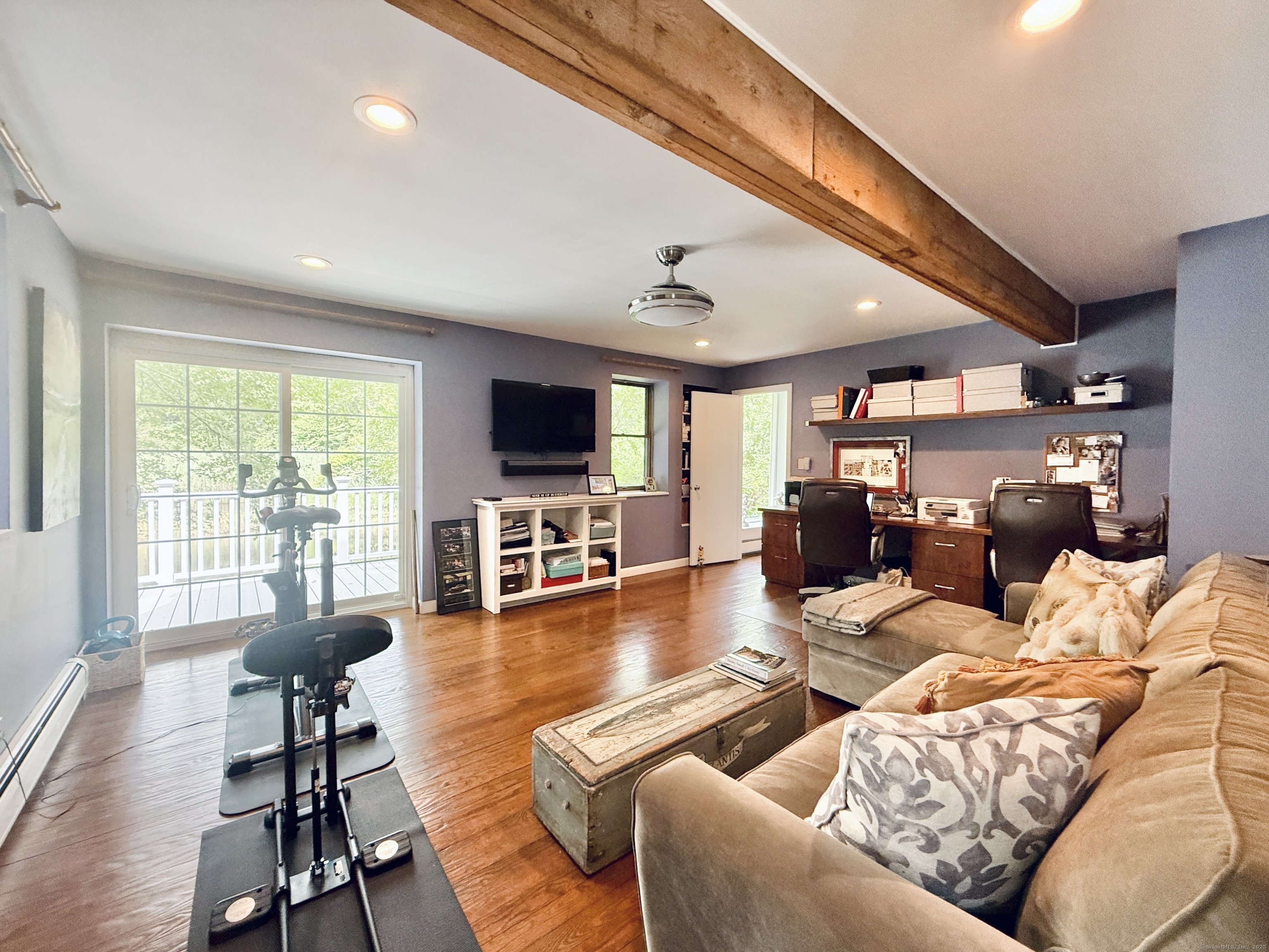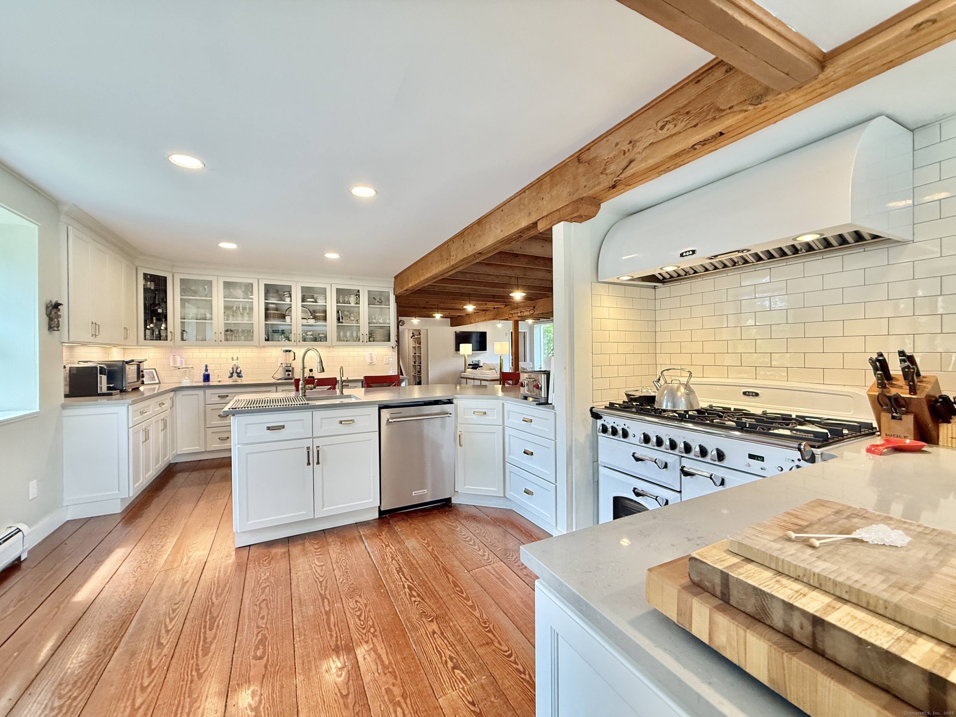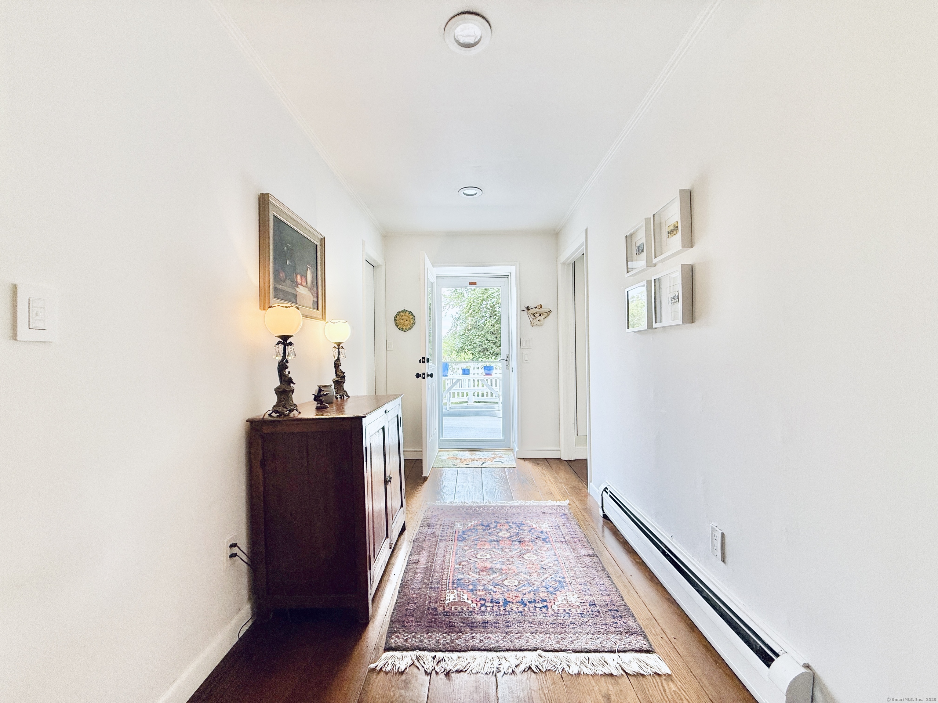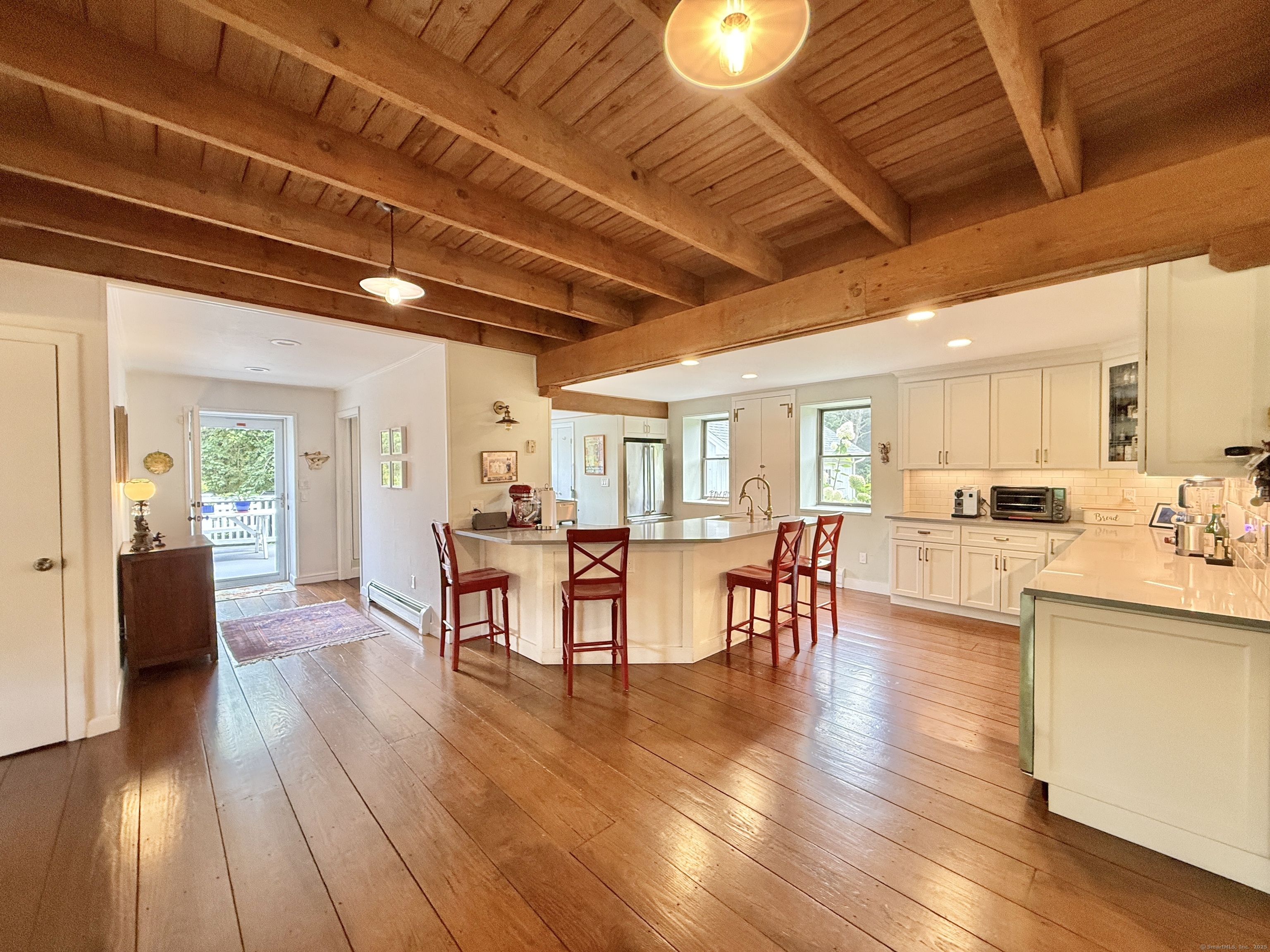 Rich architectural details, modern amenities and water views create a captivating atmosphere in this 1910 renovated barn. Wide plank hardwood floors, historic beams, expansive rooms, built-in bookcases and meticulously designed bathrooms add to the magic. There are four bedrooms, one of which has been converted into an art studio, and 2 1/2 bathrooms. The stately circular driveway creates a grand entry which is set back on the 1.2 acre property. Roses. hydrangeas, butterfly bushes, a gingko and pear tree are just some of the treats that are constantly blooming. Egrets and herons often visit the backyard tidal marsh. Enjoy serene views of the Black Hall River from many rooms and the upstairs balcony. Less than two miles from White Sands Beach, this magnificent home has a full house generator and a two car detached garage. This historic home is the perfect combination of sophistication and comfort.