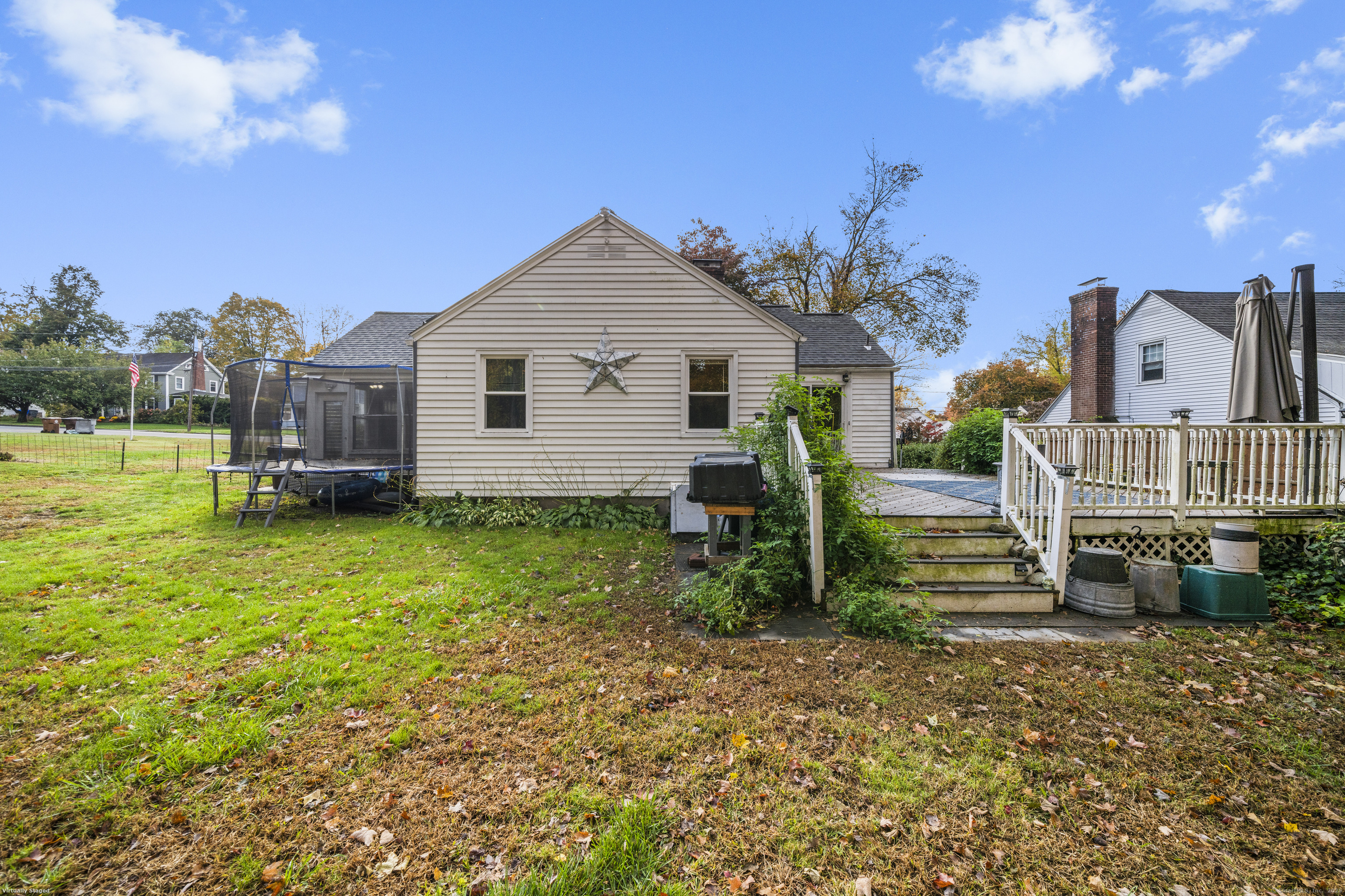 Home built in yesteryear 1948 circa, living room/ dining room combo with fireplace, remodeled kichen walk out to 19 x 25 deck, One primary bedroom with two closets traditional wood working and two smaller bedrooms and a 8 x 10 enclosed back porch Newer Roof, Boiler, Windows and solar panel system. Mature landscape, lower level has finished area. Frew Terrace is a one way street. The area is surrounded by Historic Enfield Street, 91 N/S, and much shopping Buyers to do all due diligence. The lot dimension per TOE gis 100' front x 114' right side yard