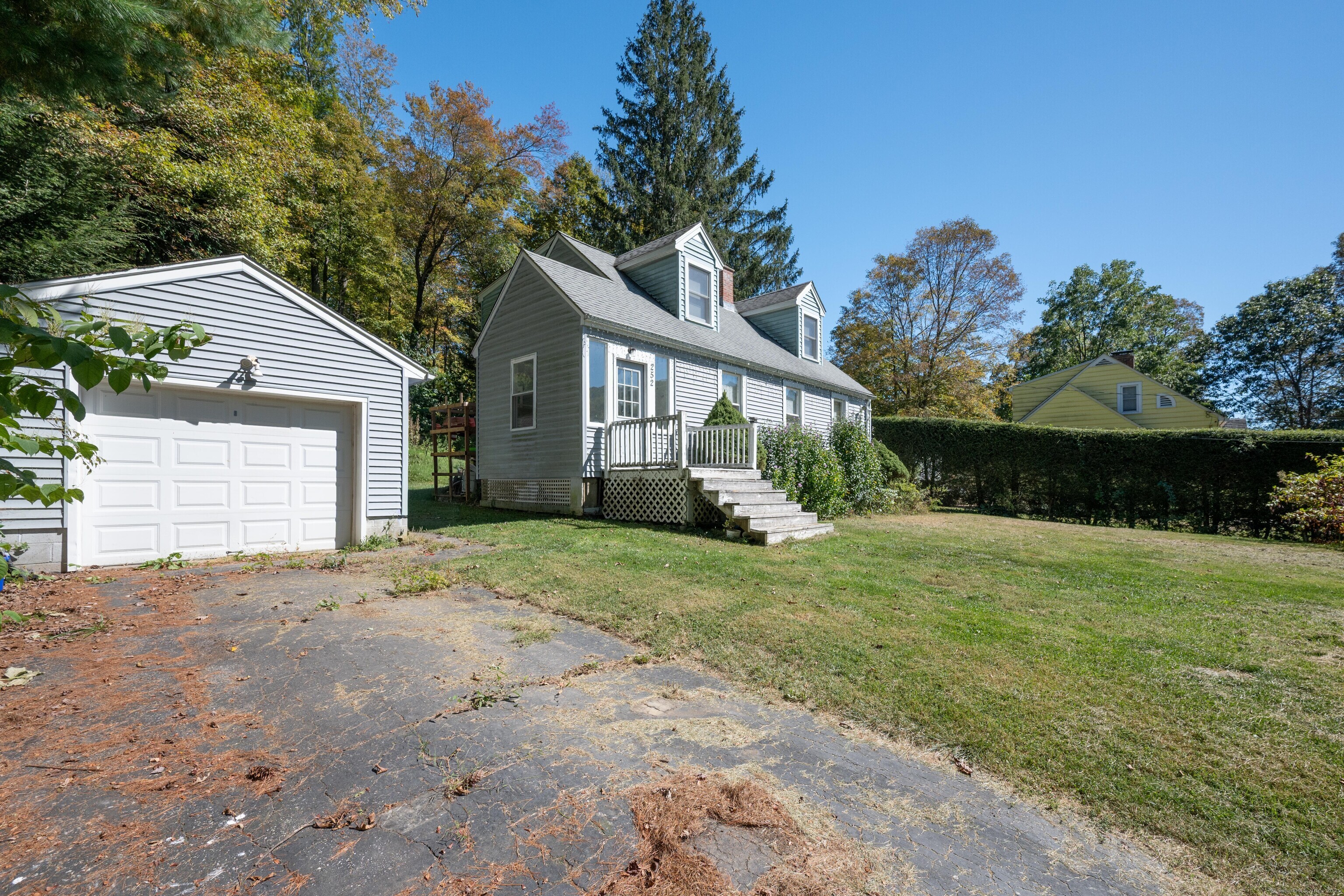 Welcome to this charming Cape Cod-style home, conveniently located just minutes' drive off Route 8. This property features three spacious bedrooms and two full bathrooms, situated on a peaceful dead-end street in a quiet neighborhood just minutes from the heart of town. The house is designed for comfort and functionality, with ample storage, generous closets, and built-in features that make organization easy. You'll also find a full basement accessible via a hatch door, which can be used as a home gym or for hobbies, along with a den that offers endless possibilities. Additionally, the home includes a full-sized, detached covered garage with extra storage space. Please note that a new boiler was installed in 2024, a 750-gallon concrete septic, previous owner upgraded with a filter, serviced every 1 to 2 years. This property is being sold "as-is".