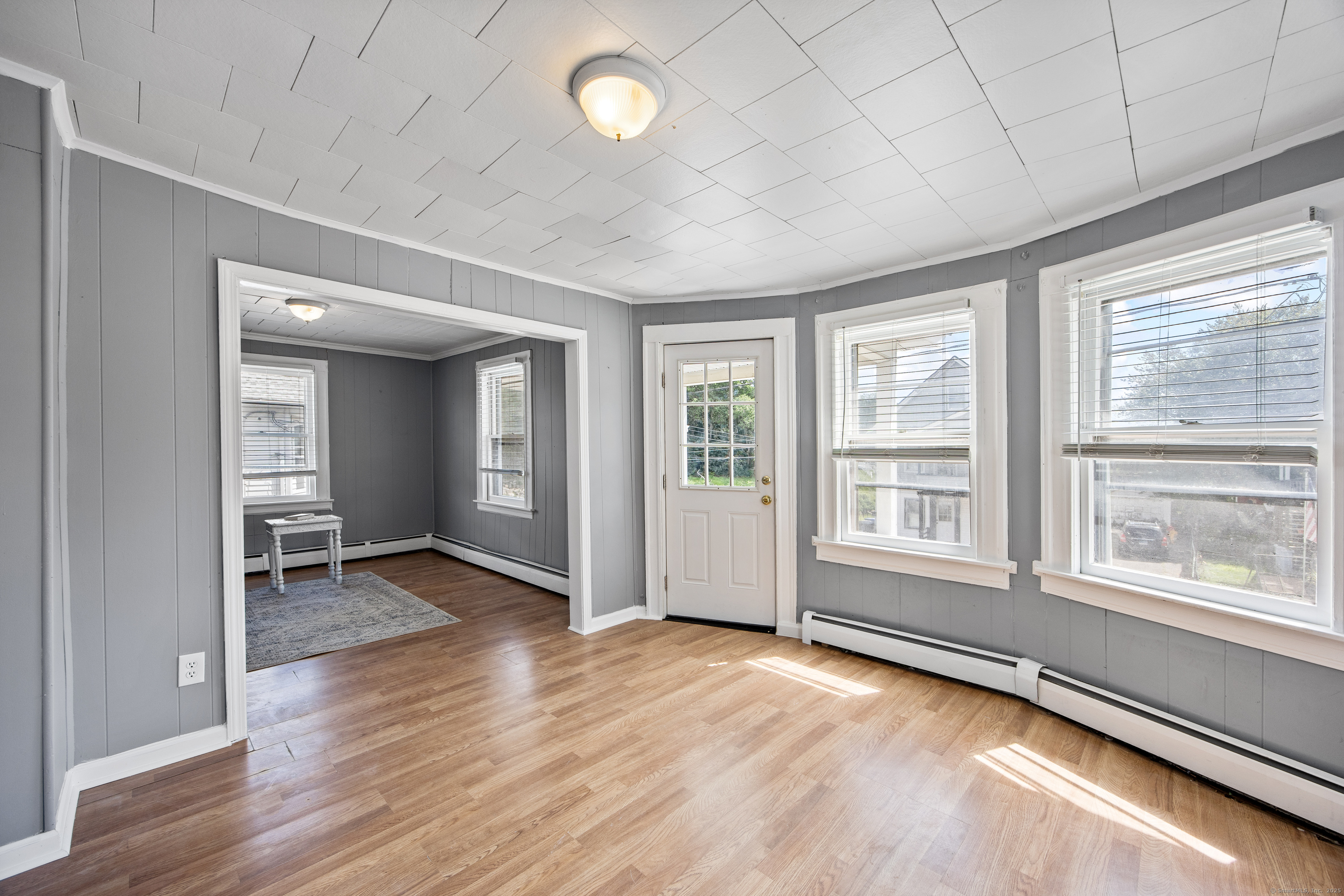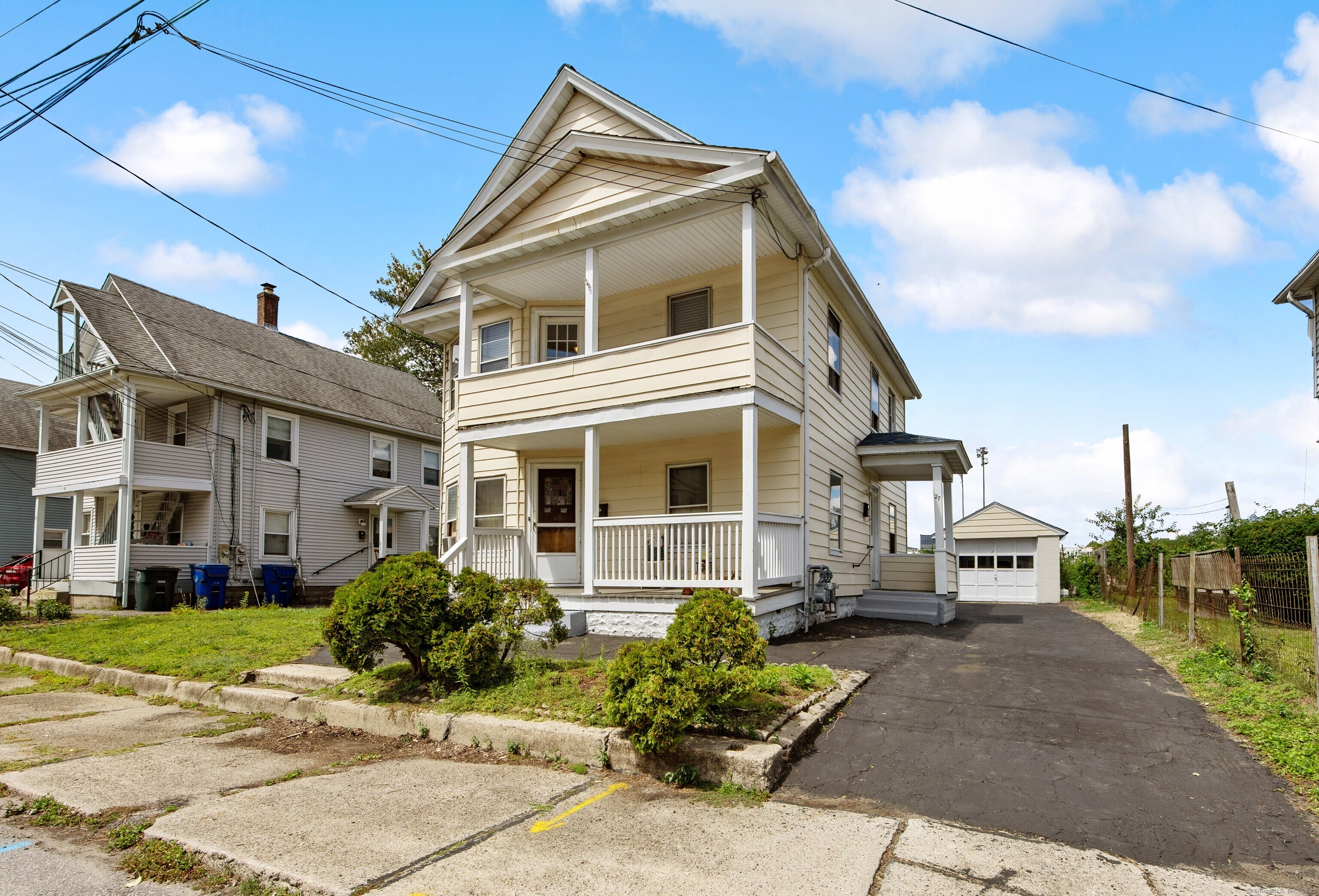 Move right in to this centrally located 2 family on a quiet side street, perfect for an owner occupant! Great location with river views and the property abuts Torrington's baseball field in the rear! The 2nd & 3rd floor townhouse style apartment is move in ready with fresh paint and new carpeting installed. Fully applianced eat in kitchen, tile flooring in the kitchen and full bathroom. Both floors have a sweet front porch, separate utilities and basement laundry hook ups. Long term tenant on the first floor has been living there for 20+ years. Move in and start collecting rent! Level yard with plenty of parking and a detached 1 car garage. Roof replaced approximately 3 years ago.